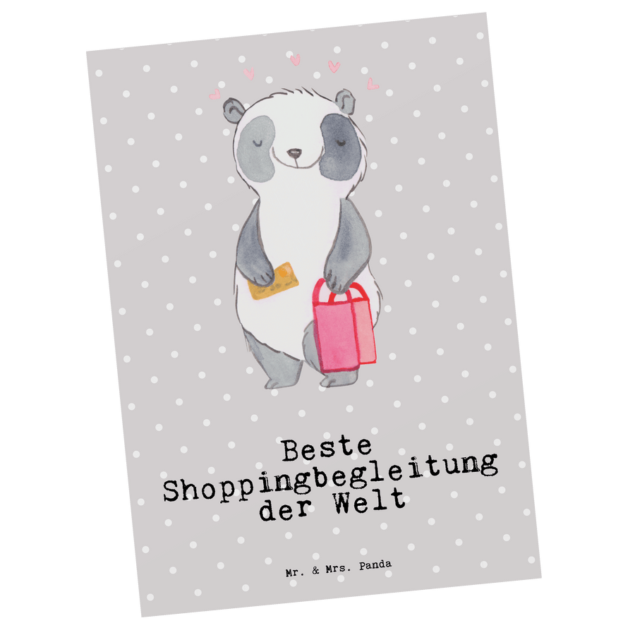 Postkarte Panda Beste Shoppingbegleitung der Welt - Grau Pastell