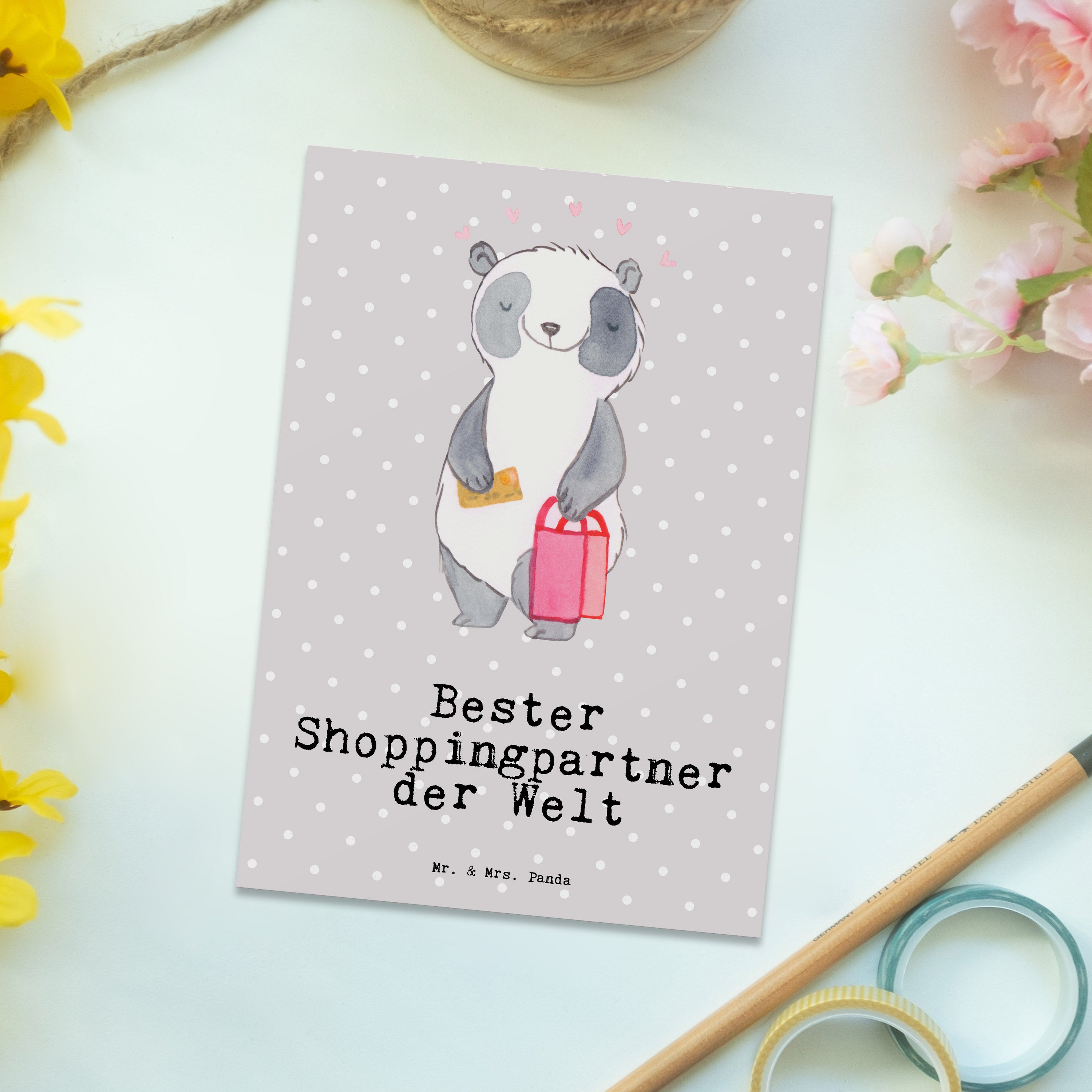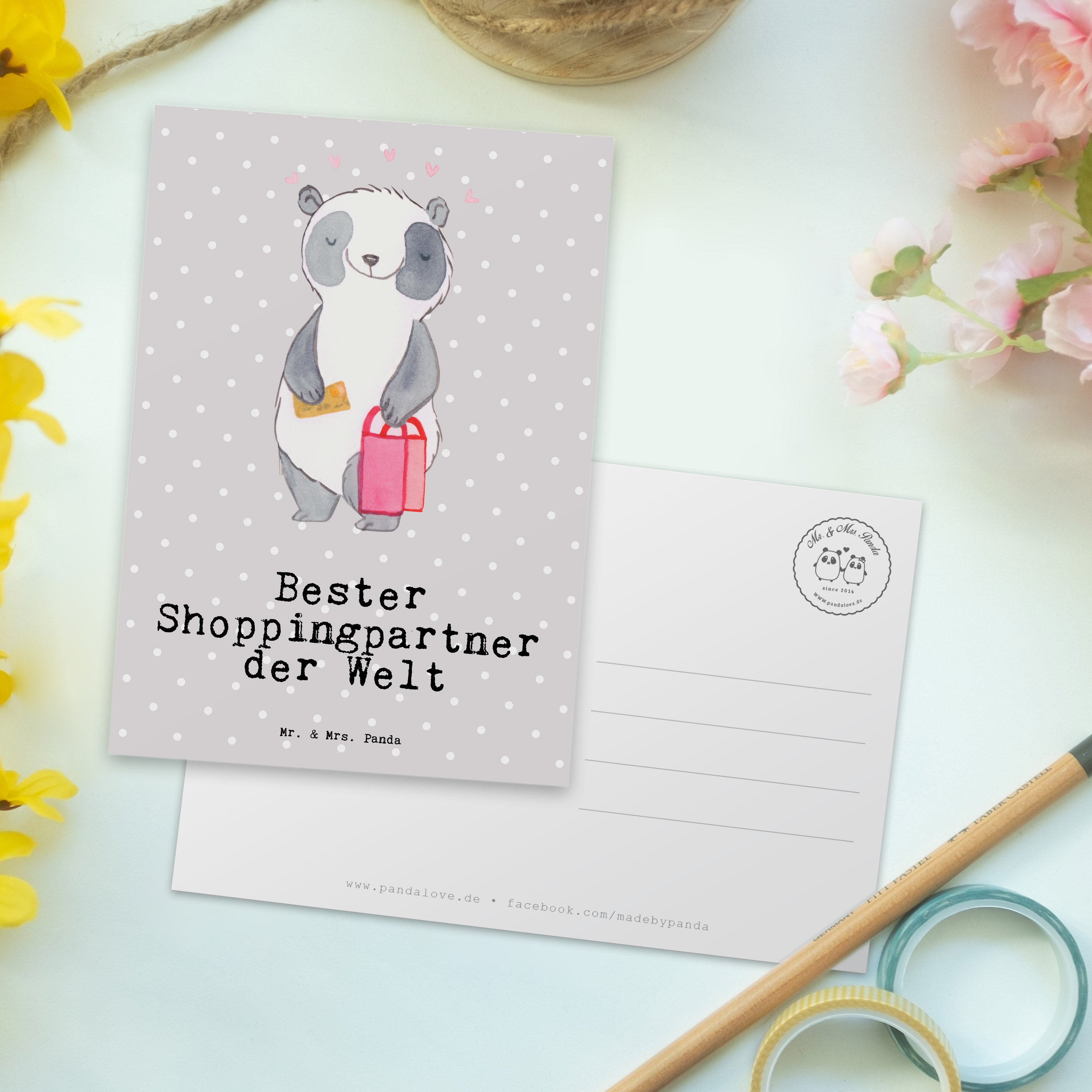 Postkarte Panda Bester Shoppingpartner der Welt - Grau Pastell