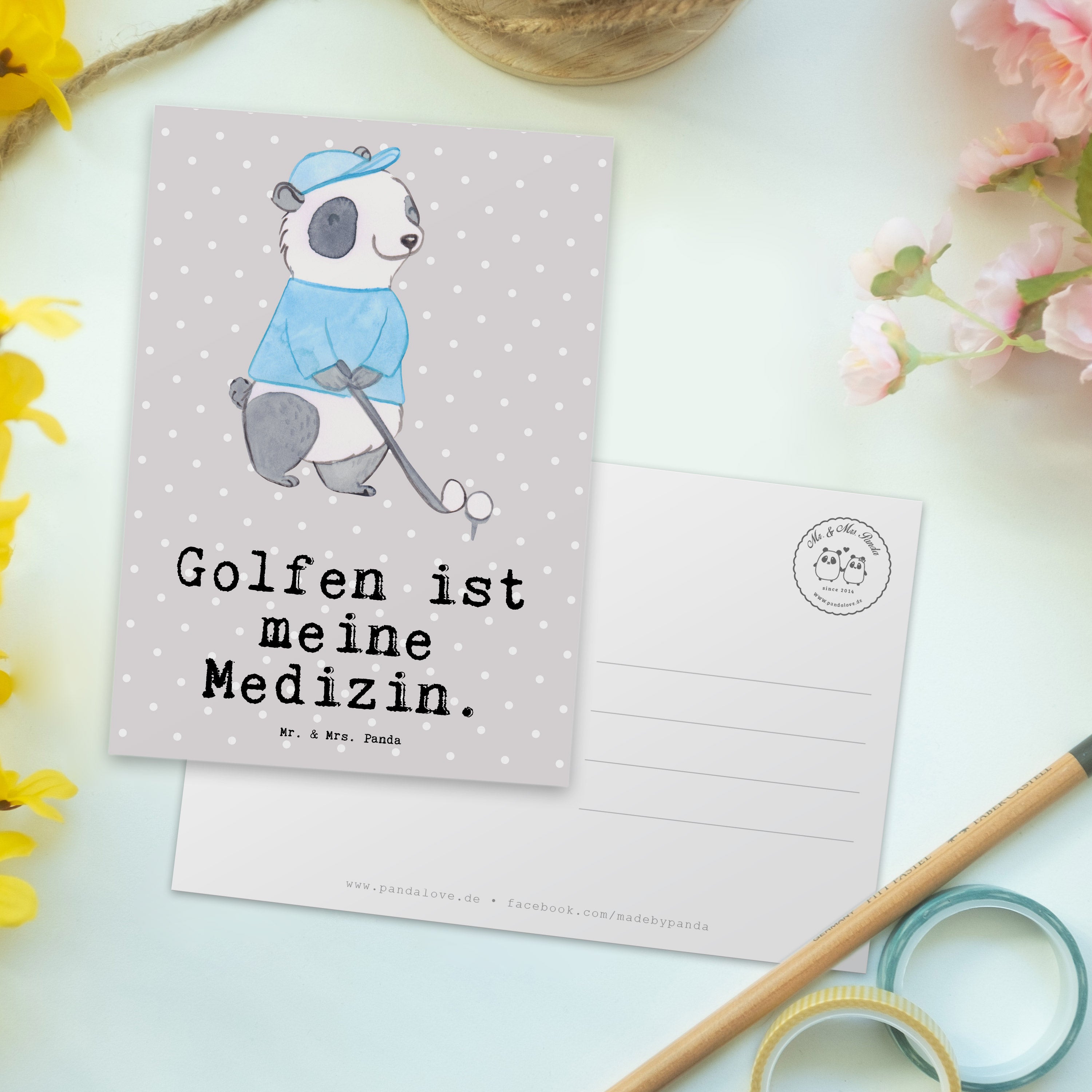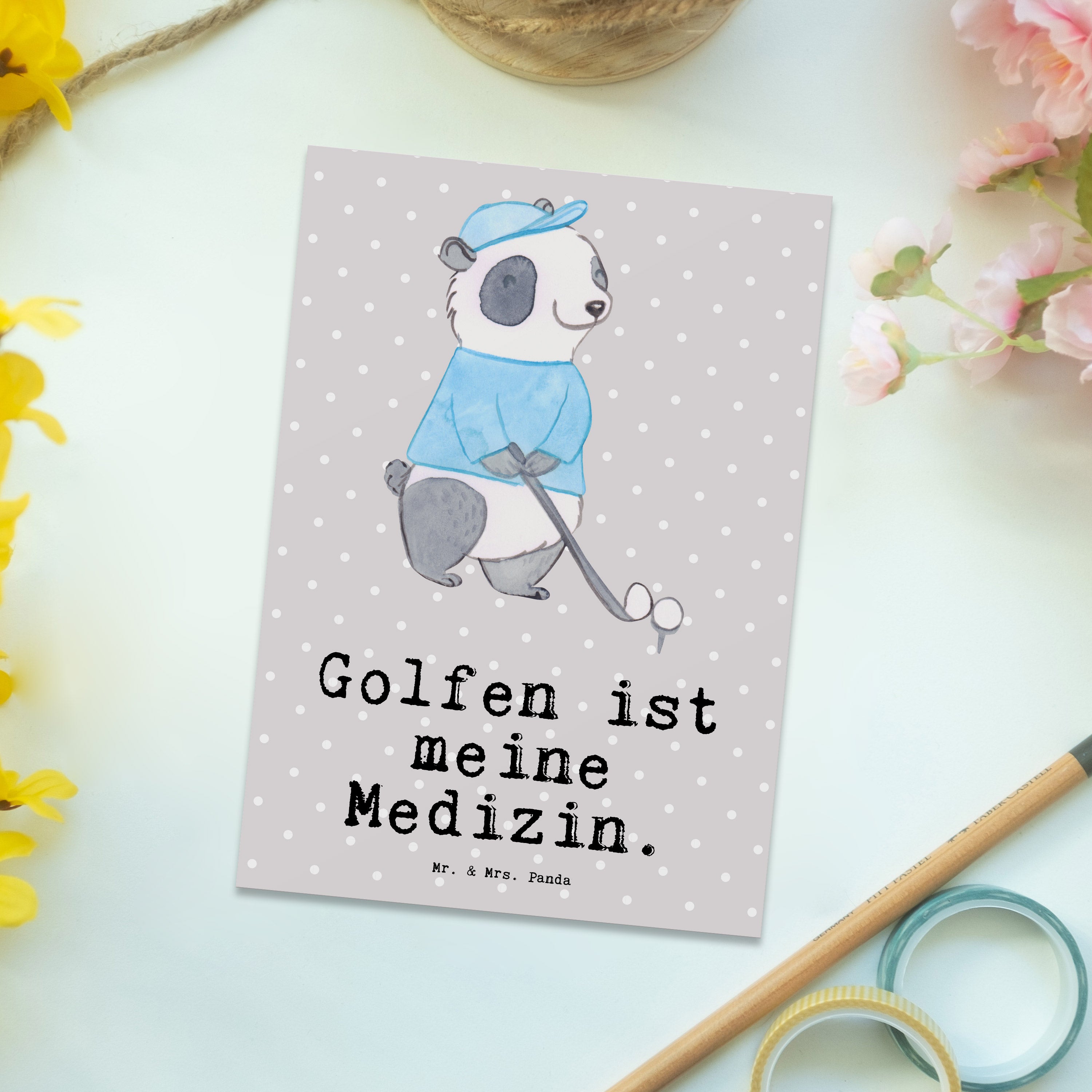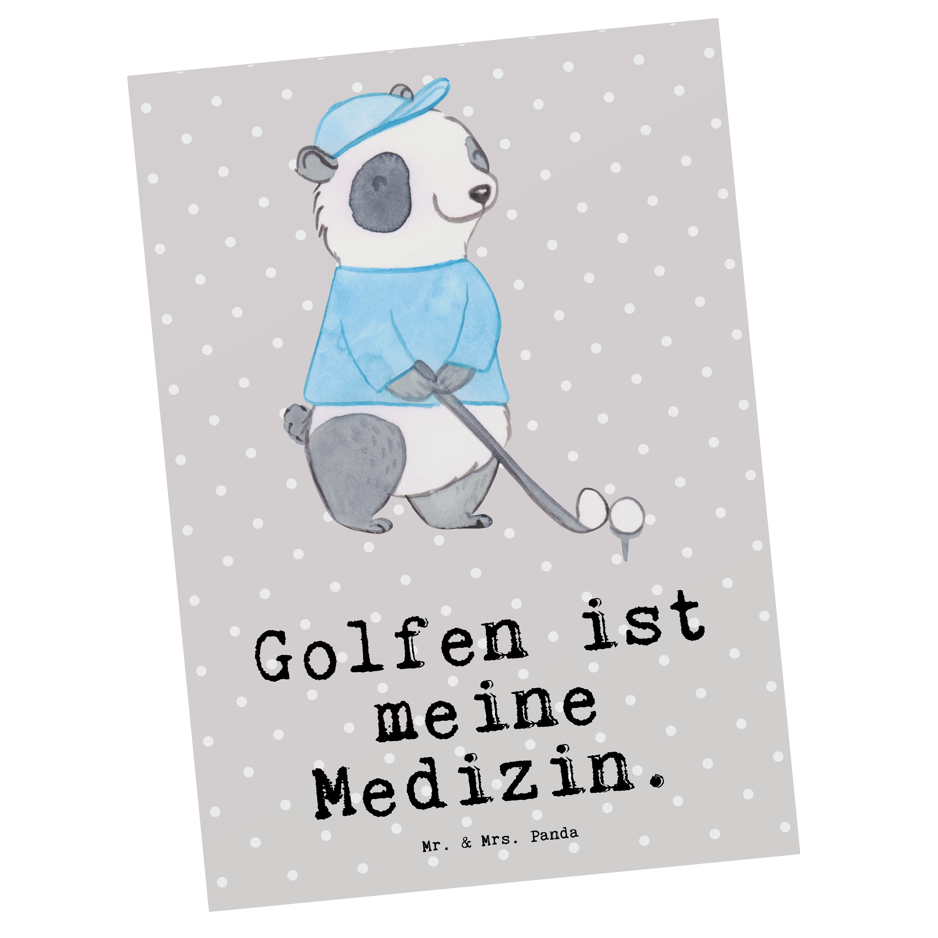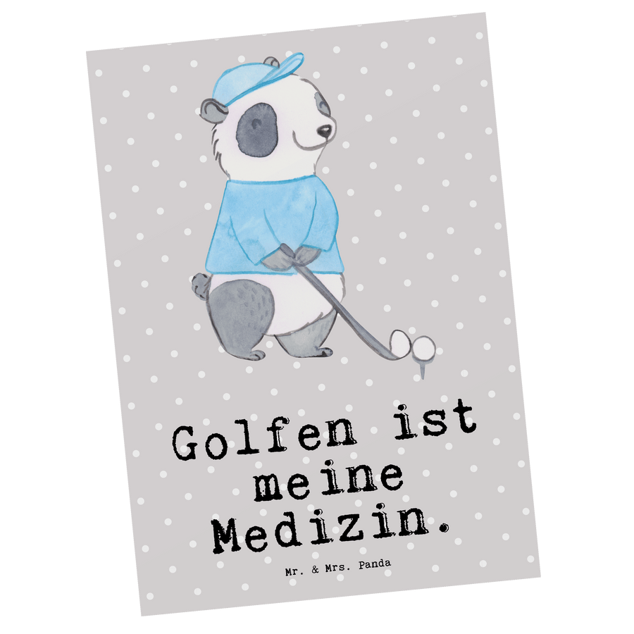 Postkarte Panda Golfen Medizin - Grau Pastell