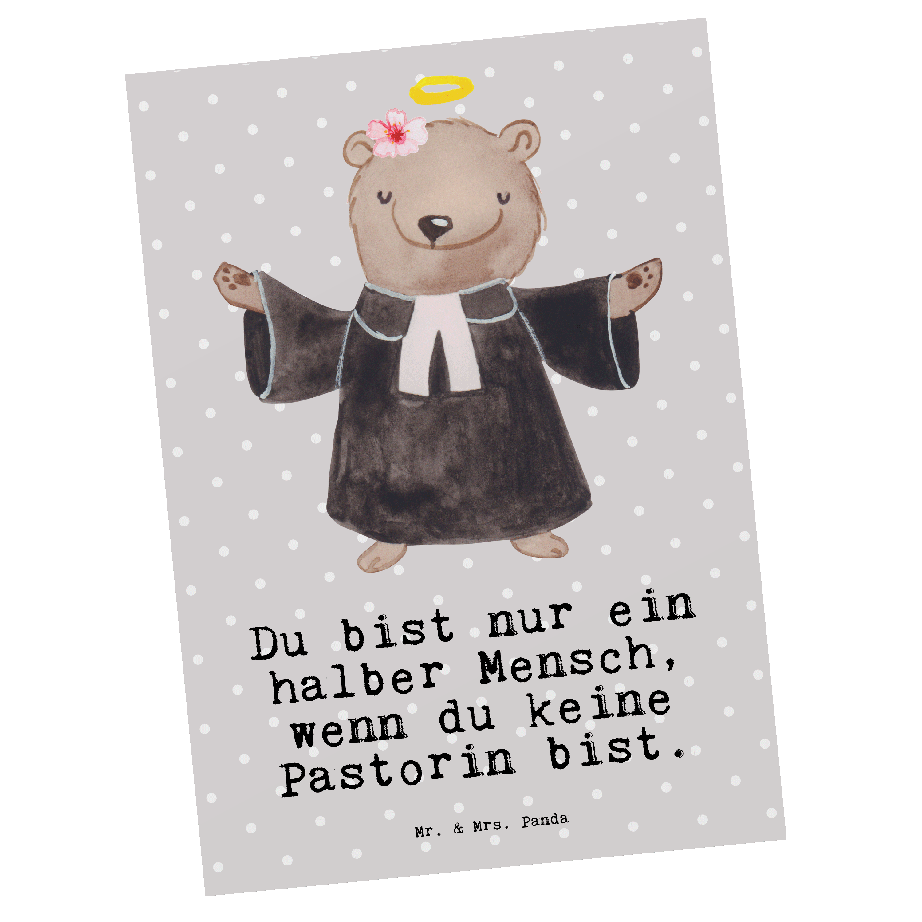 Postkarte Pastorin mit Herz - Grau Pastell