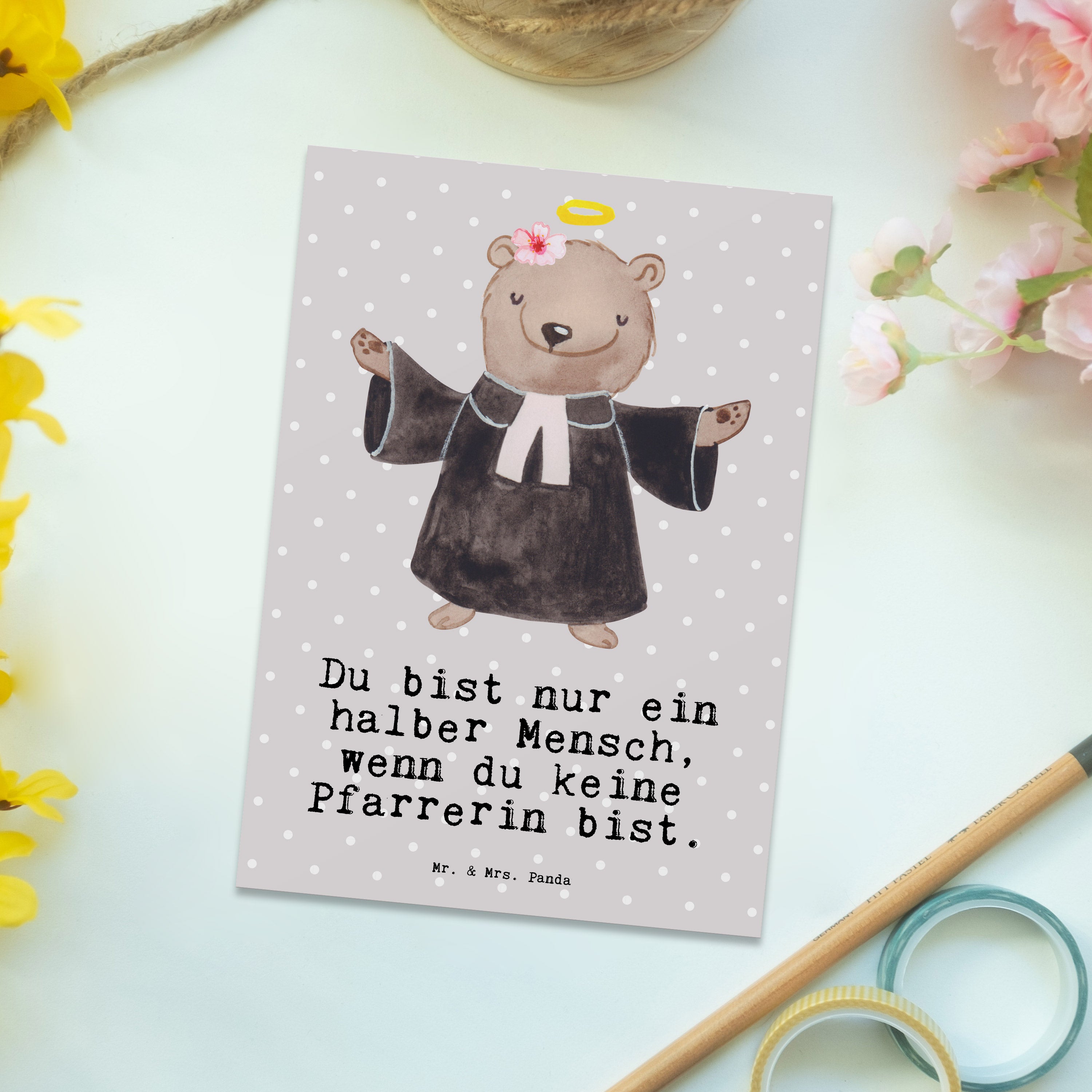 Postkarte Pfarrerin mit Herz - Grau Pastell