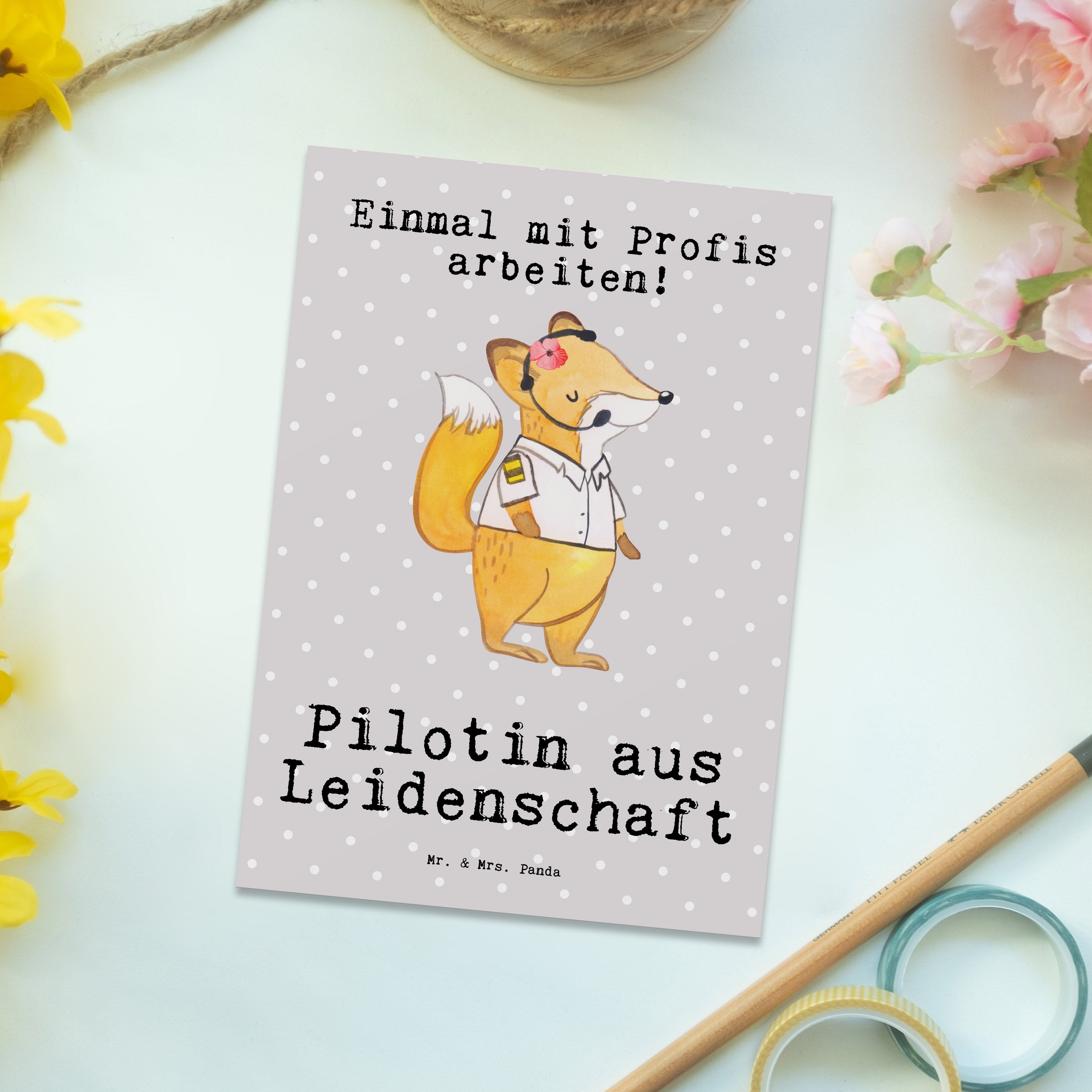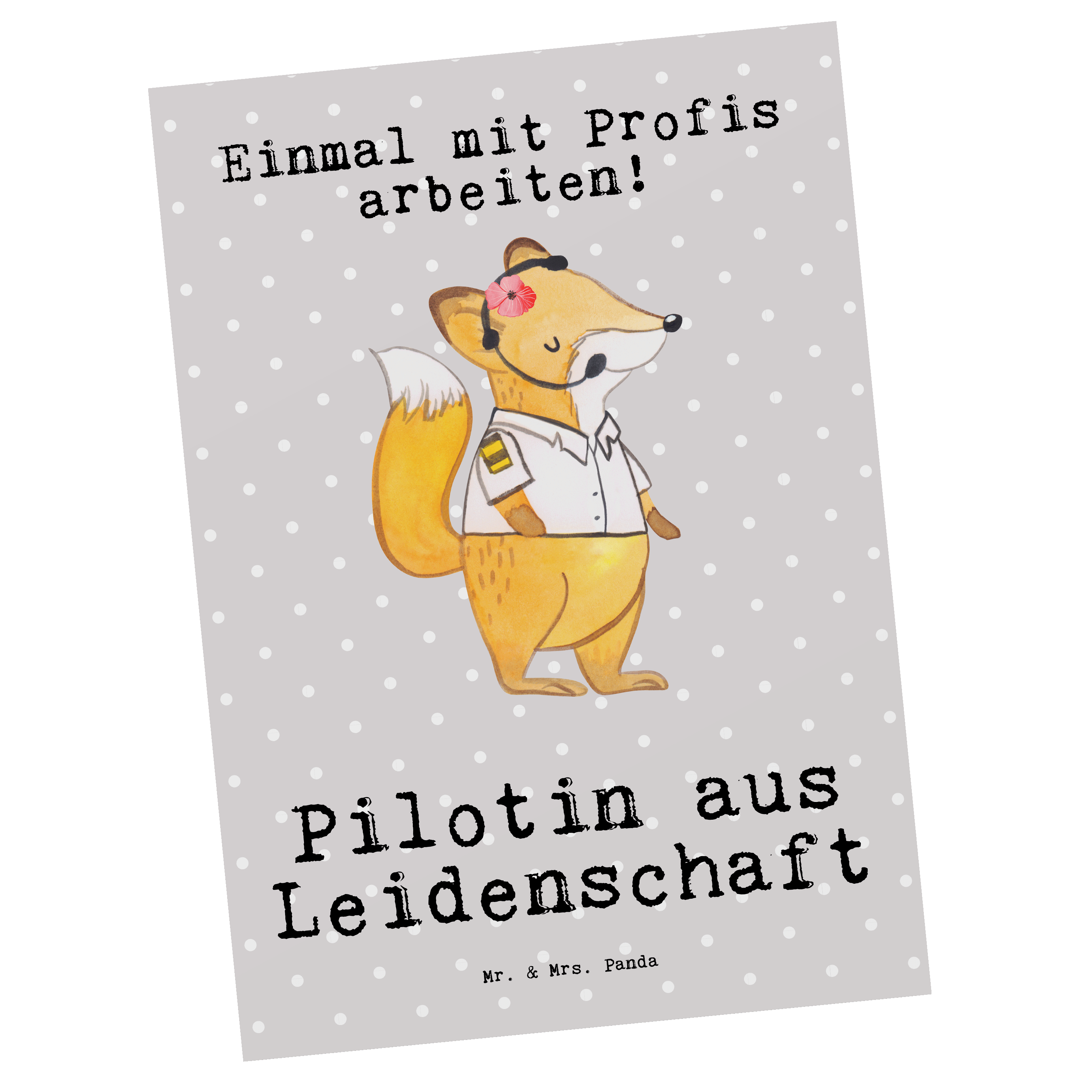 Postkarte Pilotin aus Leidenschaft - Grau Pastell