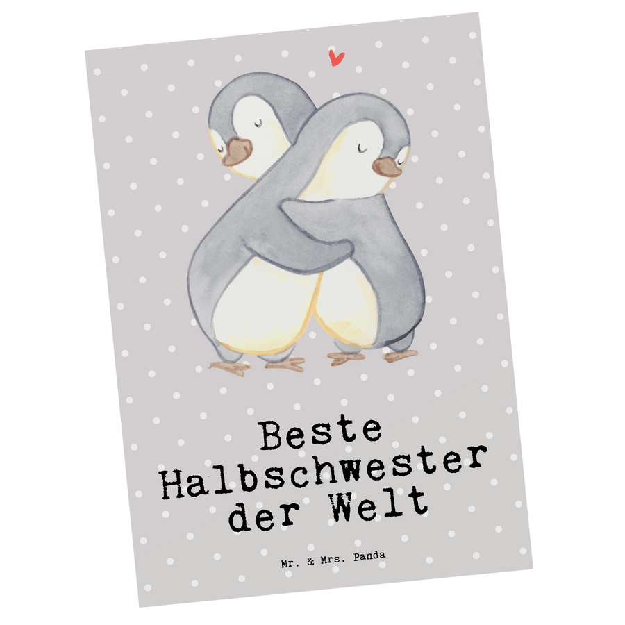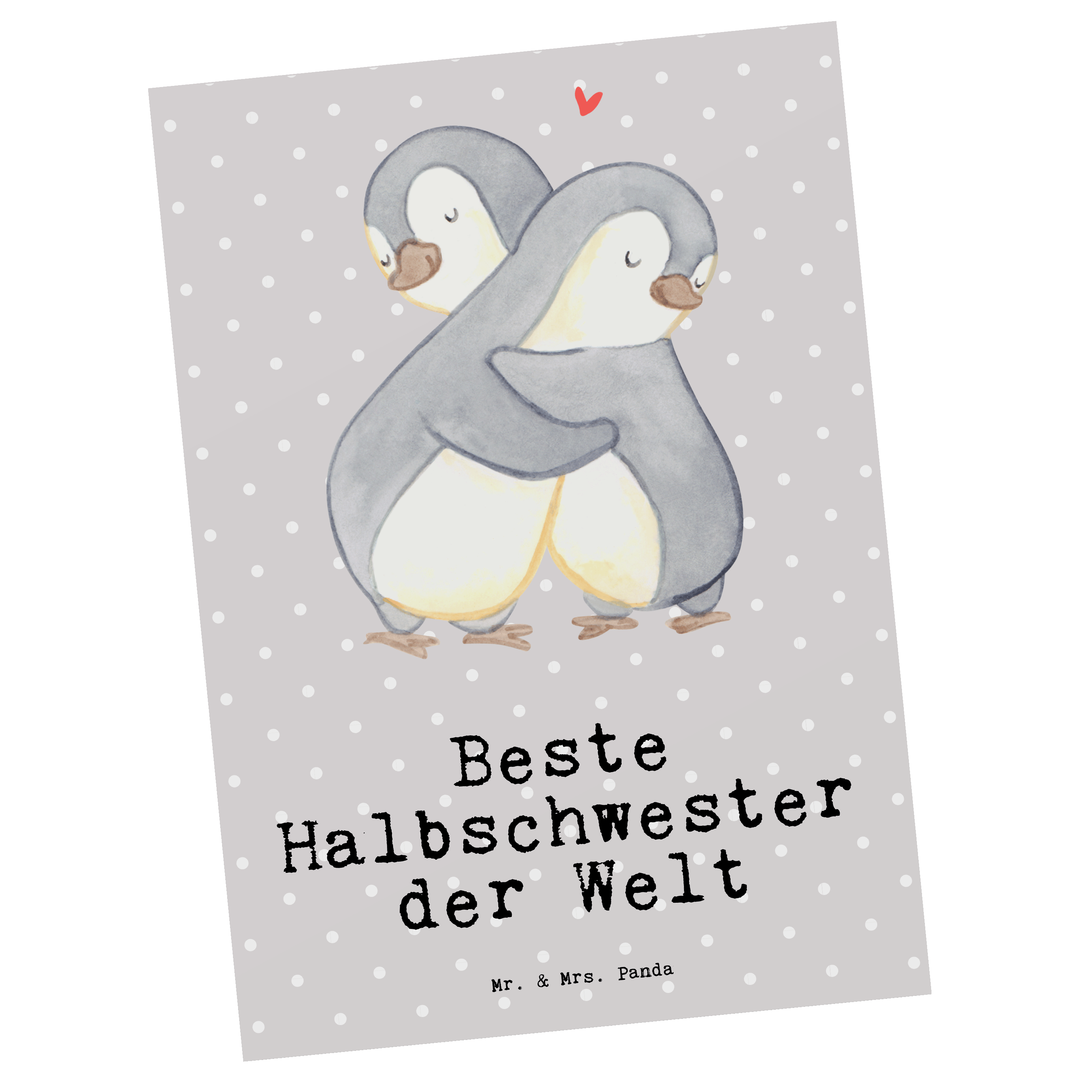 Postkarte Pinguin Beste Halbschwester der Welt - Grau Pastell