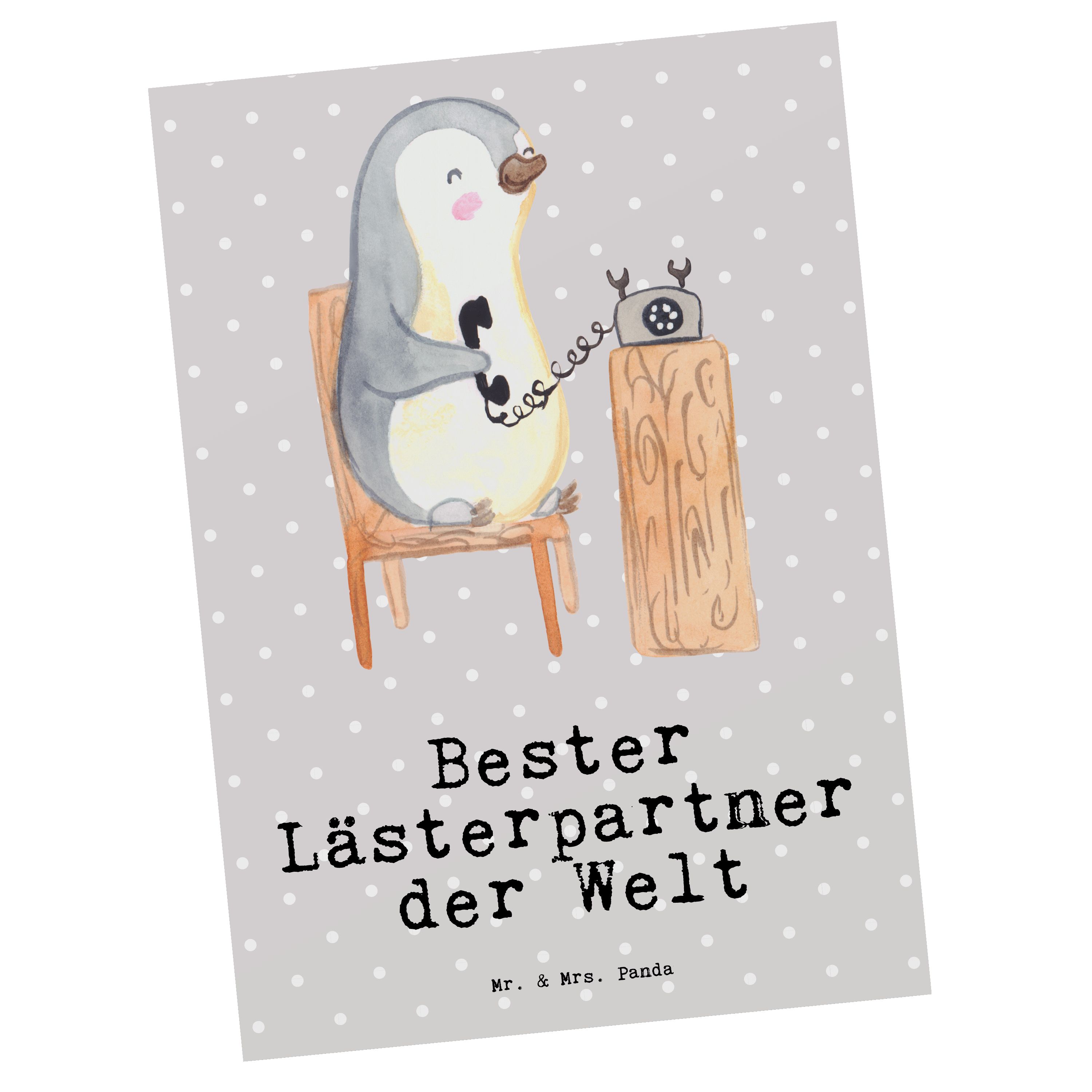 Postkarte Pinguin Bester Lästerpartner der Welt - Grau Pastell