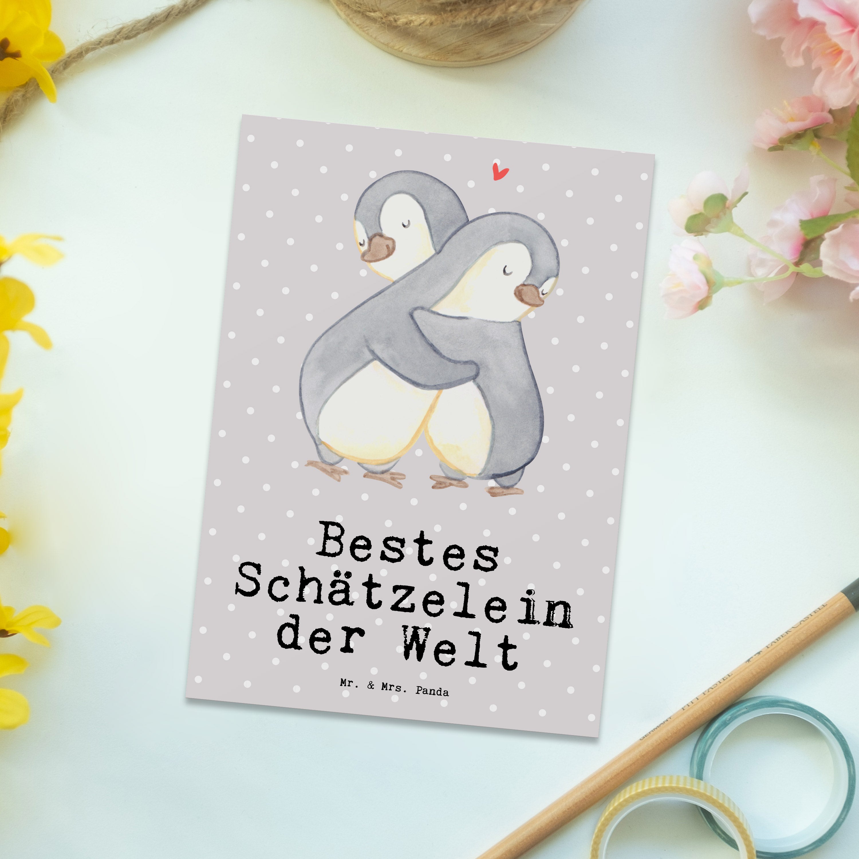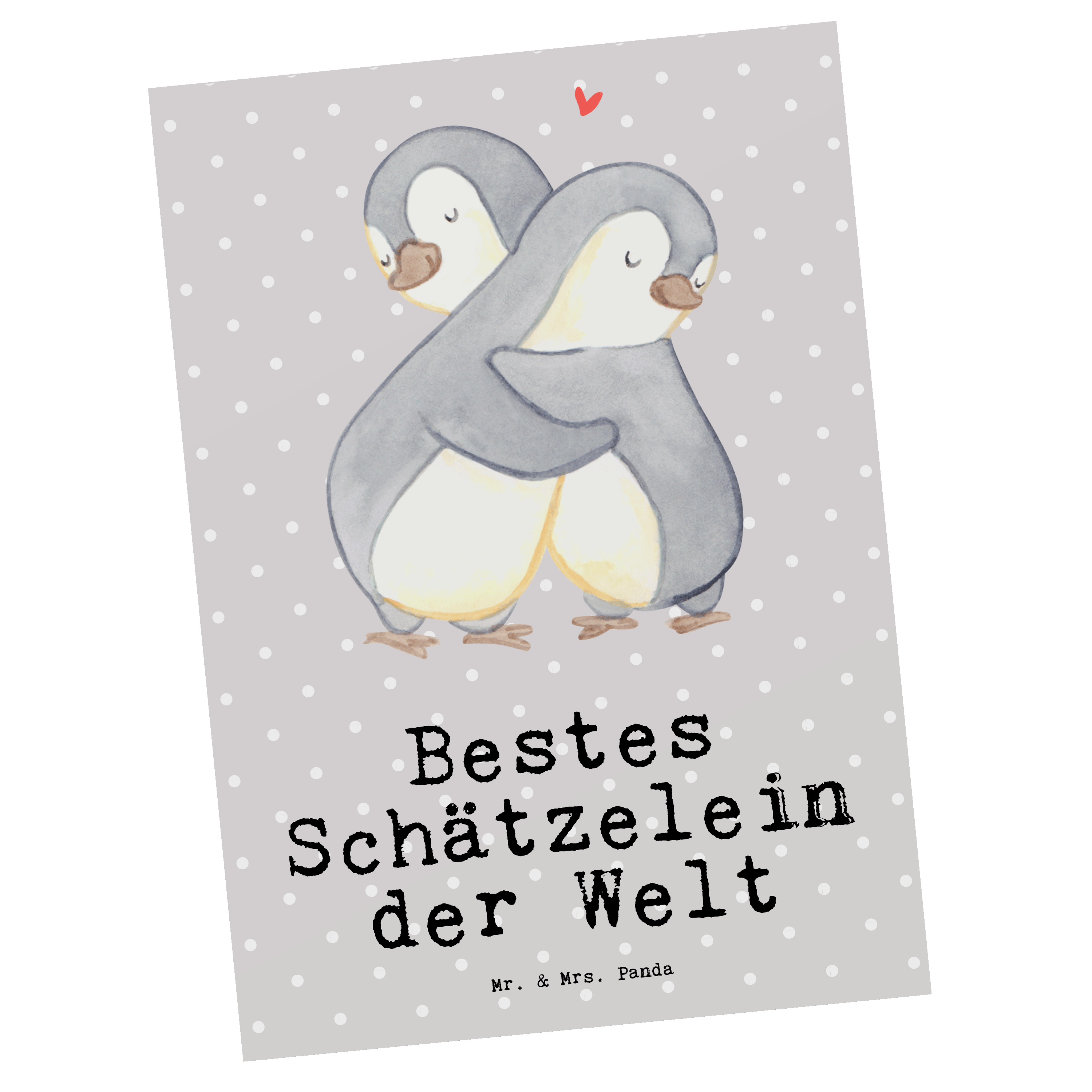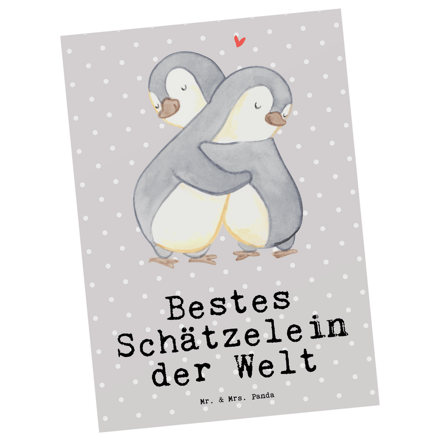 Postkarte Pinguin Bestes Schätzelein der Welt - Grau Pastell