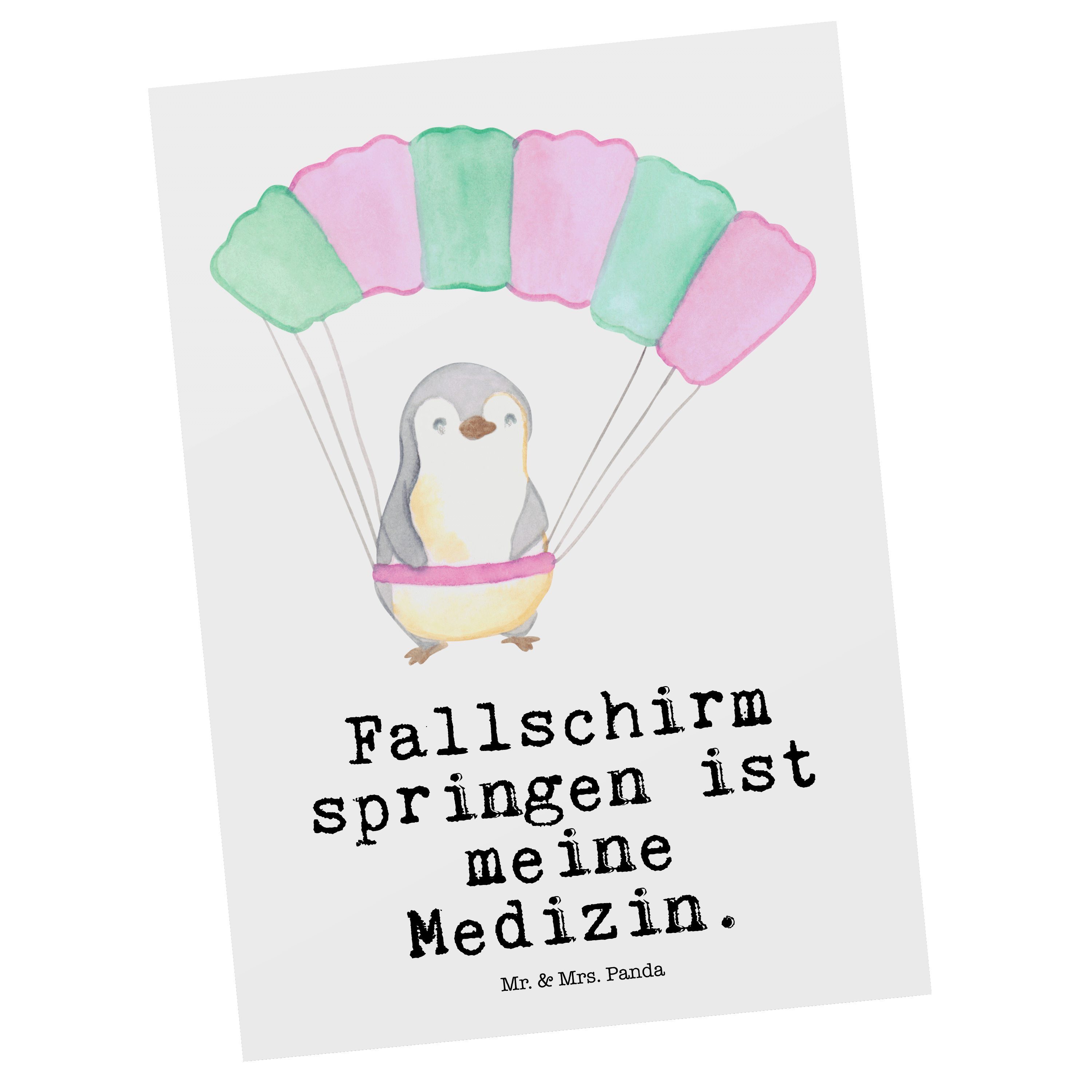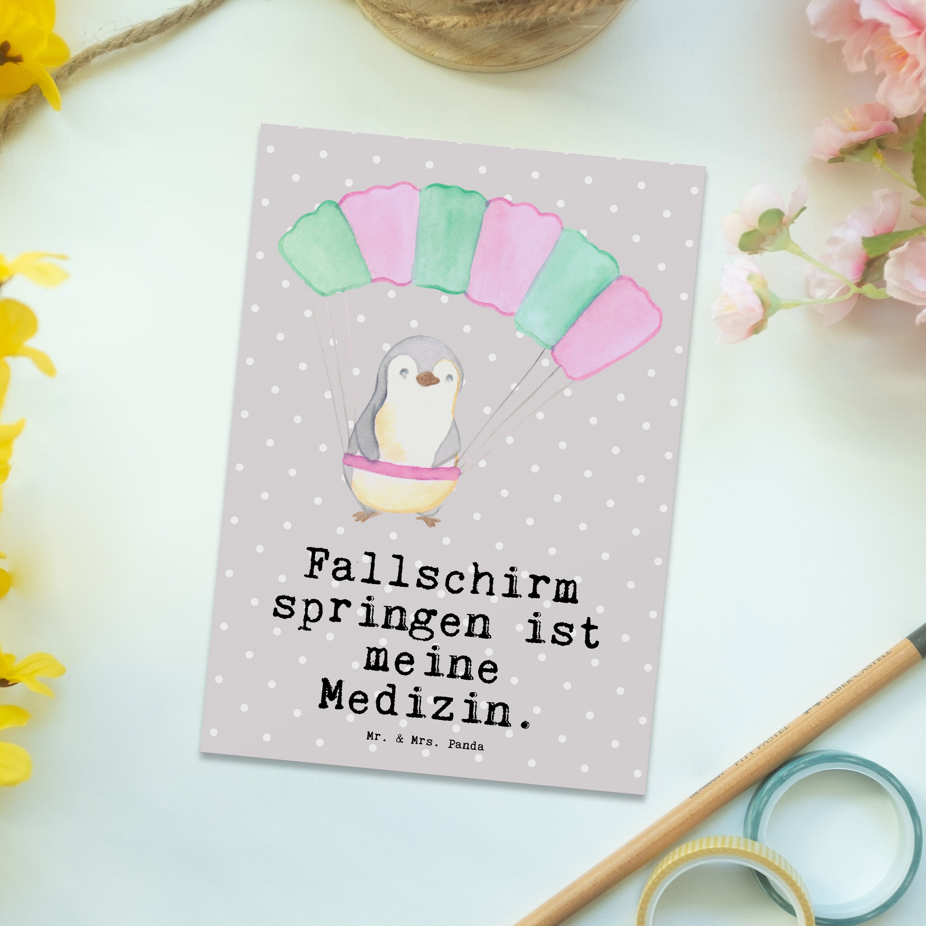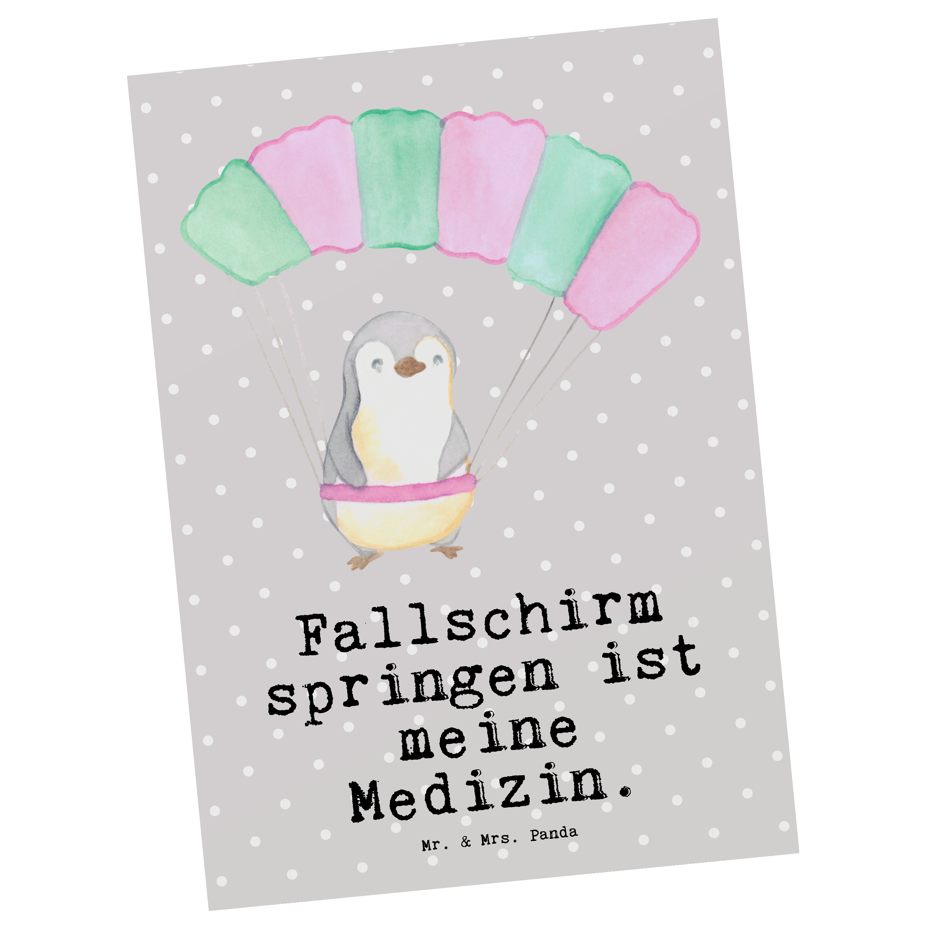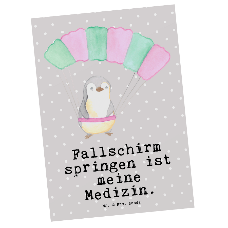 Postkarte Pinguin Fallschirm springen Medizin - Grau Pastell
