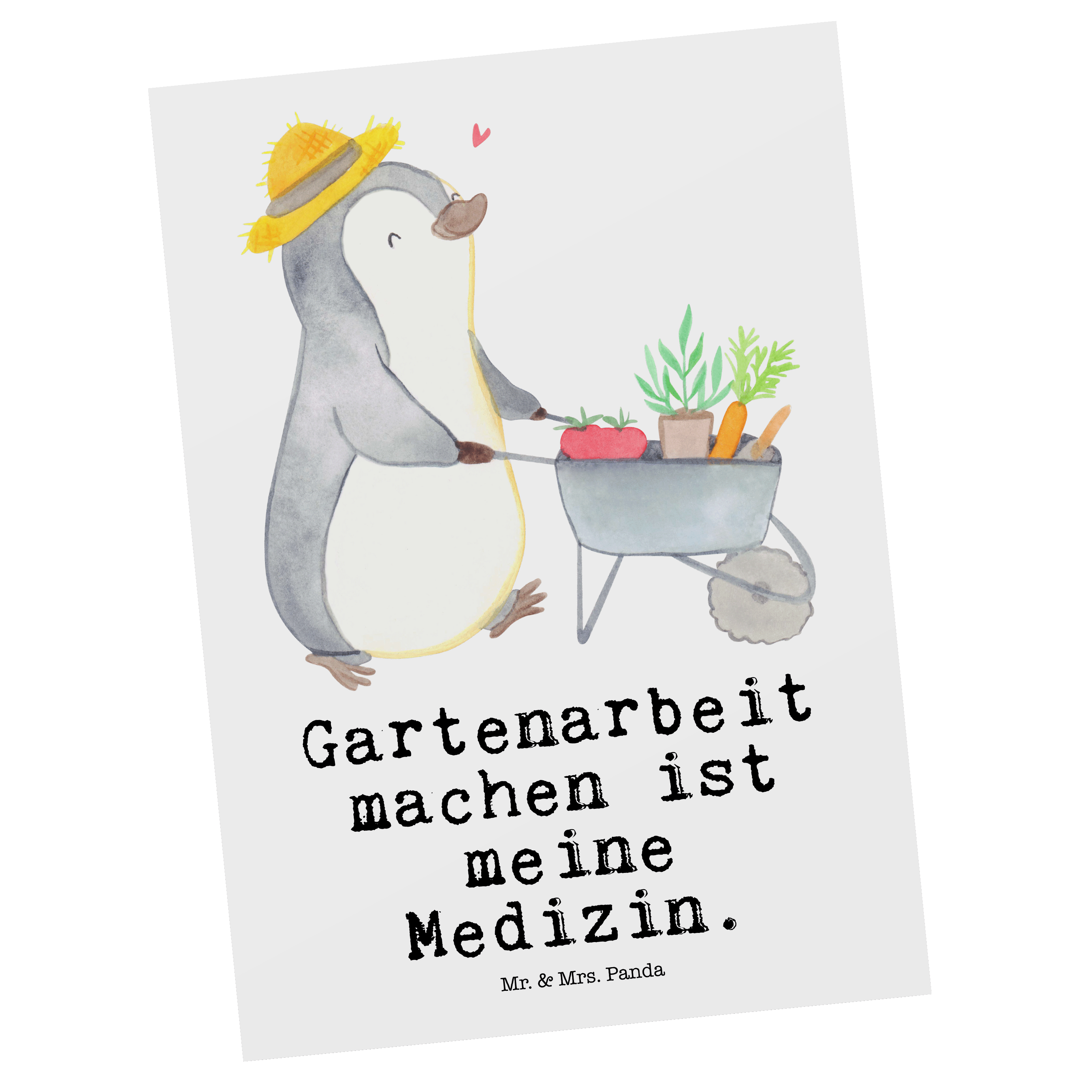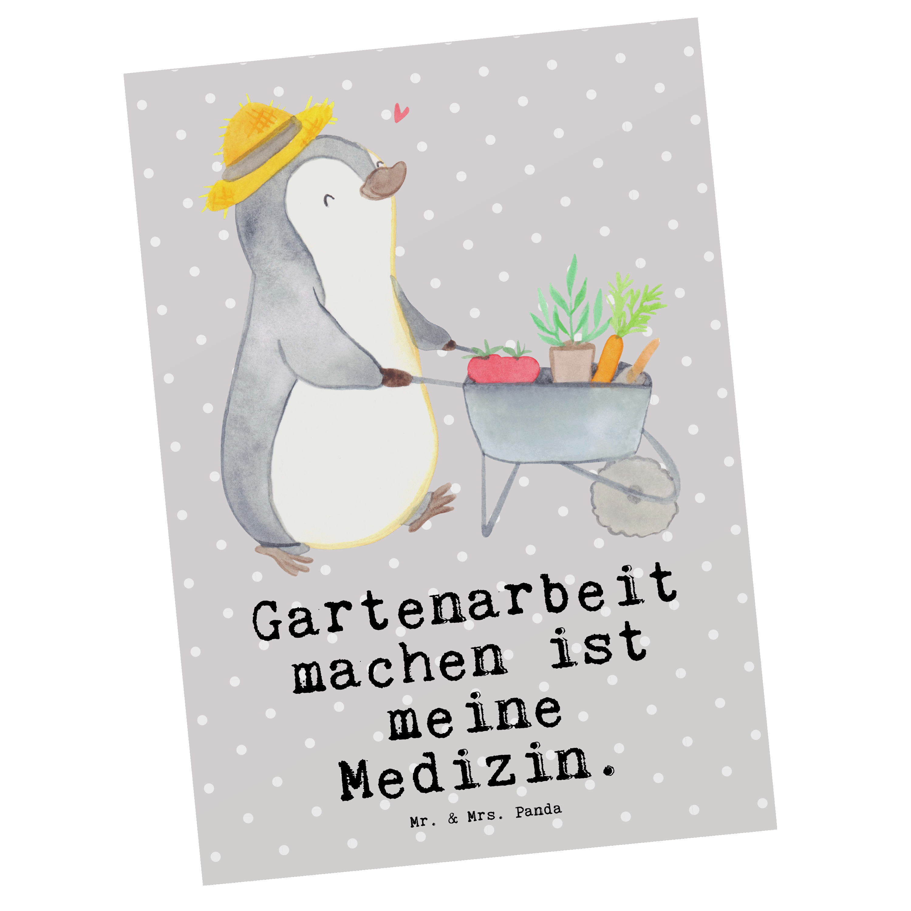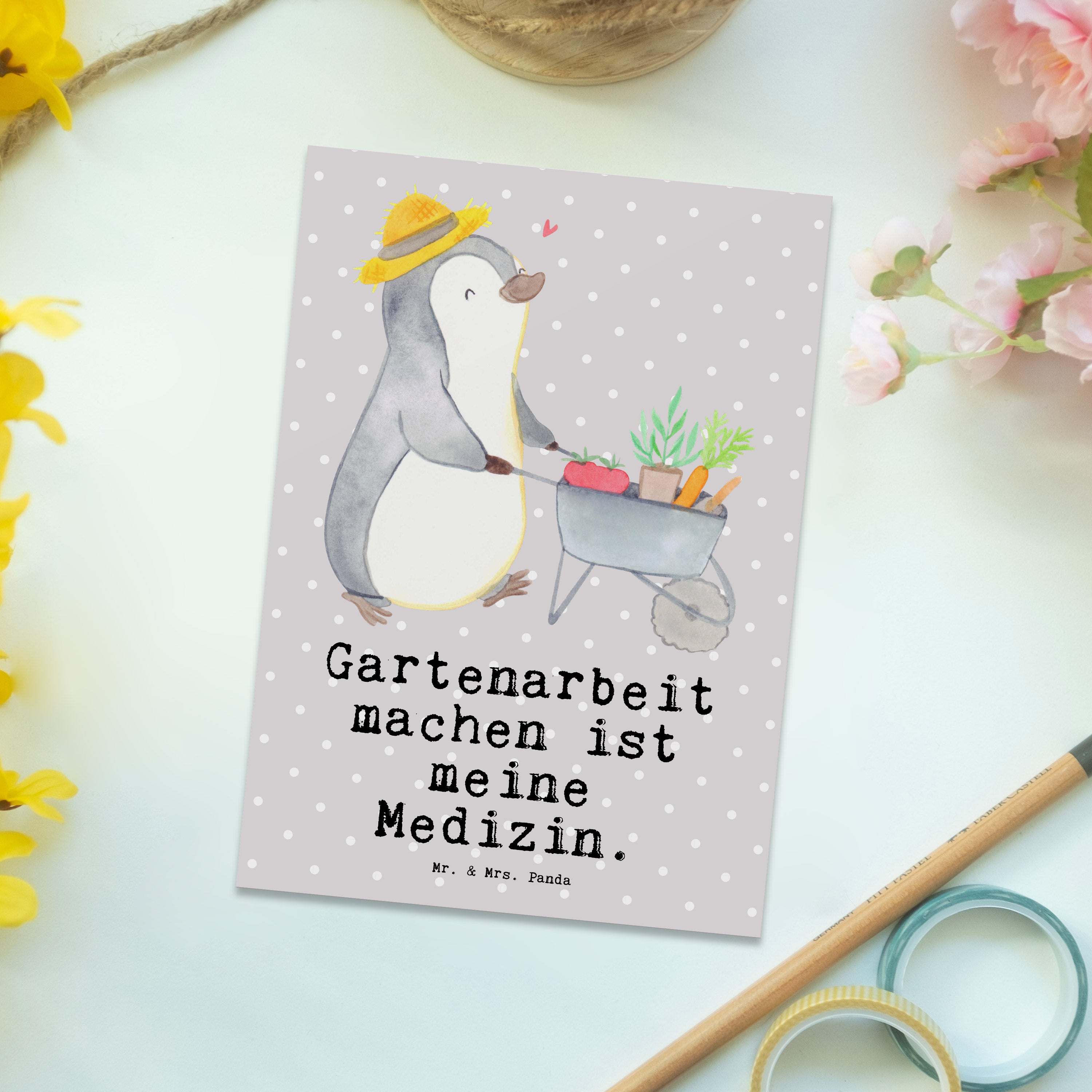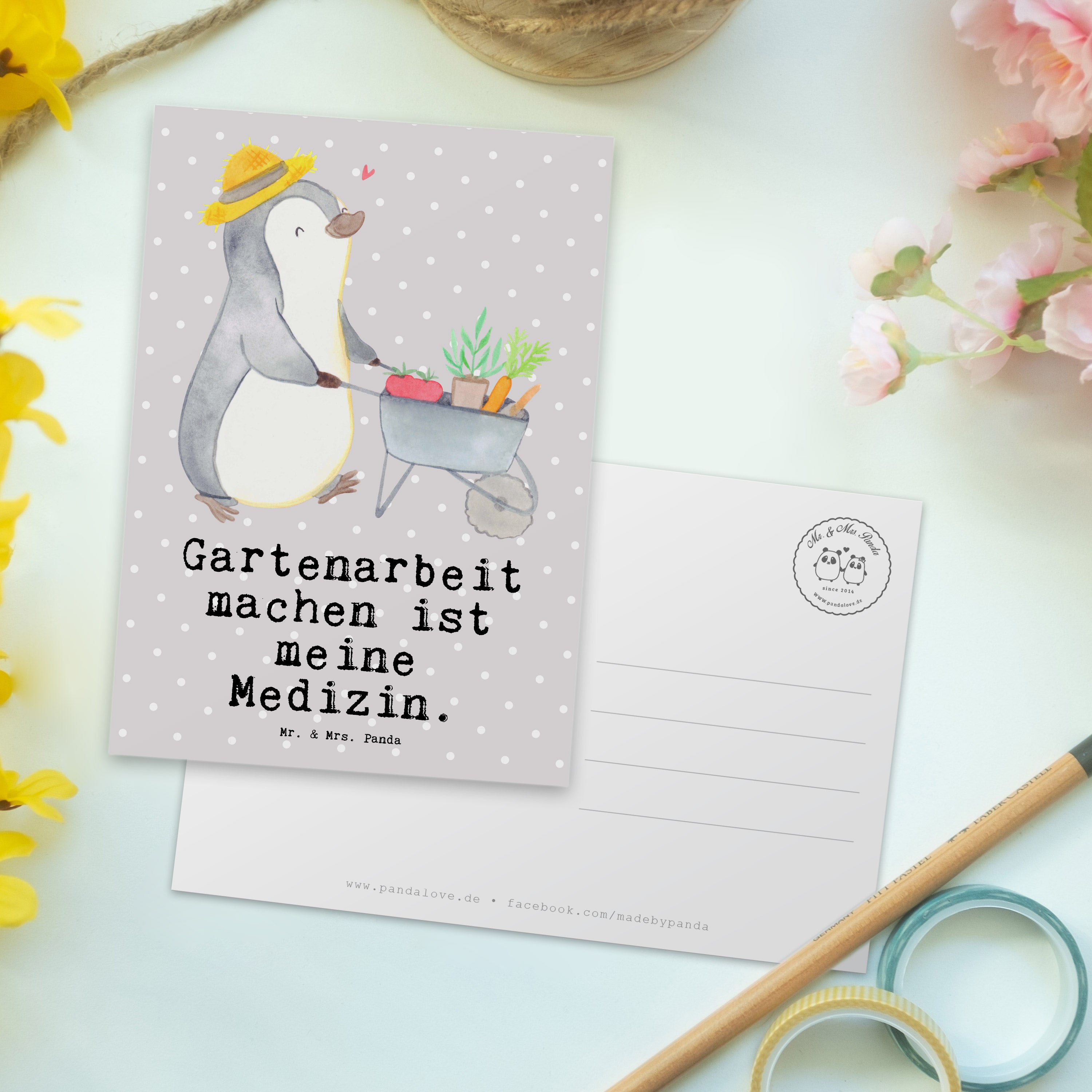 Postkarte Pinguin Gartenarbeit Medizin - Grau Pastell