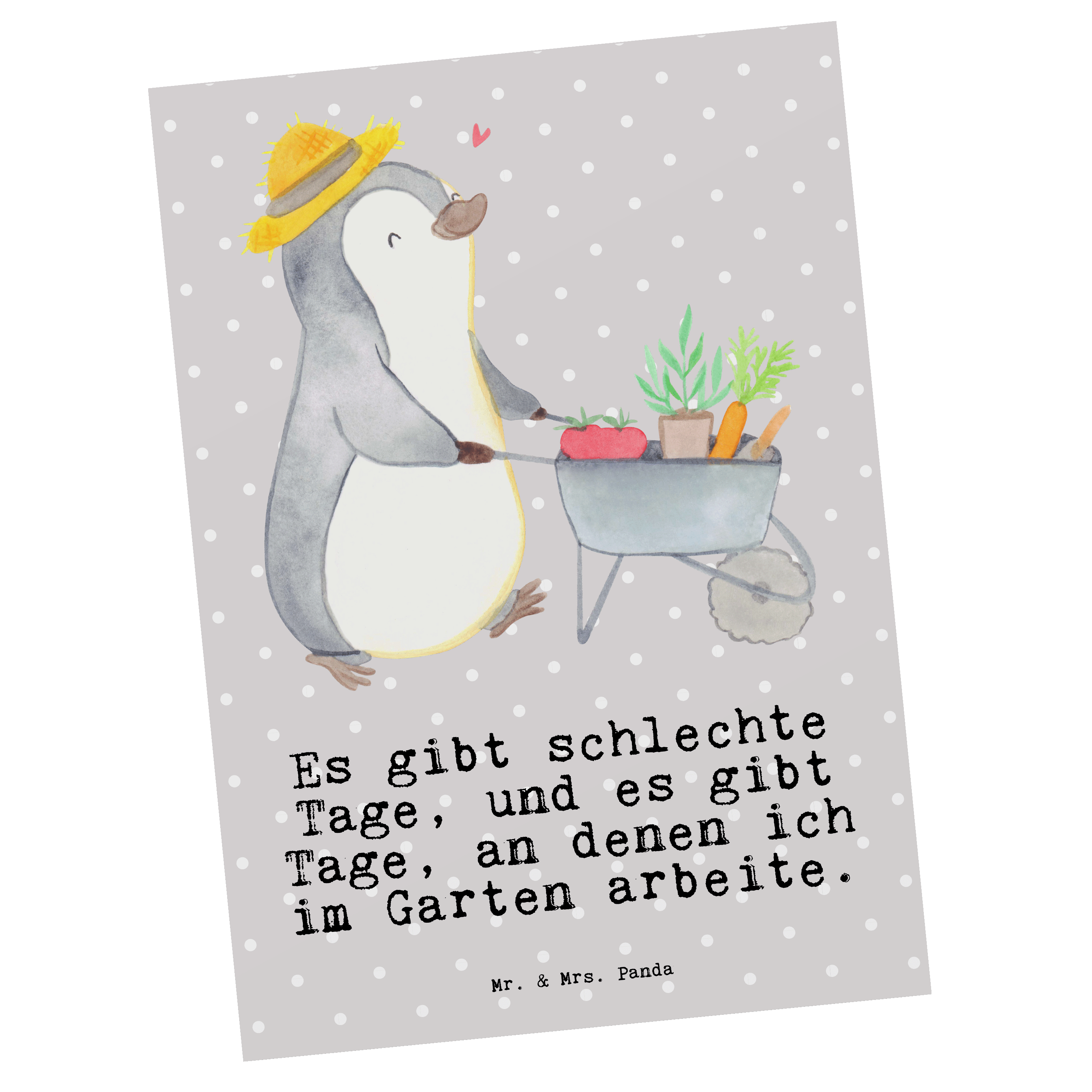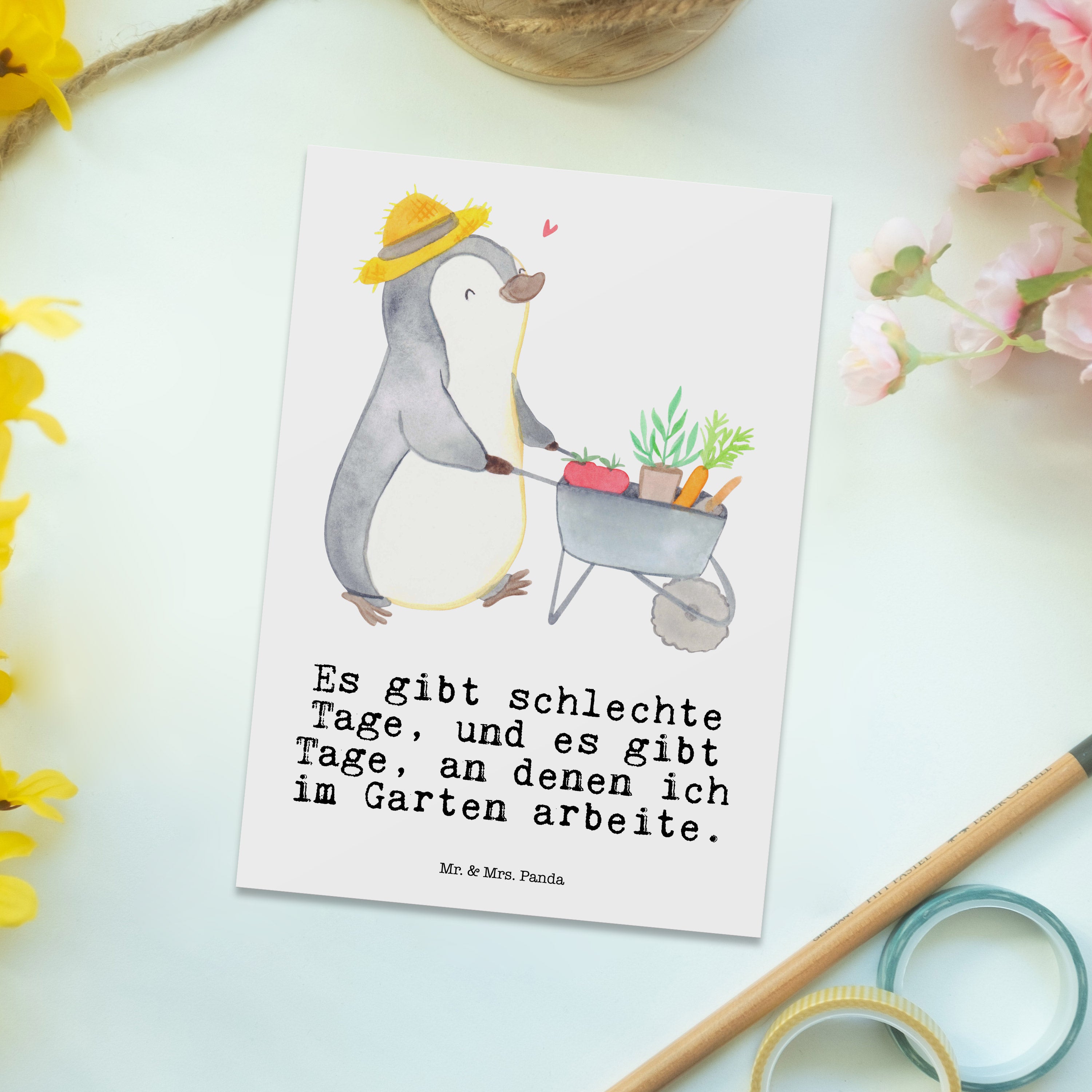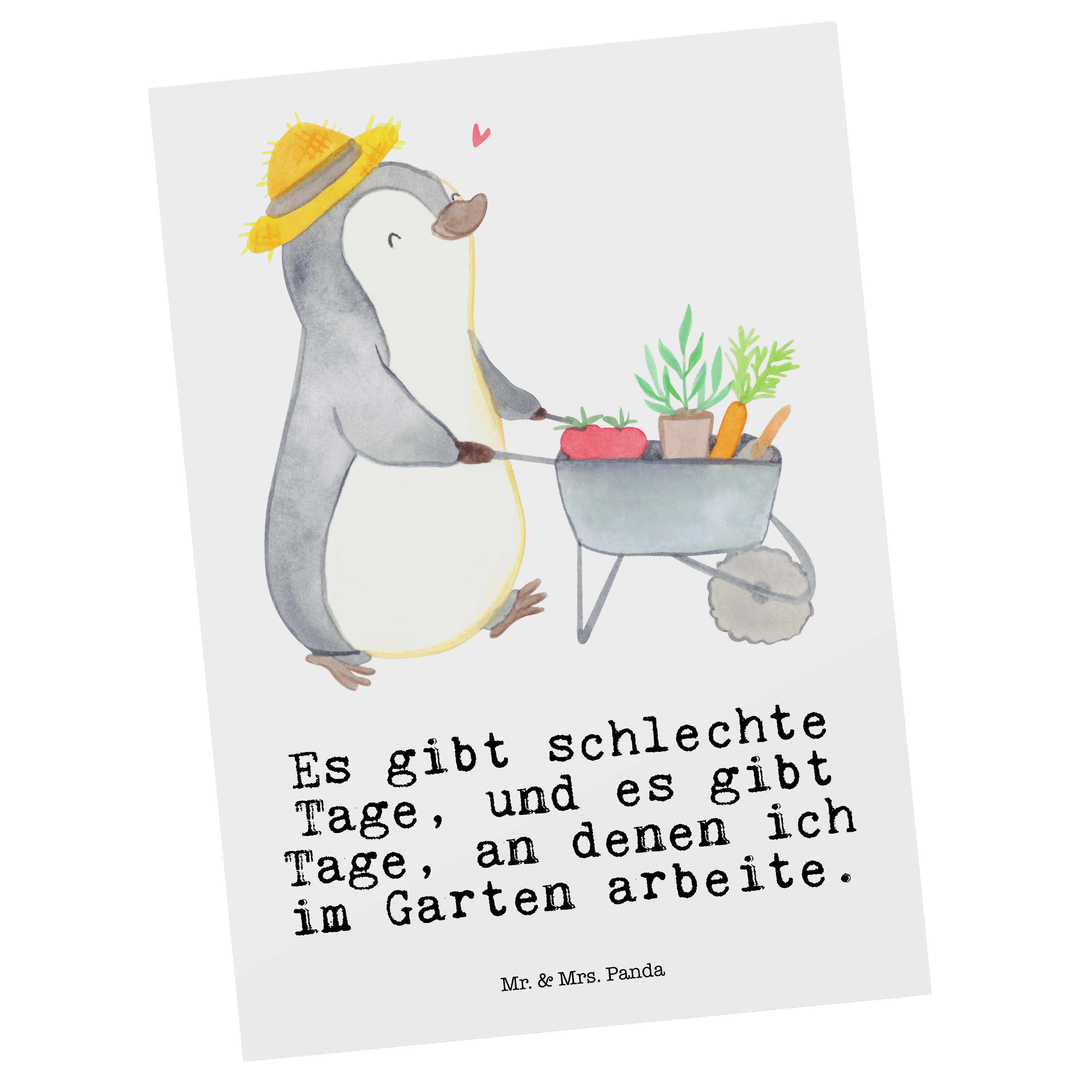 Postkarte Pinguin Gartenarbeit Tage - Weiß