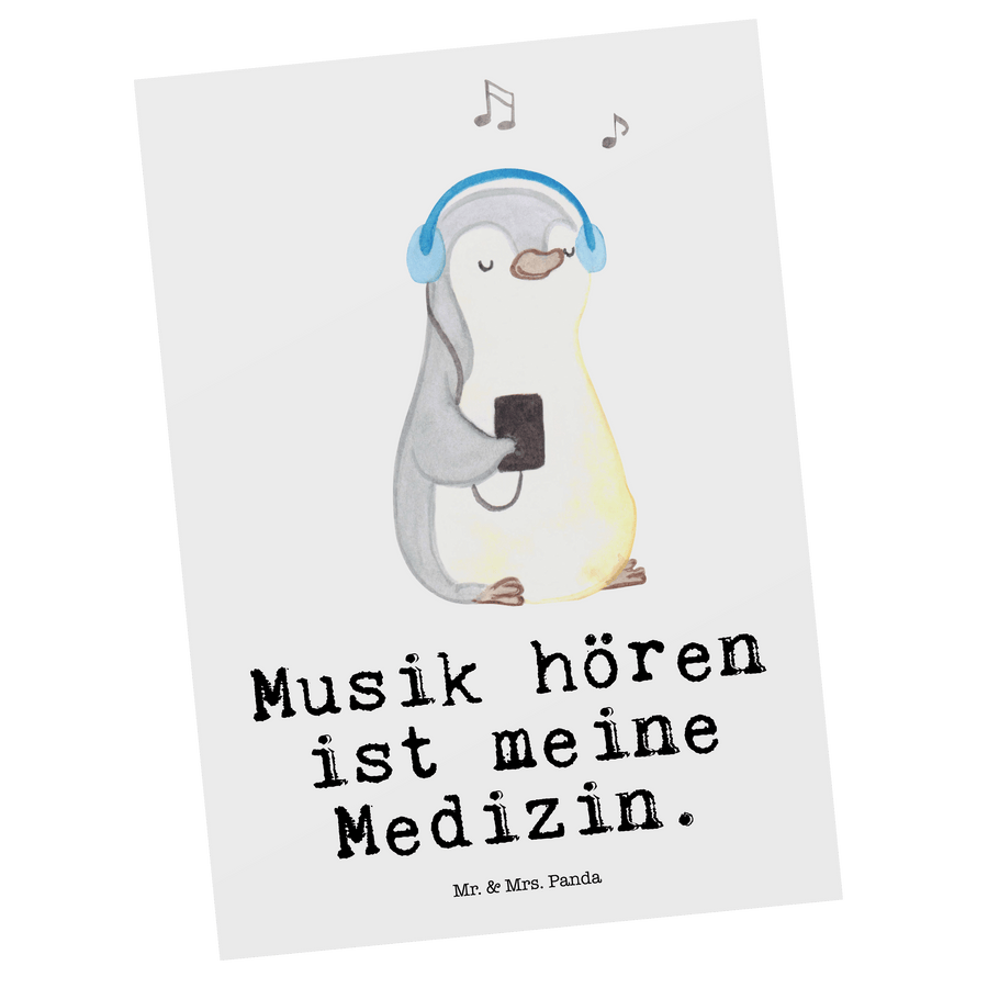 Postkarte Pinguin Musik hören Medizin - Weiß