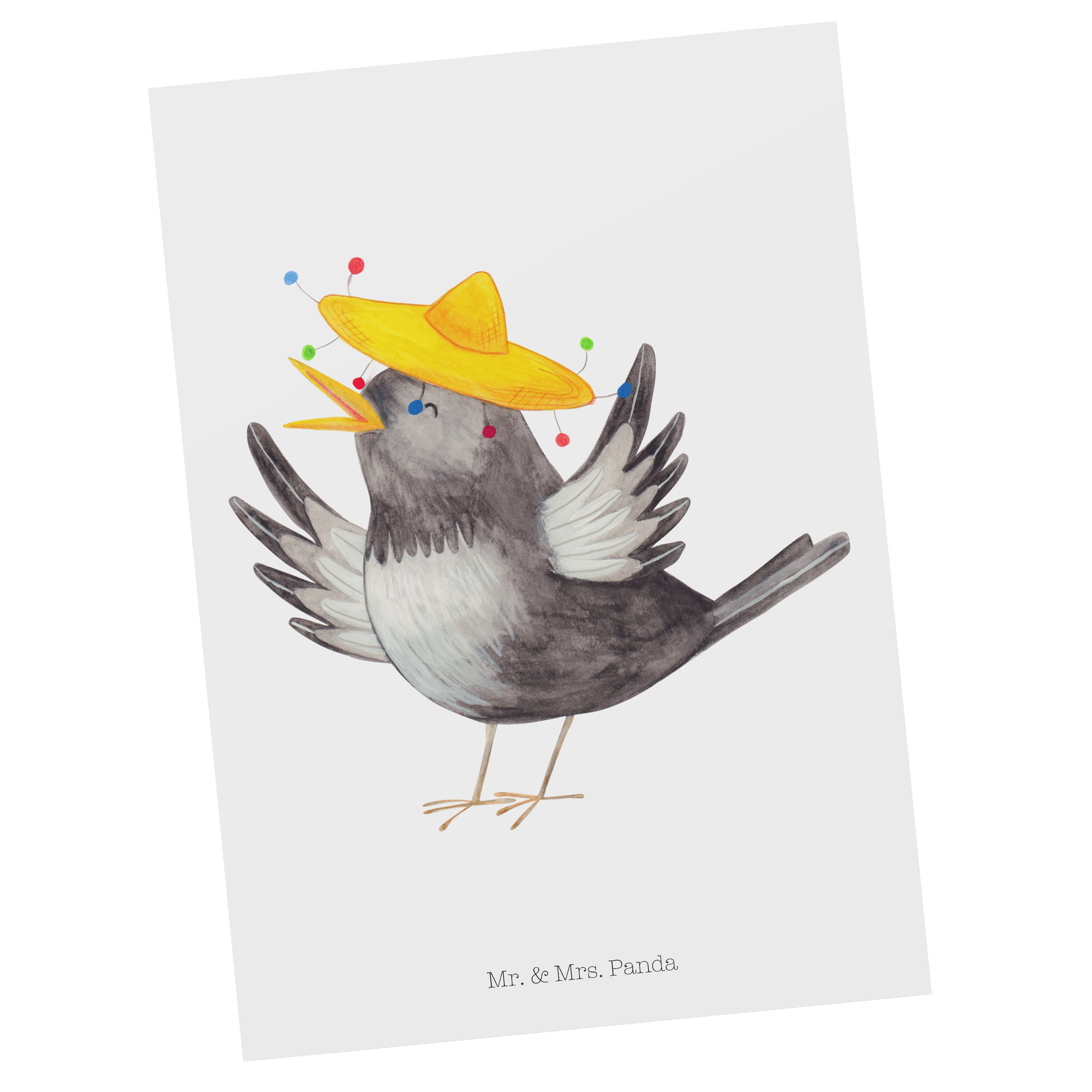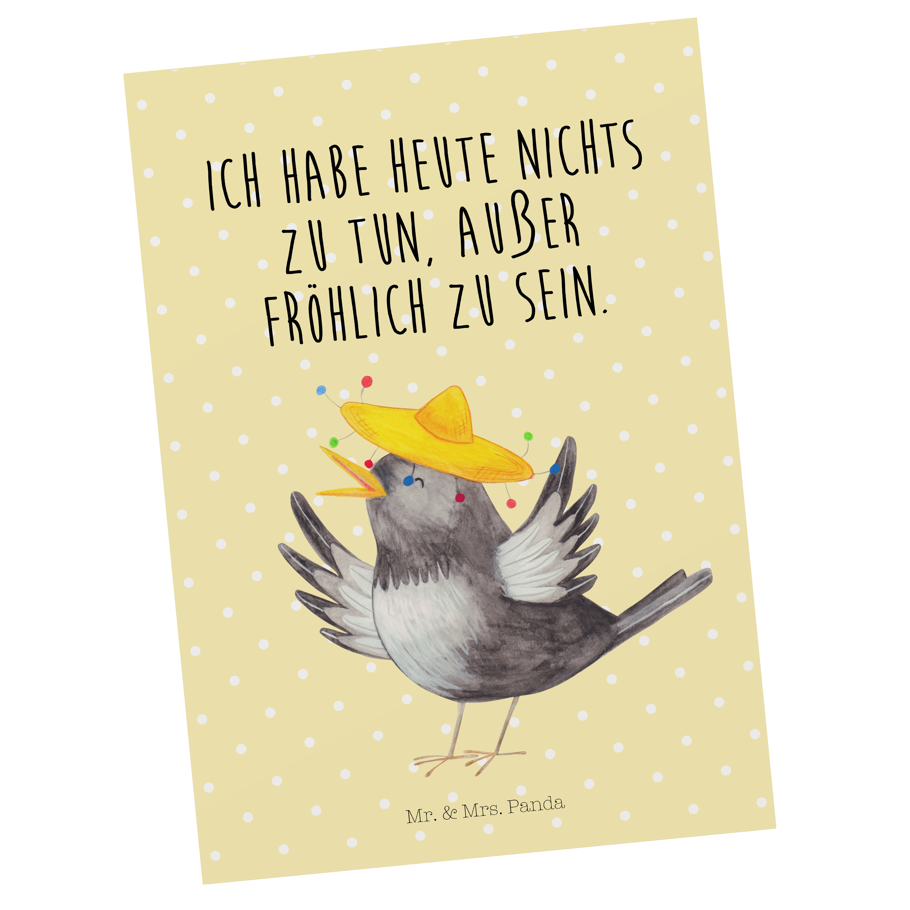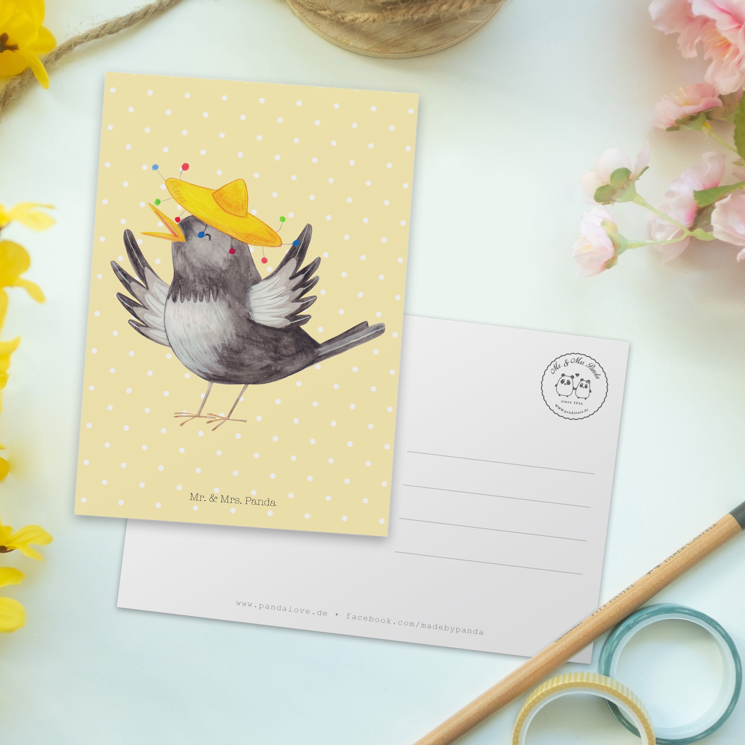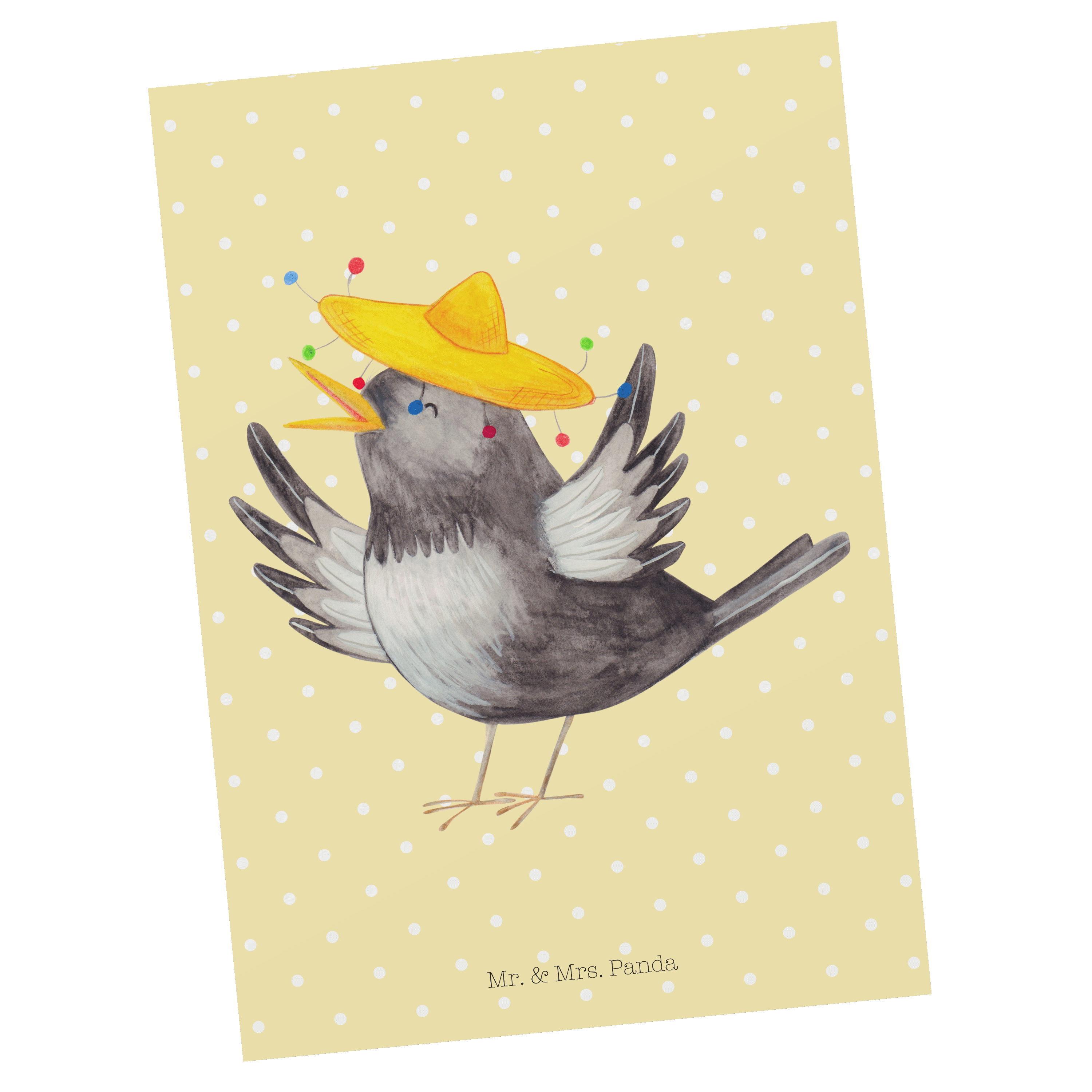 Postkarte Rabe mit Sombrero - mit Spruch - Gelb Pastell
