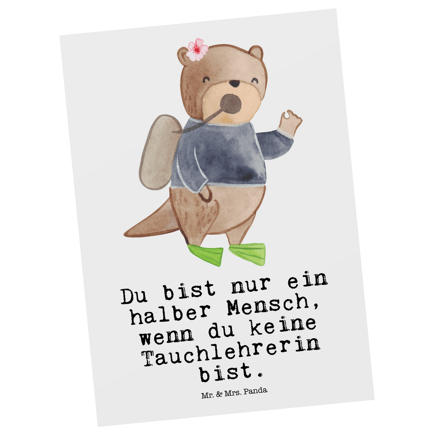 Postkarte Tauchlehrerin mit Herz - Weiß