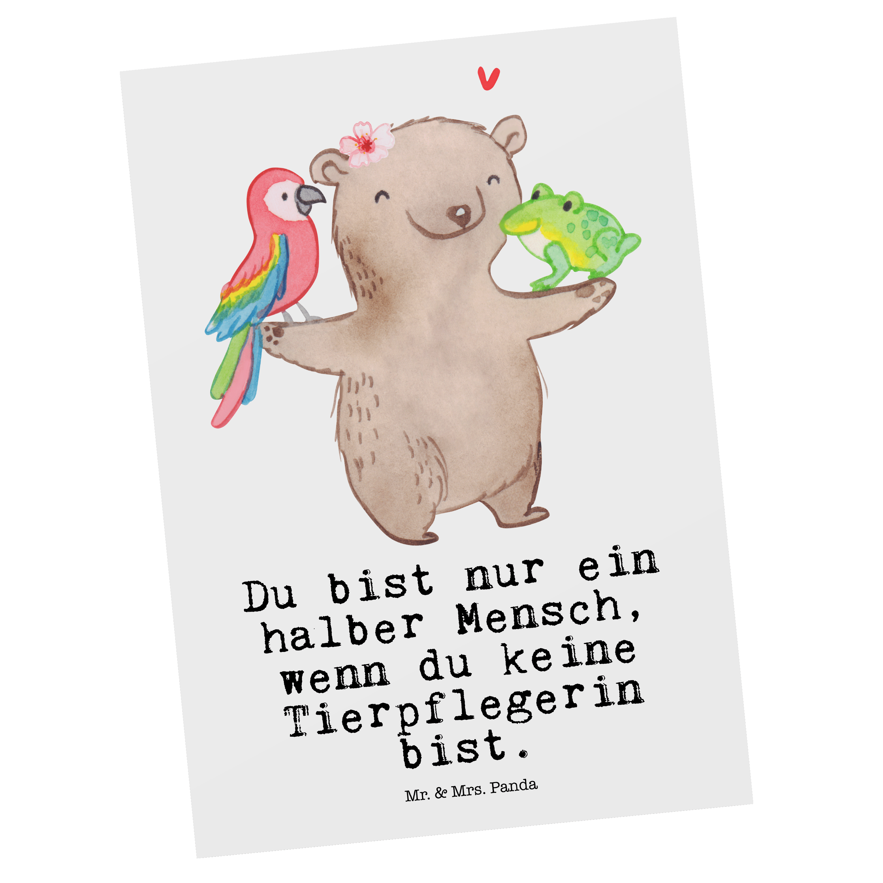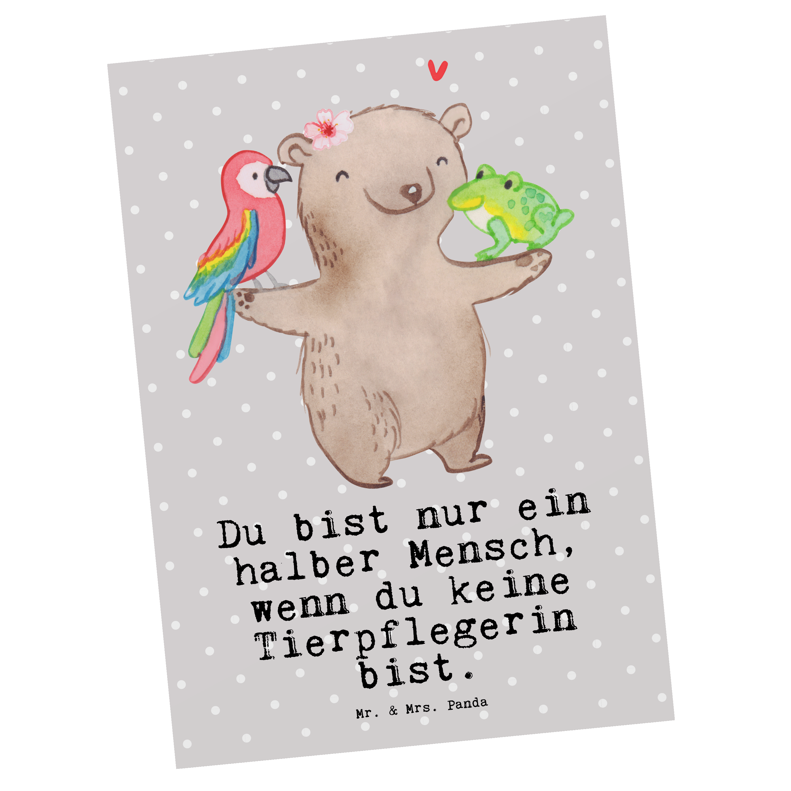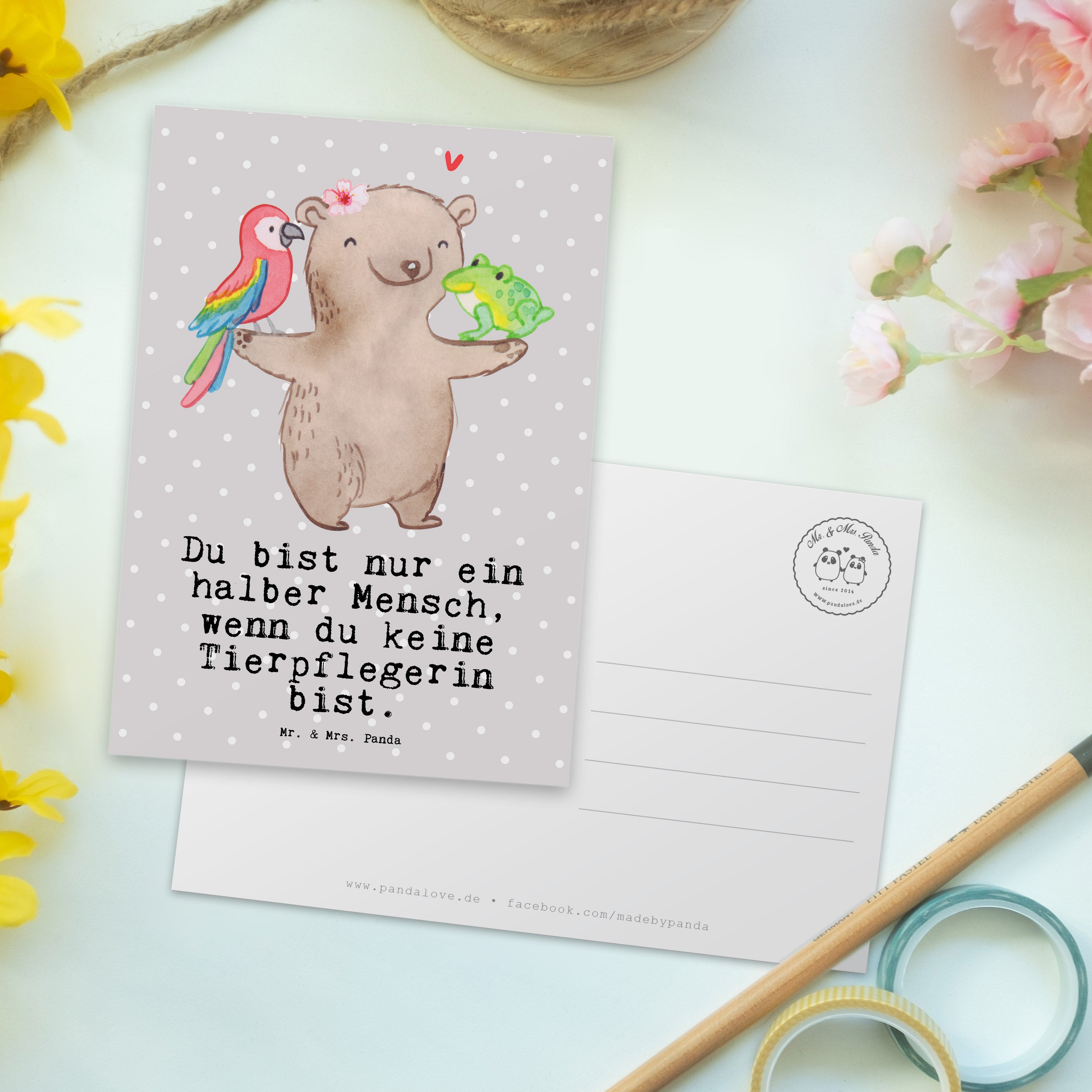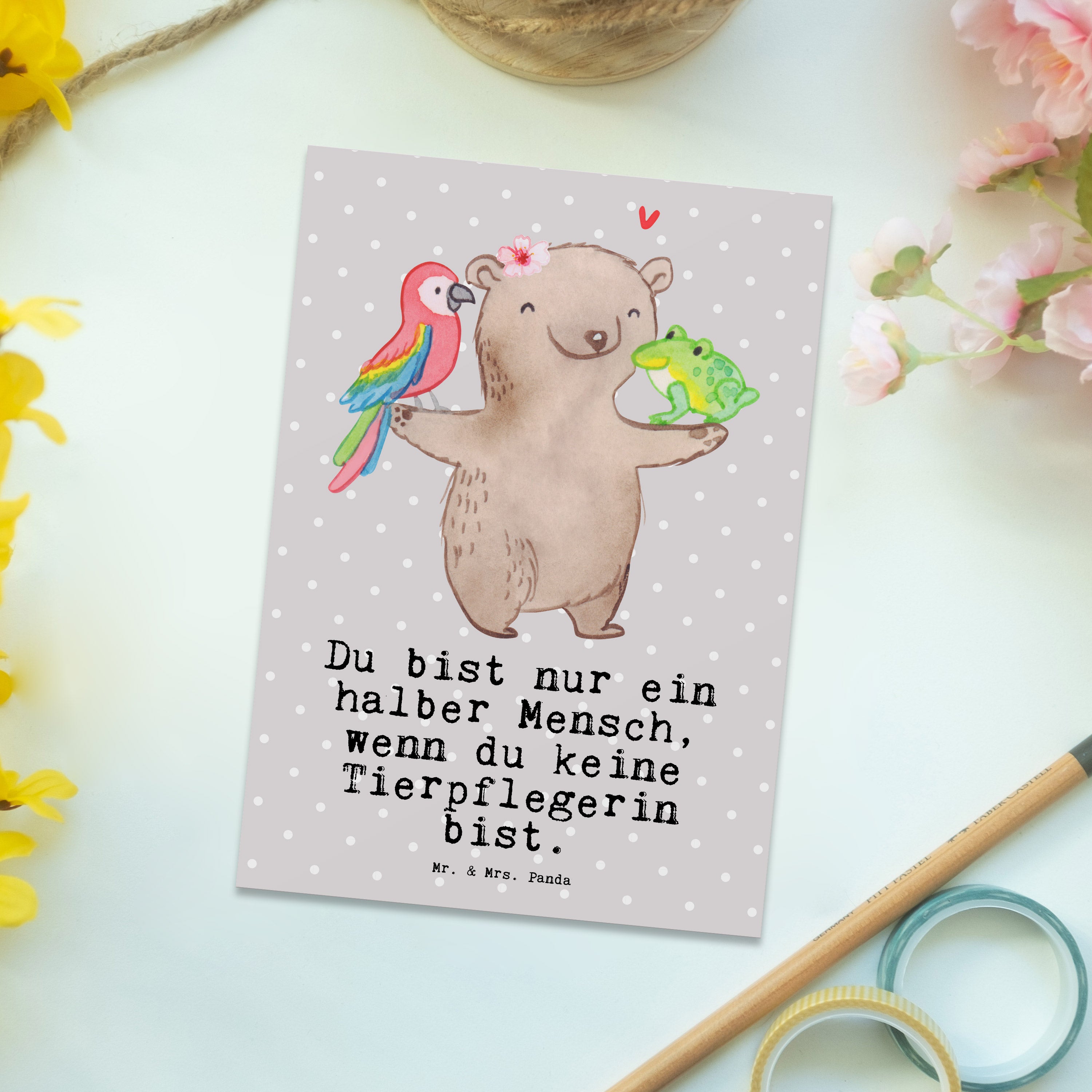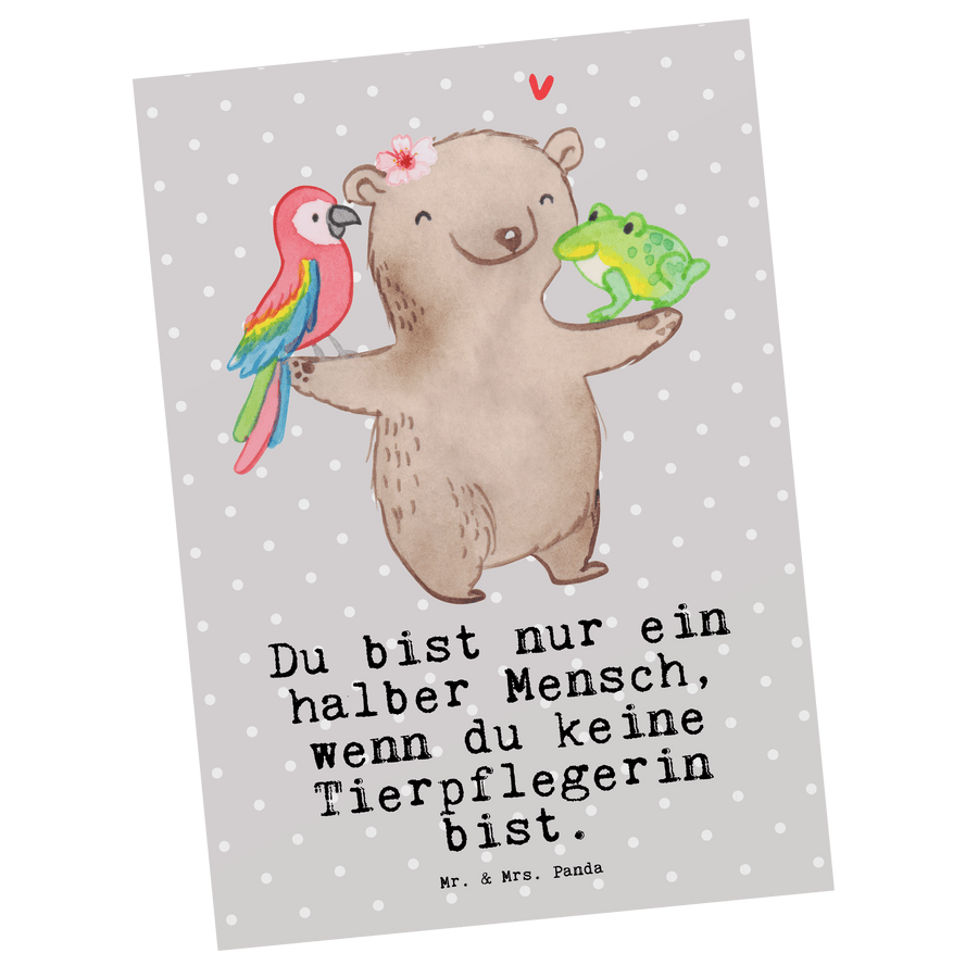 Postkarte Tierpflegerin mit Herz - Grau Pastell