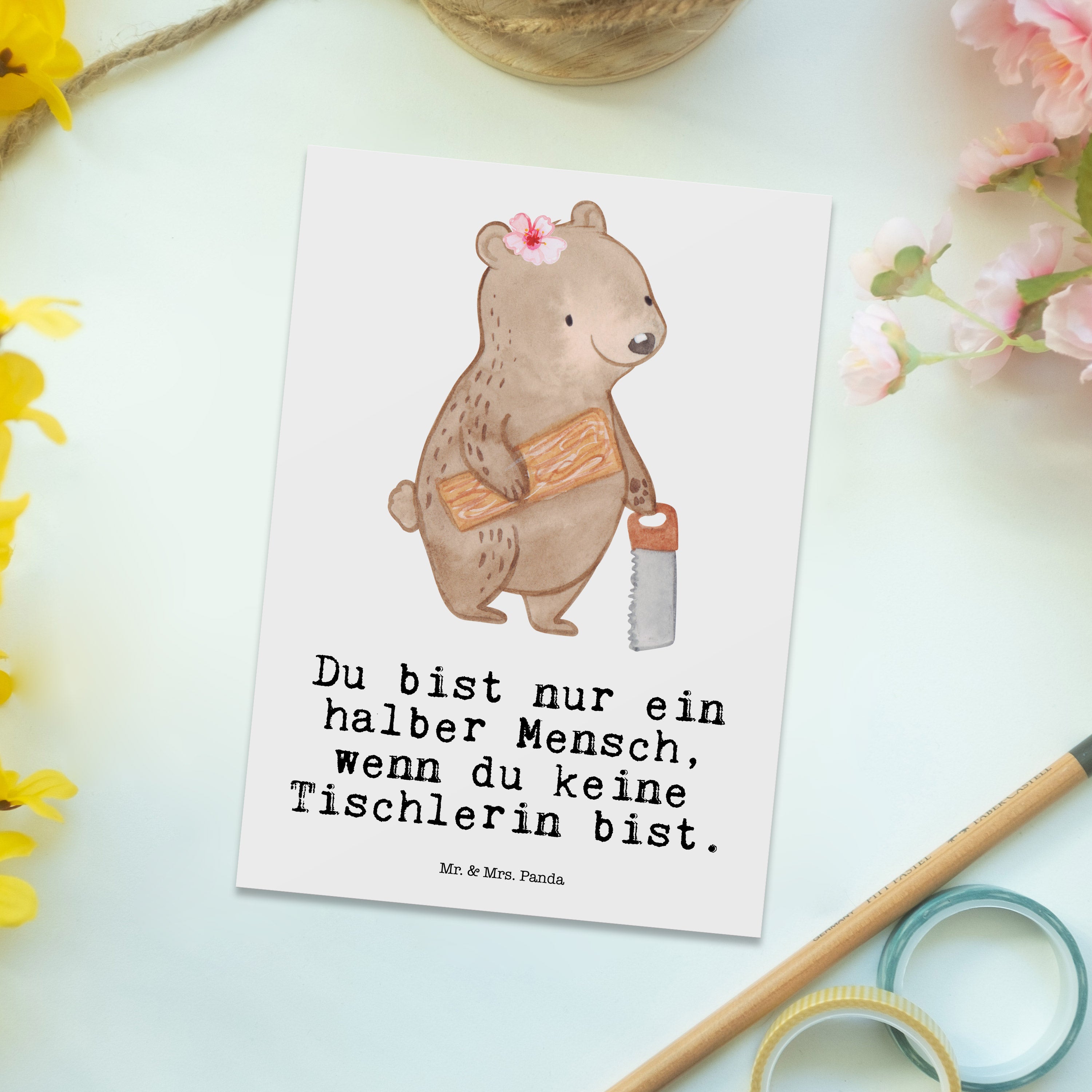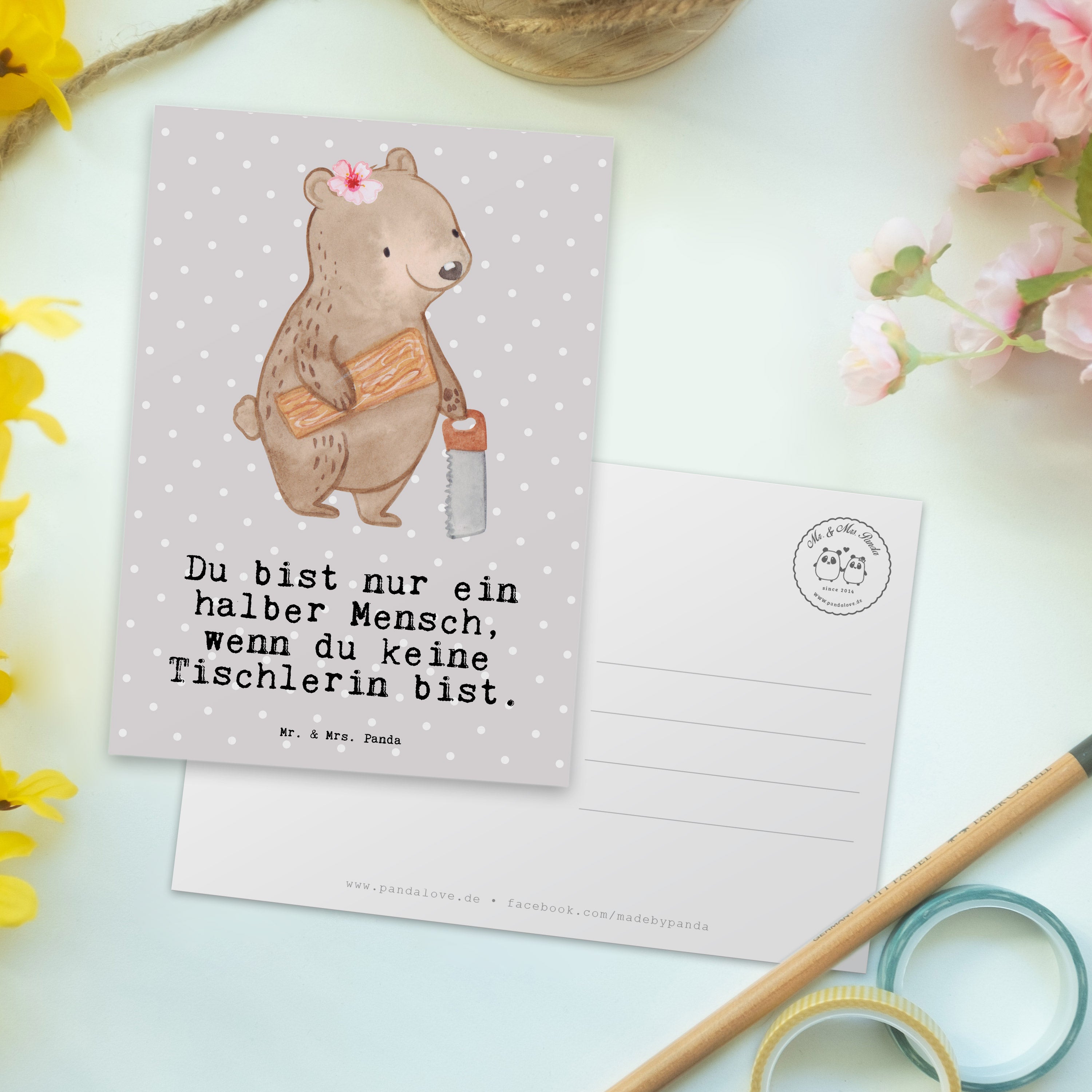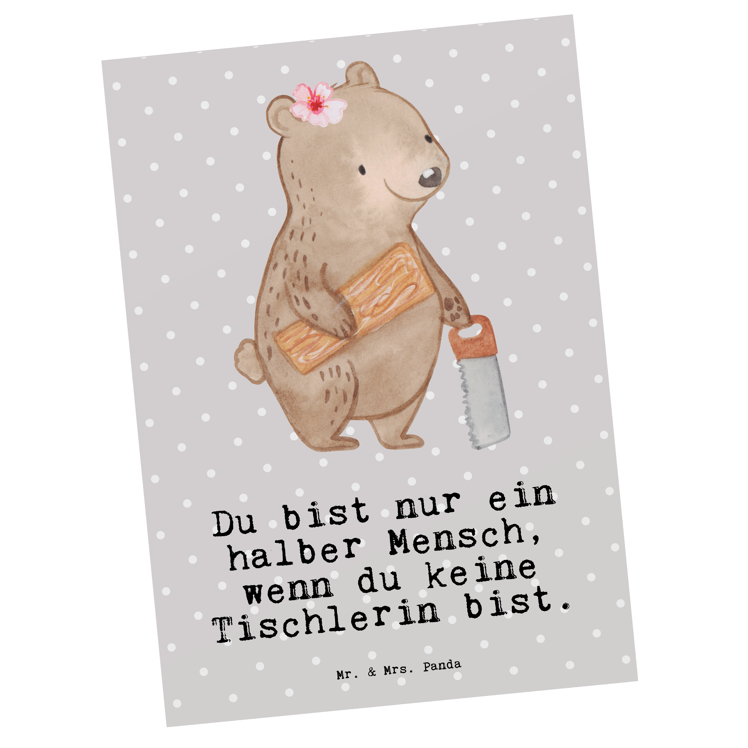 Postkarte Tischlerin mit Herz - Grau Pastell