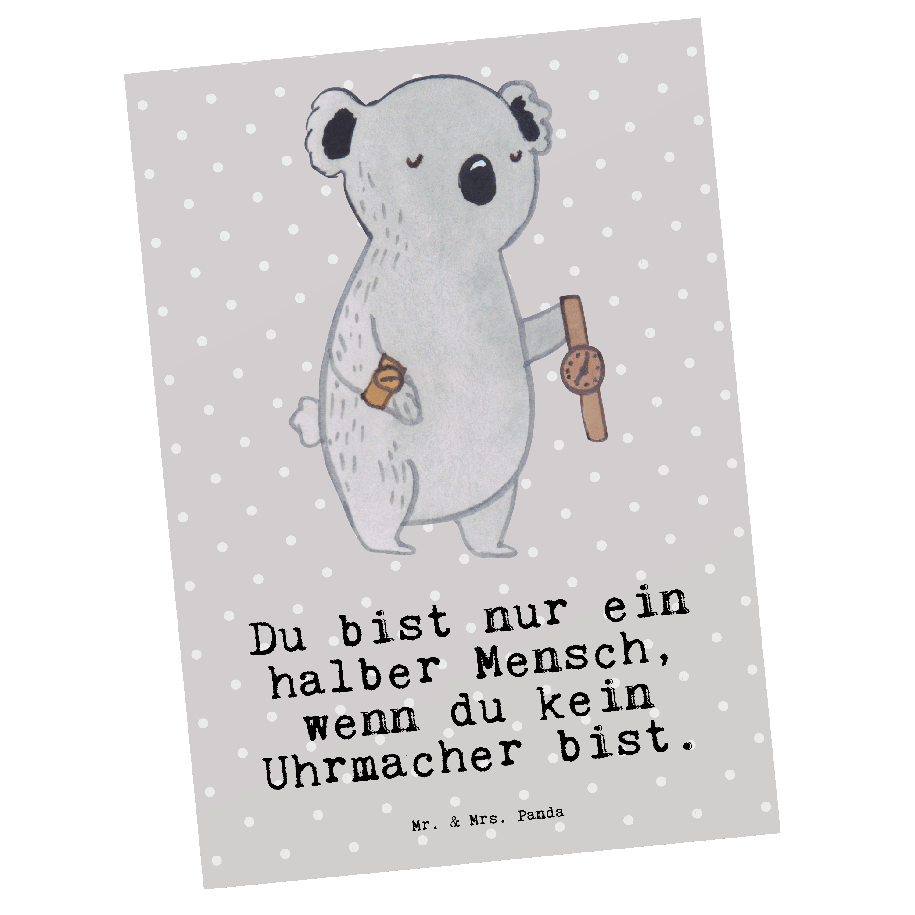 Postkarte Uhrmacher mit Herz - Grau Pastell