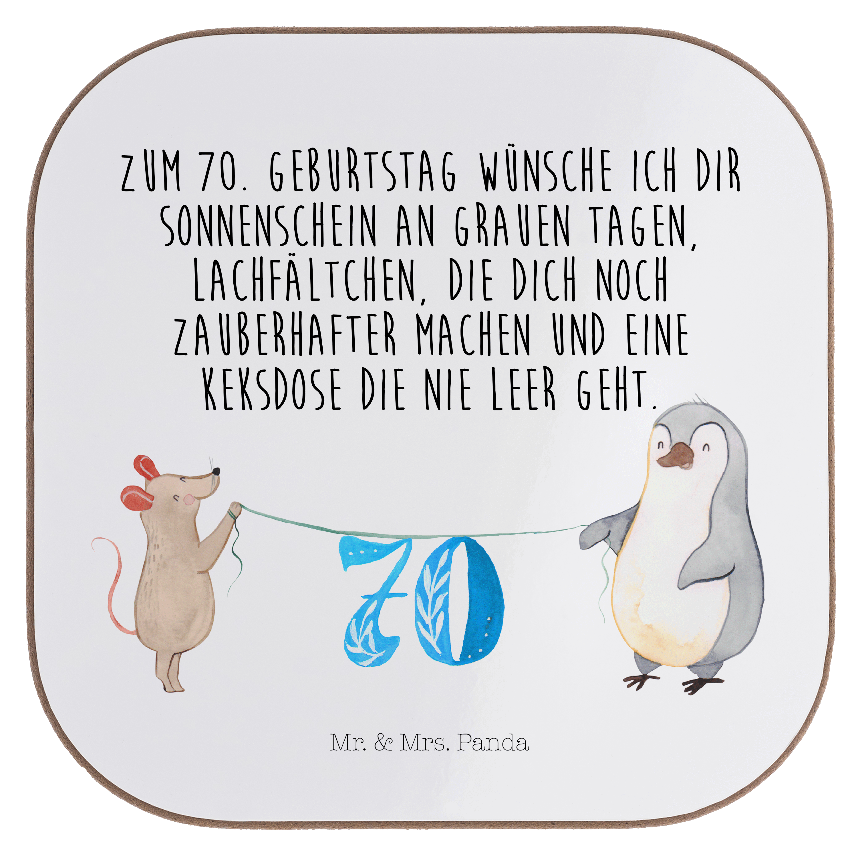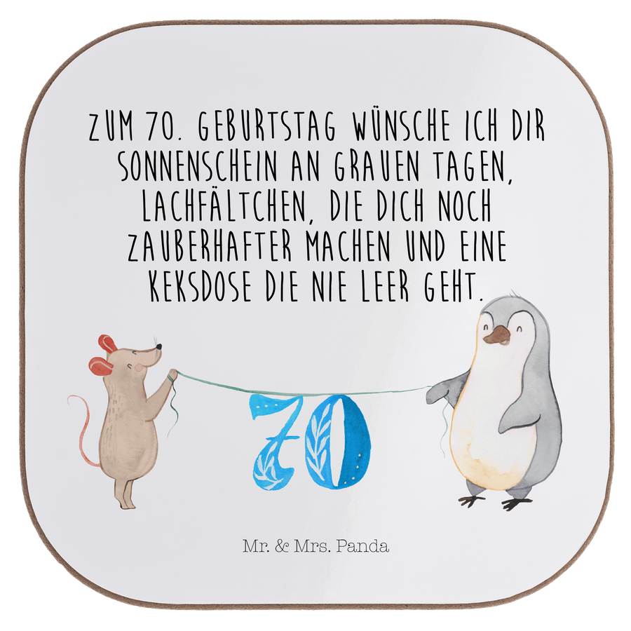 Quadratische Untersetzer 70. Geburtstag Maus Pinguin