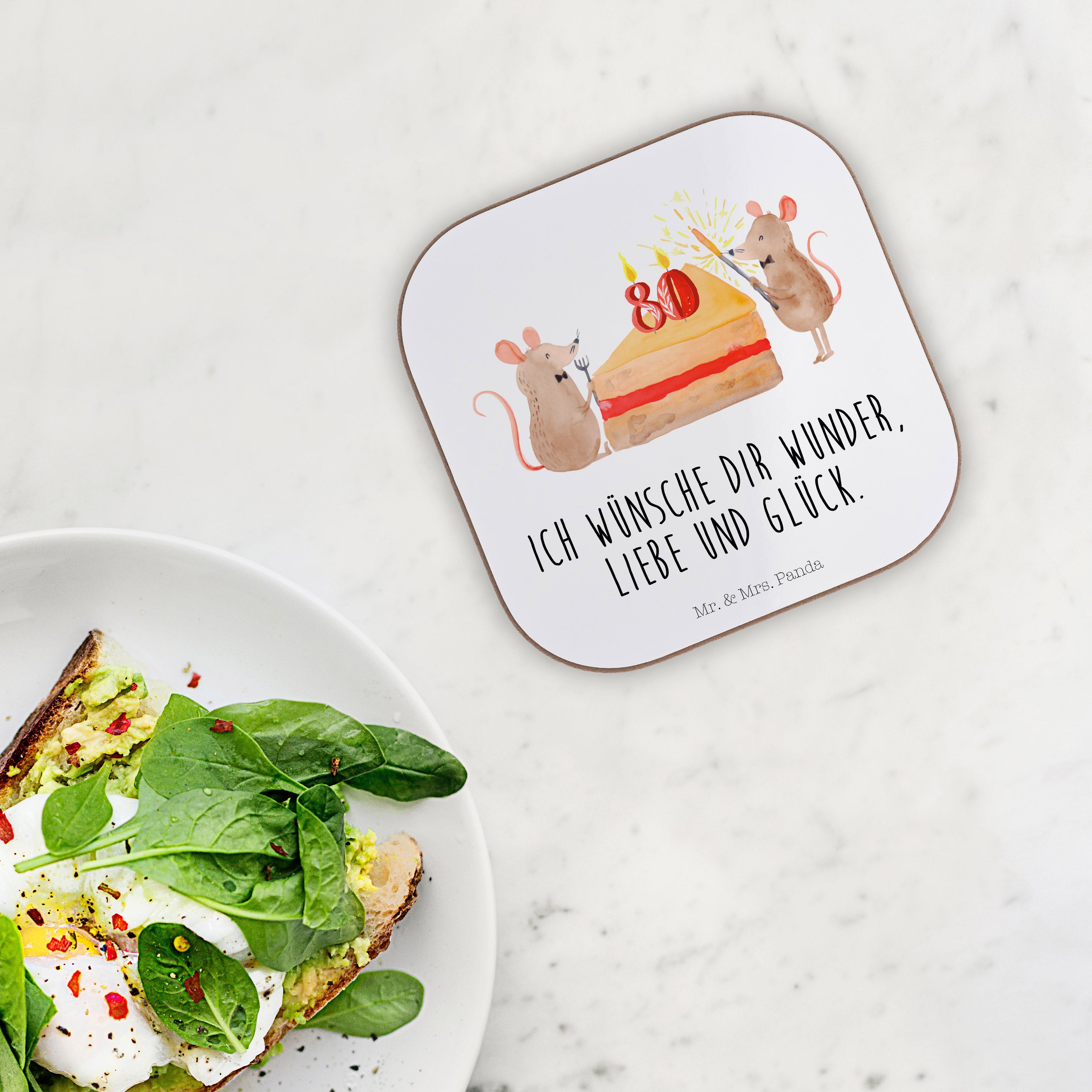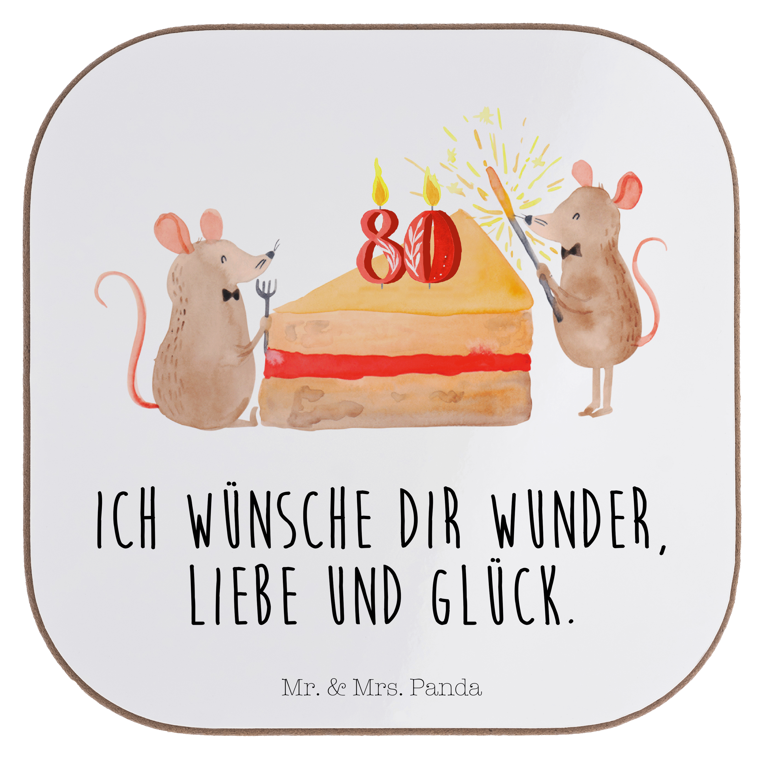 Quadratische Untersetzer 80. Geburtstag Mäuse Kuchen