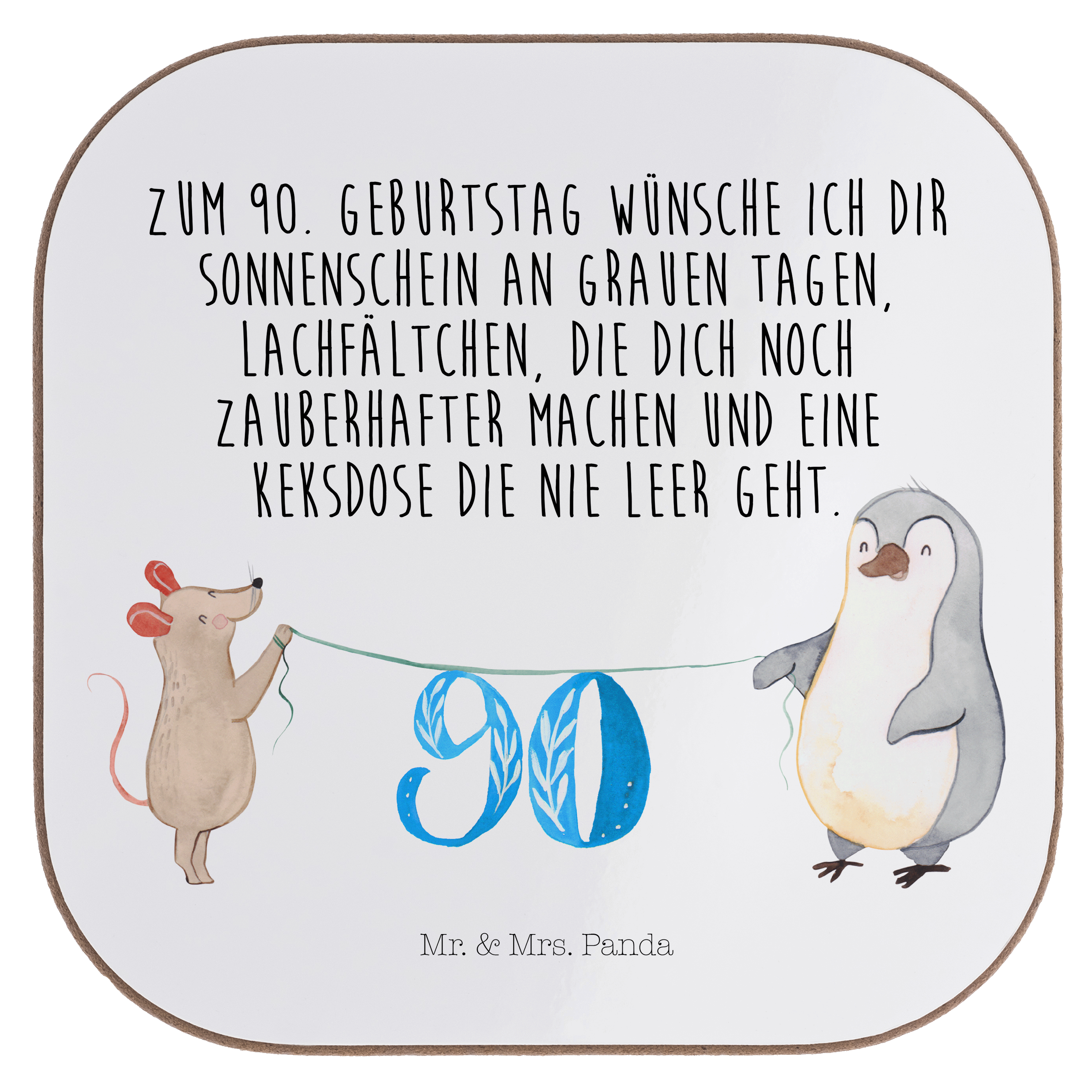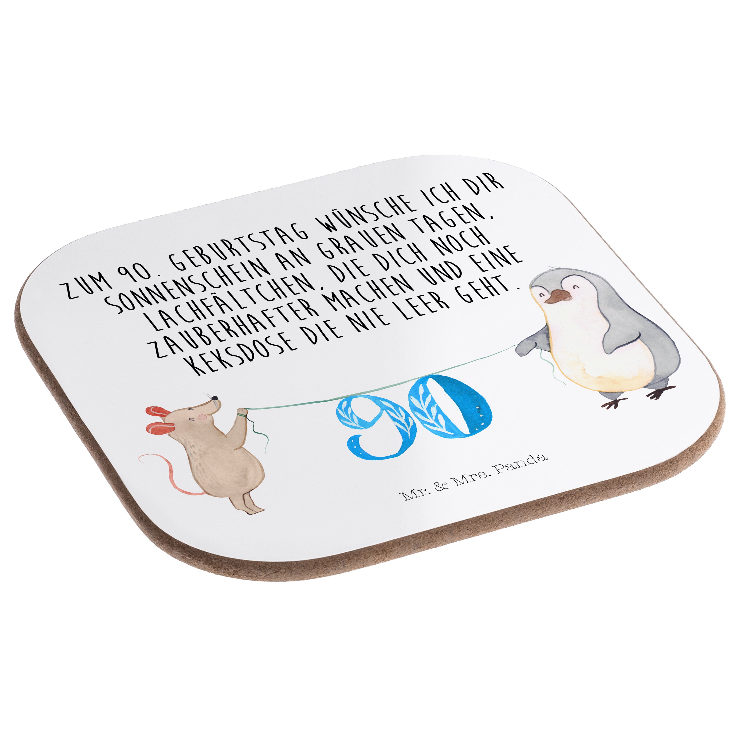Quadratische Untersetzer 90. Geburtstag Maus Pinguin