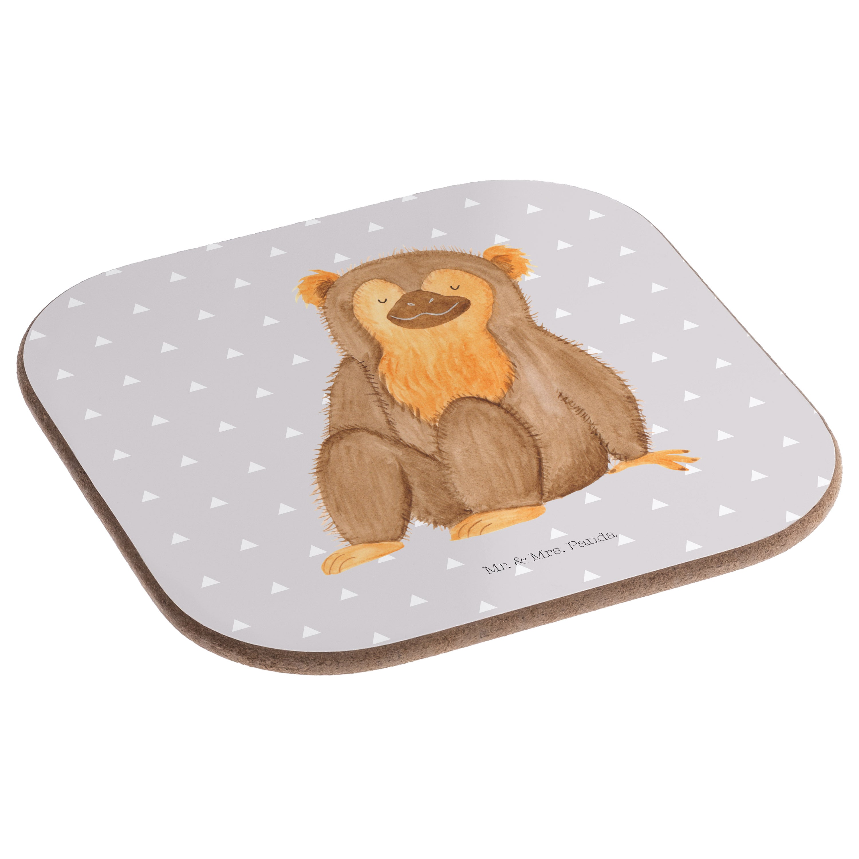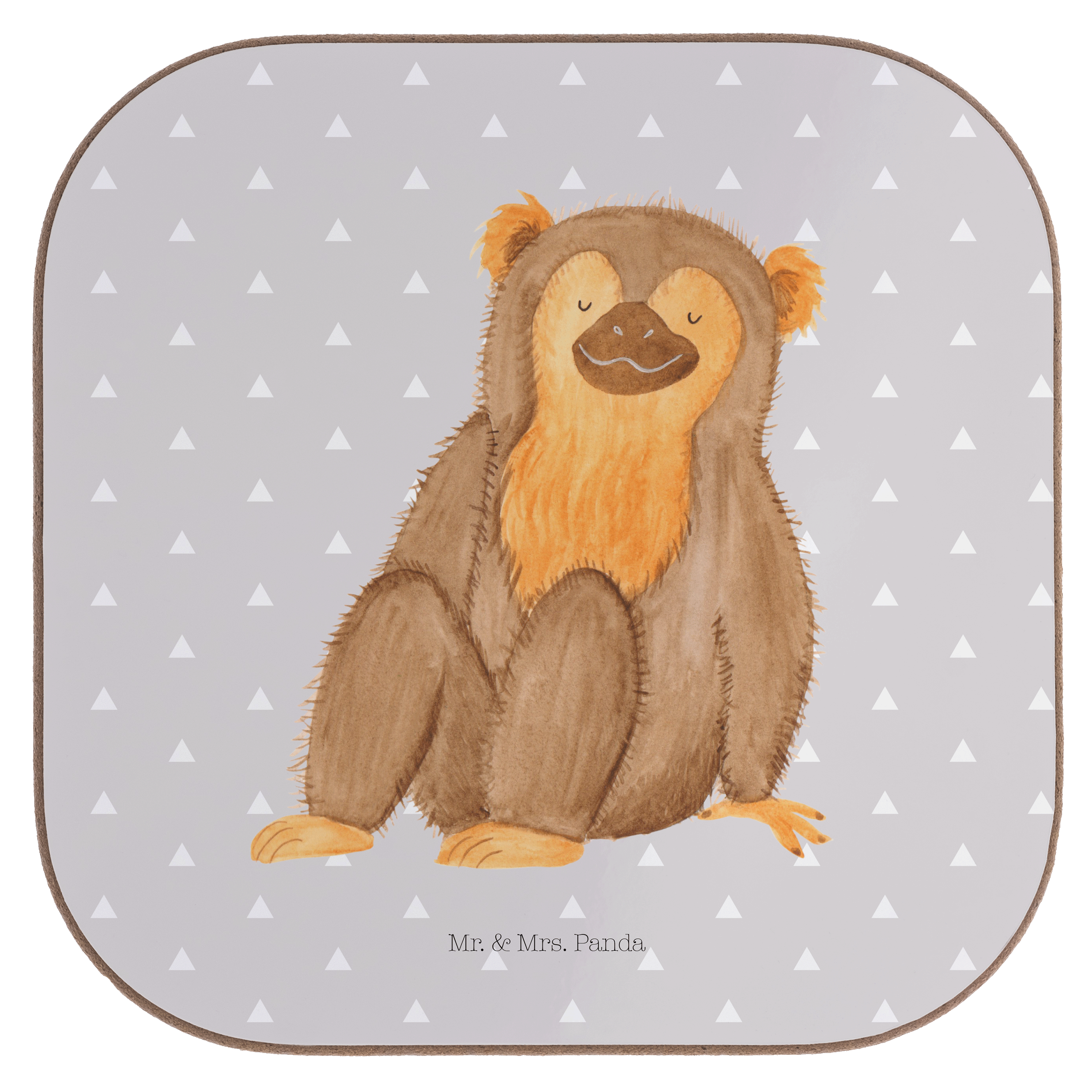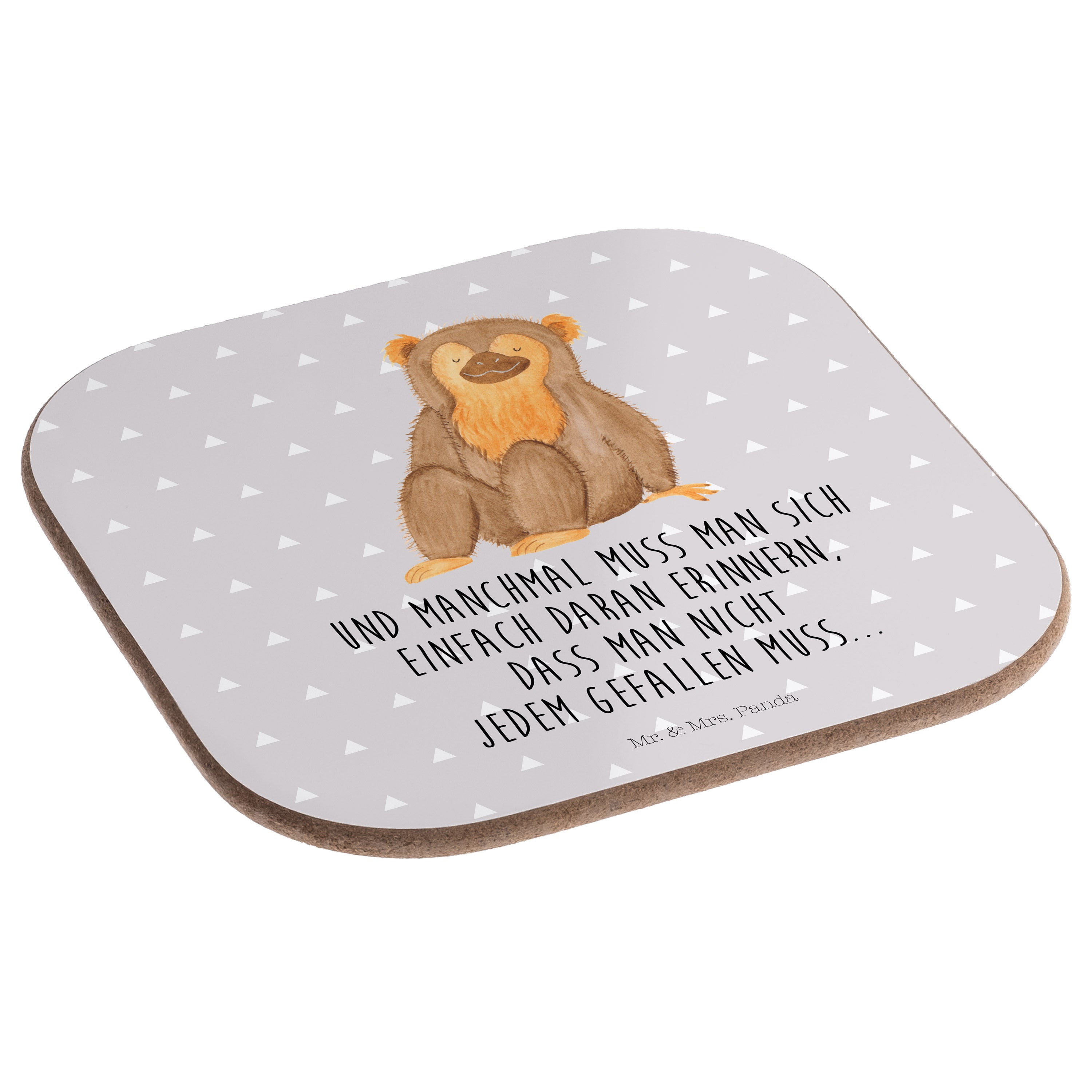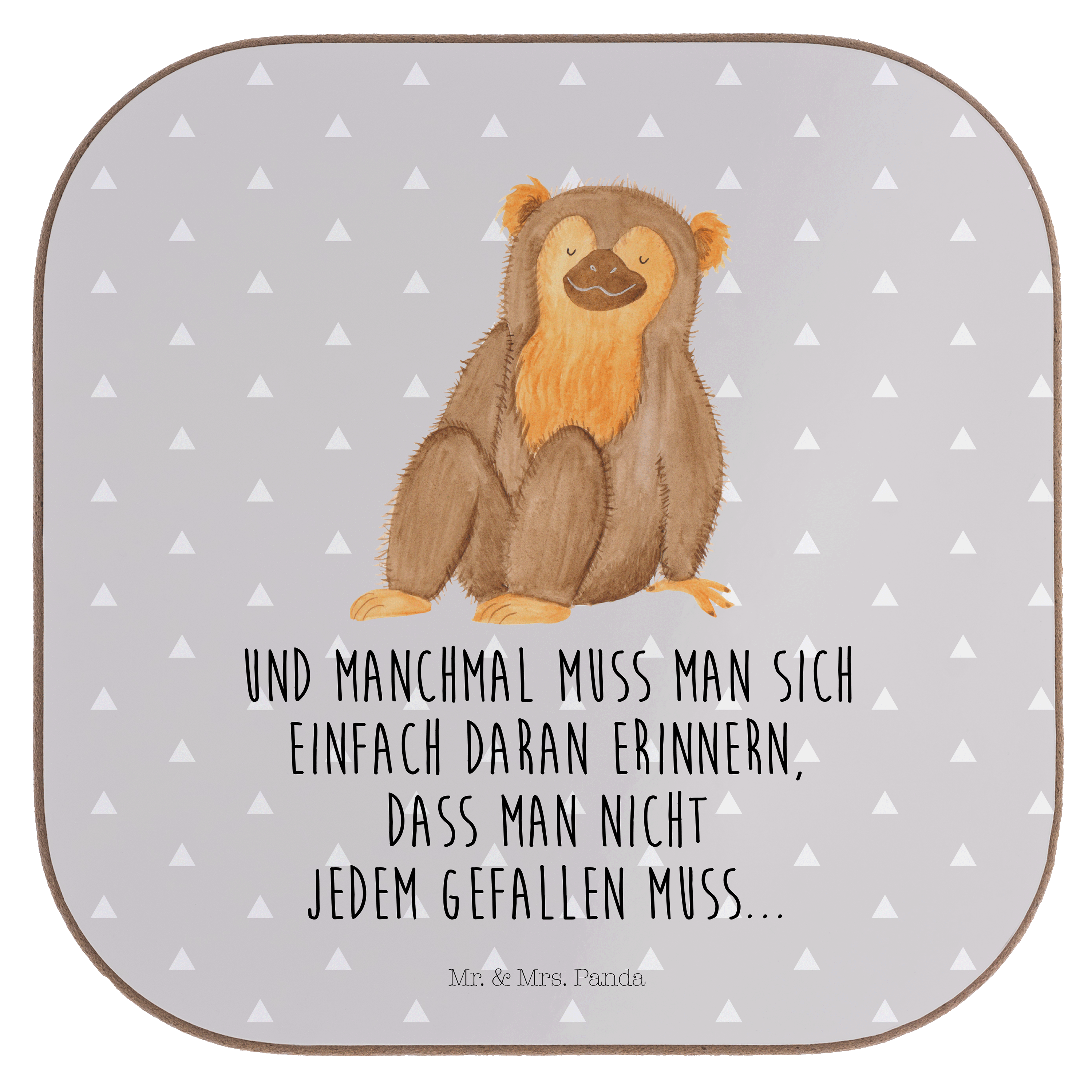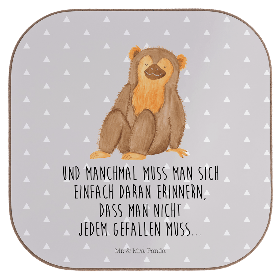 Quadratische Untersetzer Affe - mit Spruch - Grau Pastell