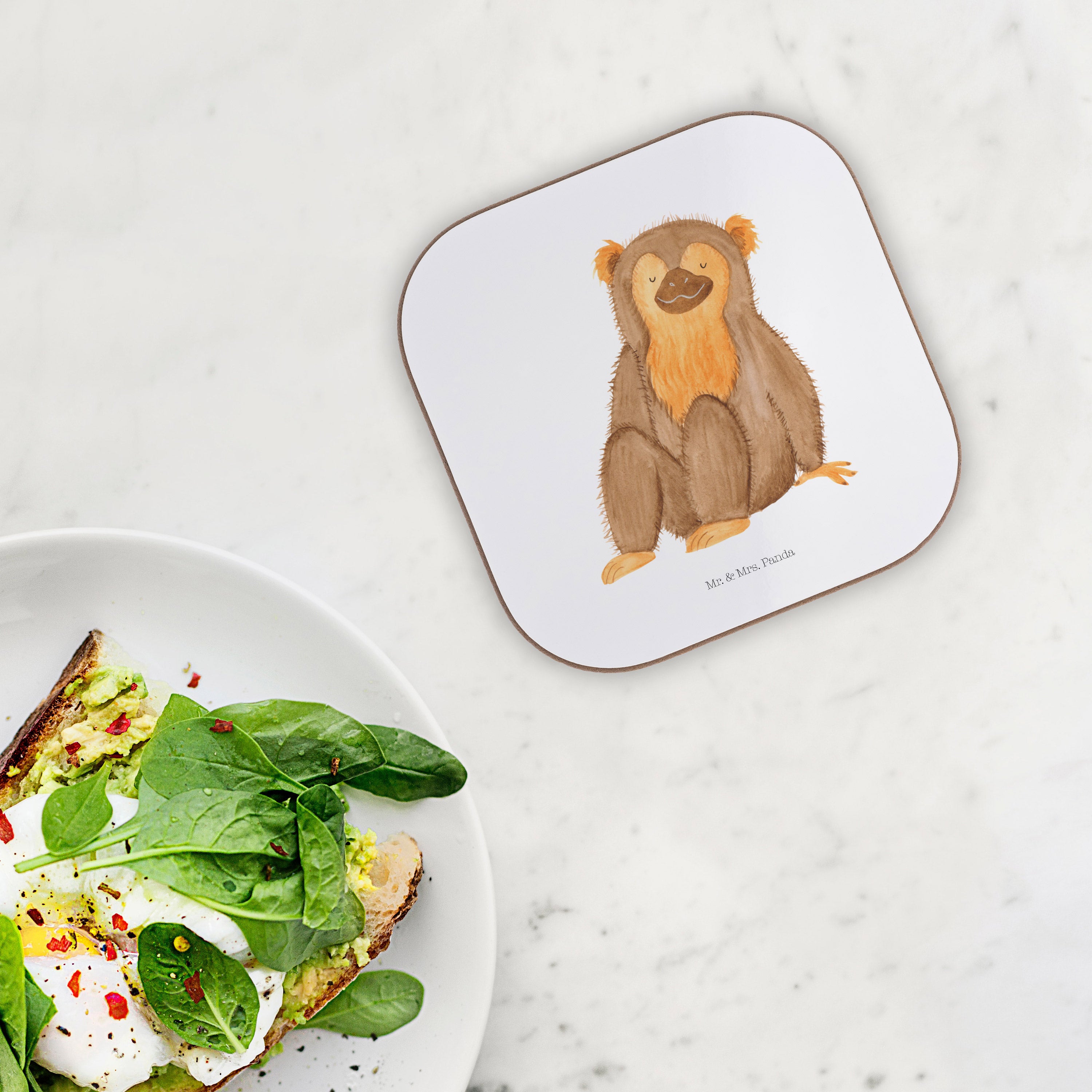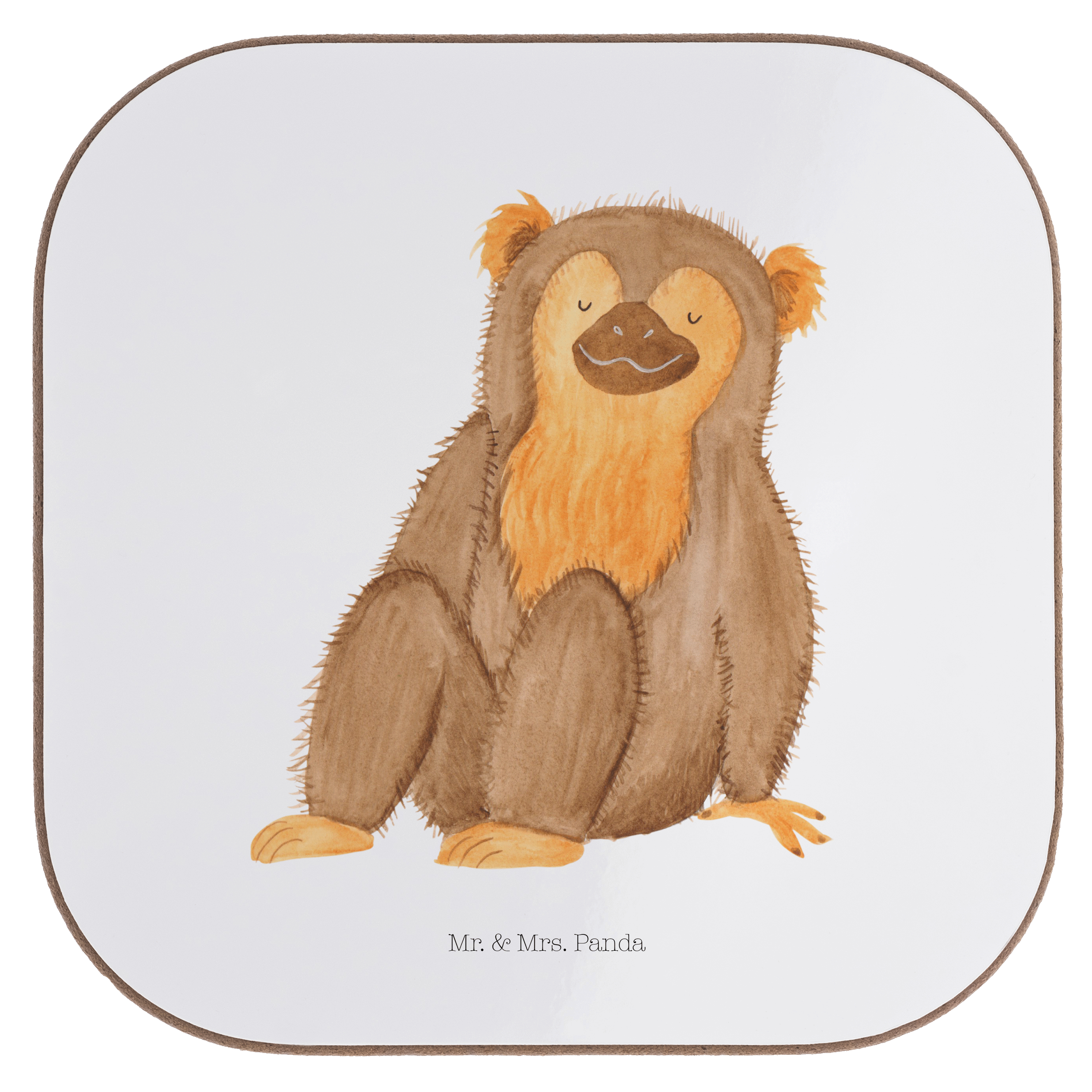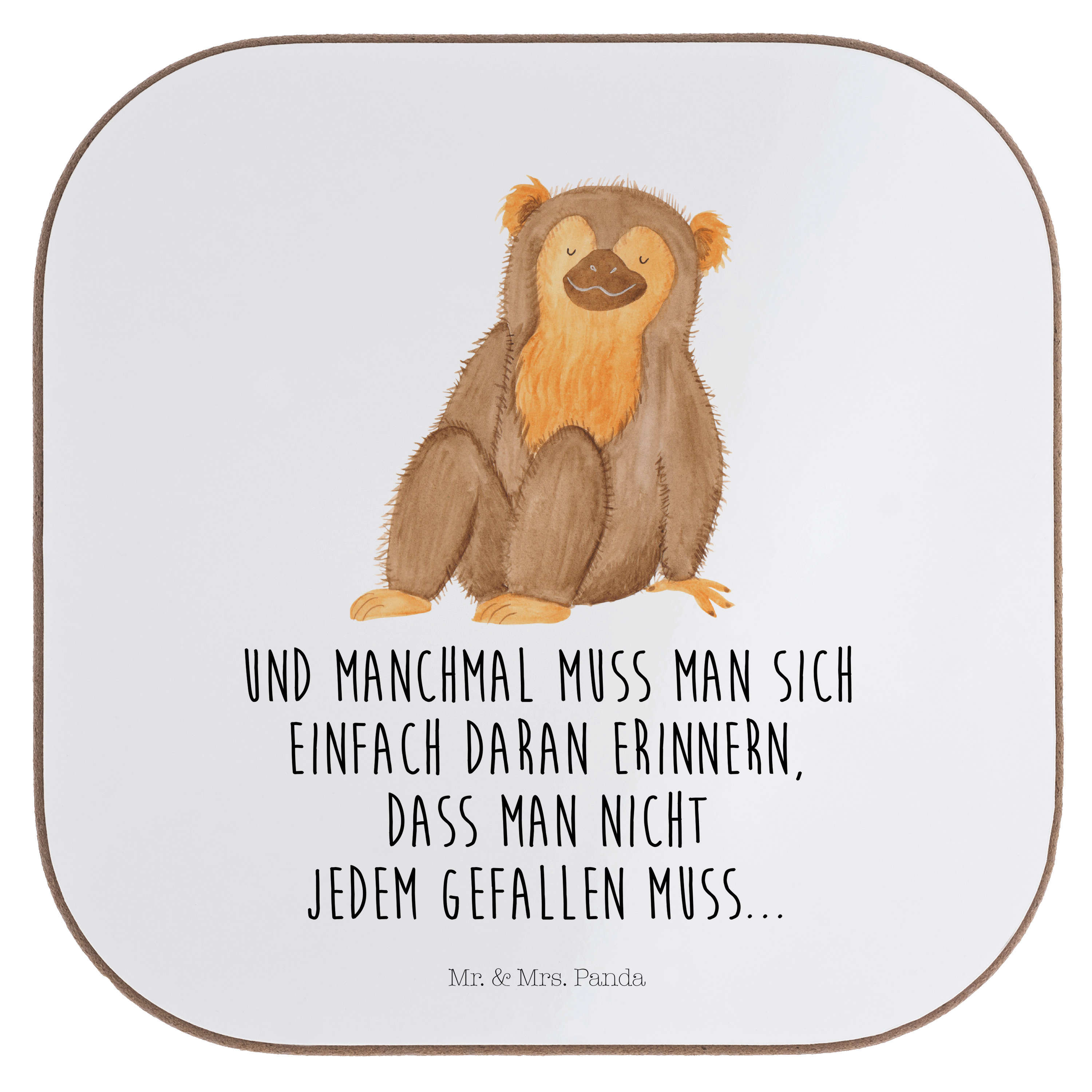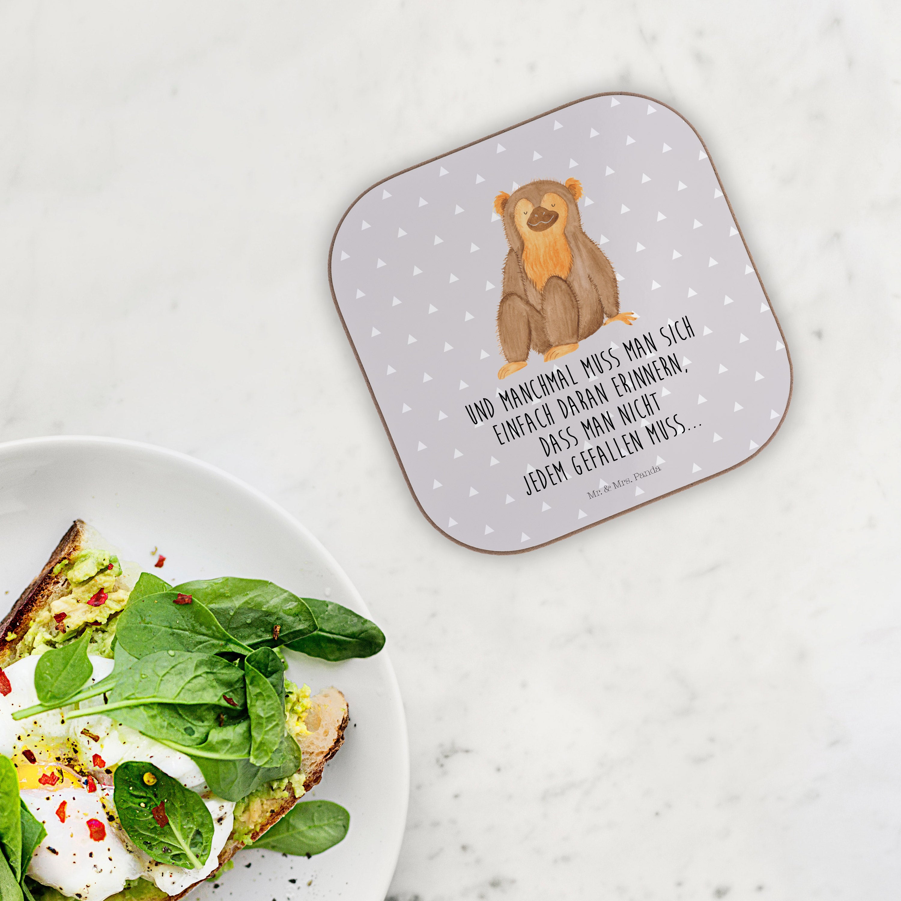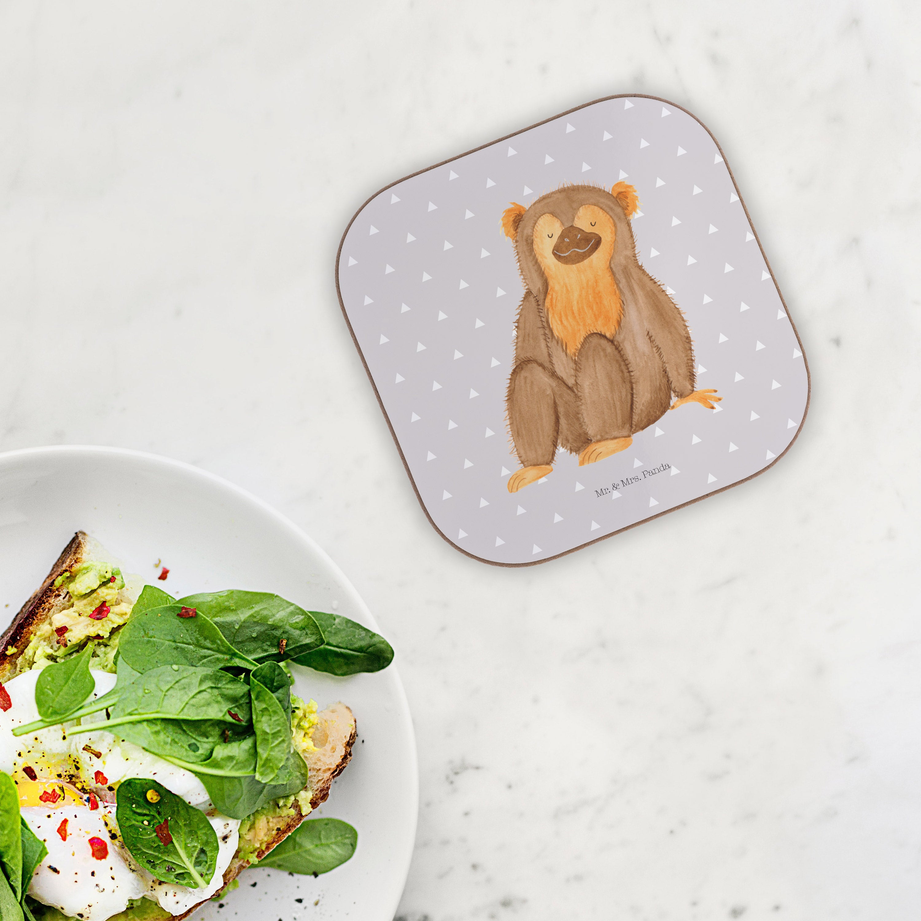 Quadratische Untersetzer Affe - mit Spruch - Grau Pastell