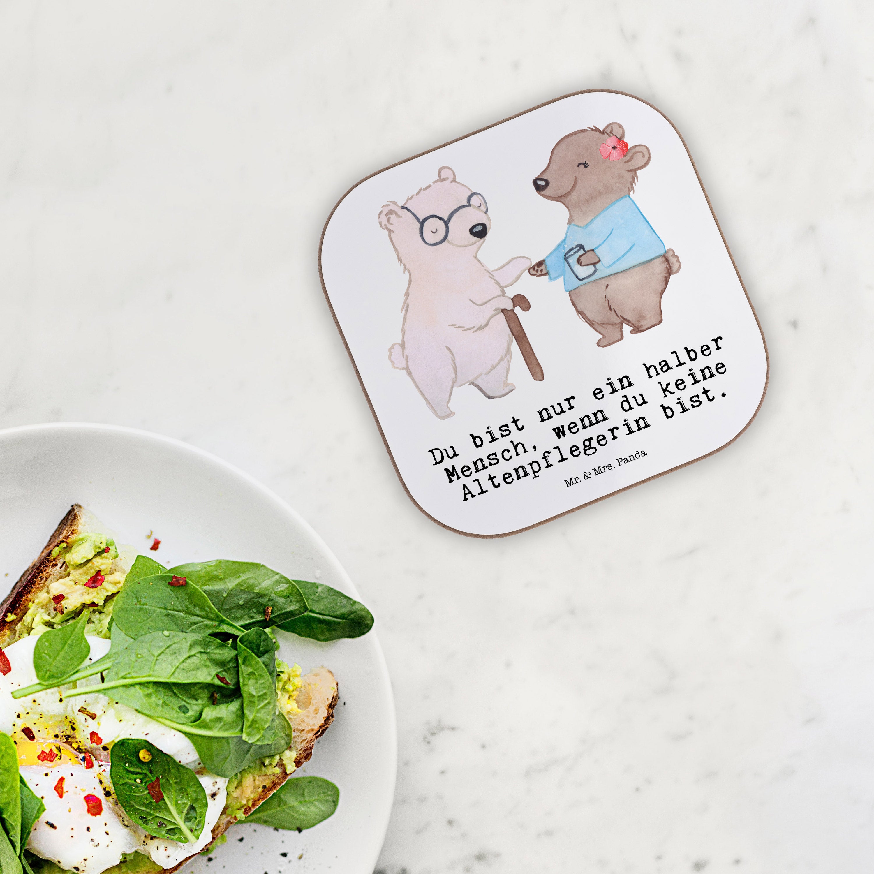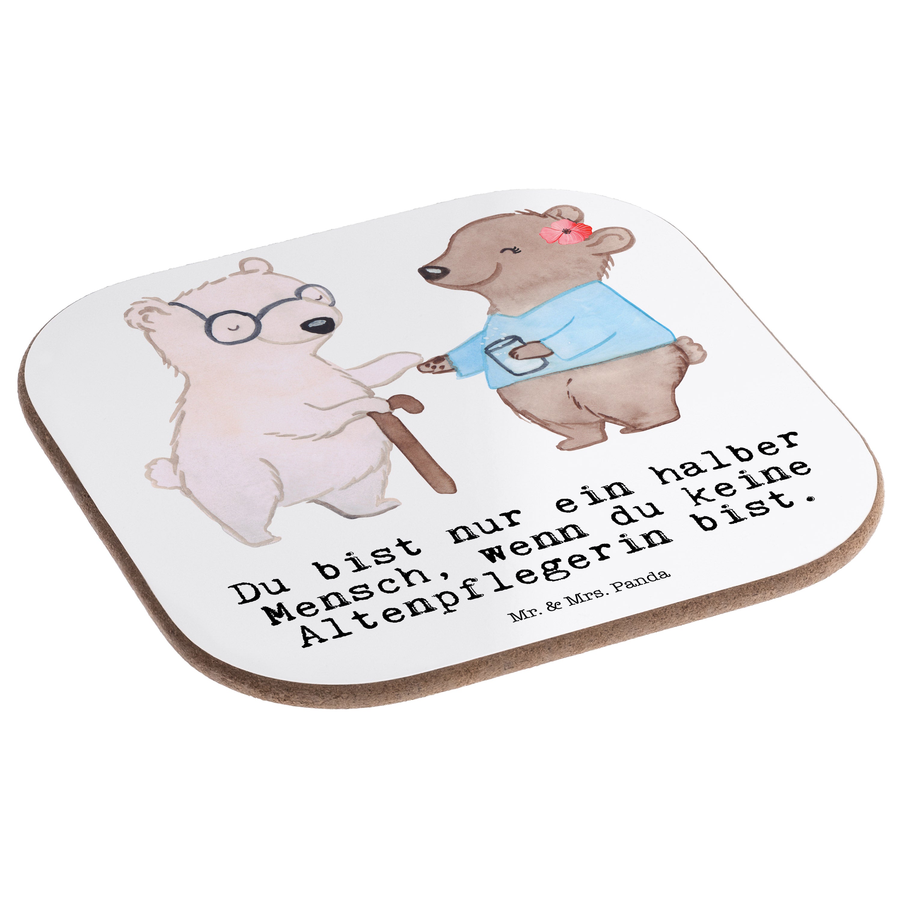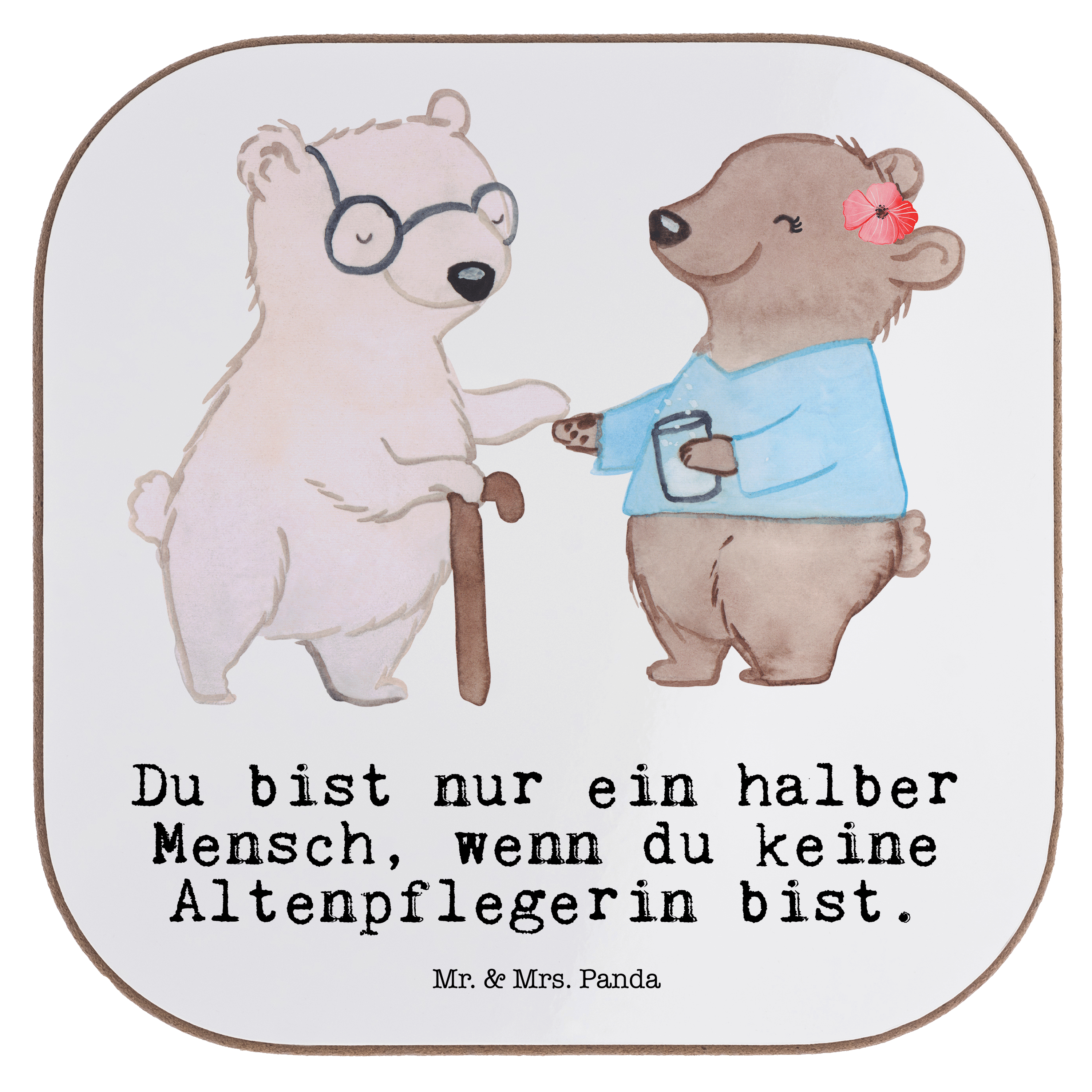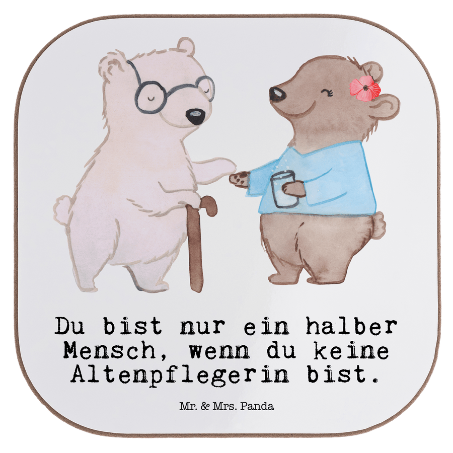 Quadratische Untersetzer Altenpflegerin mit Herz