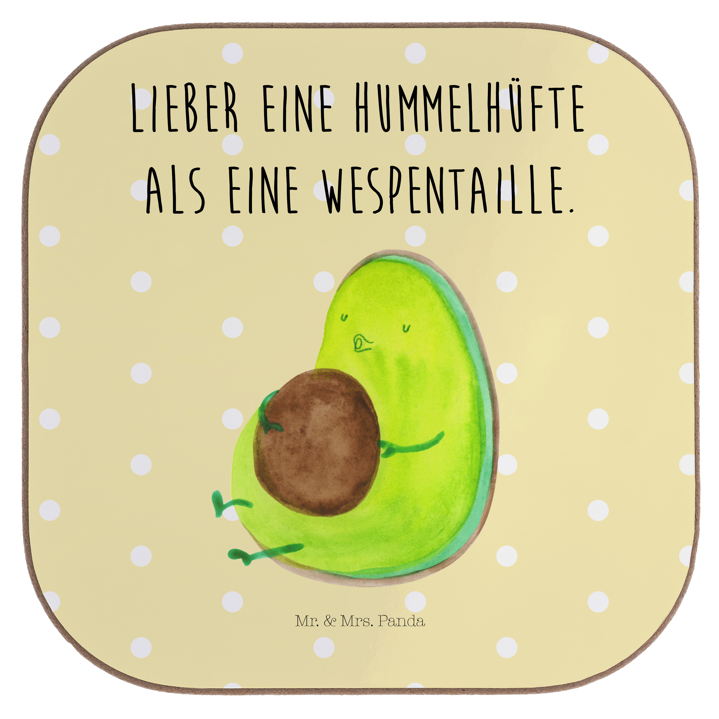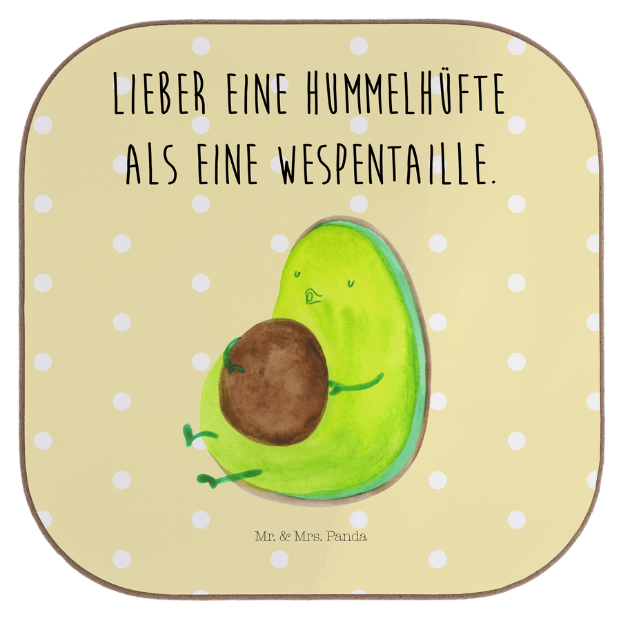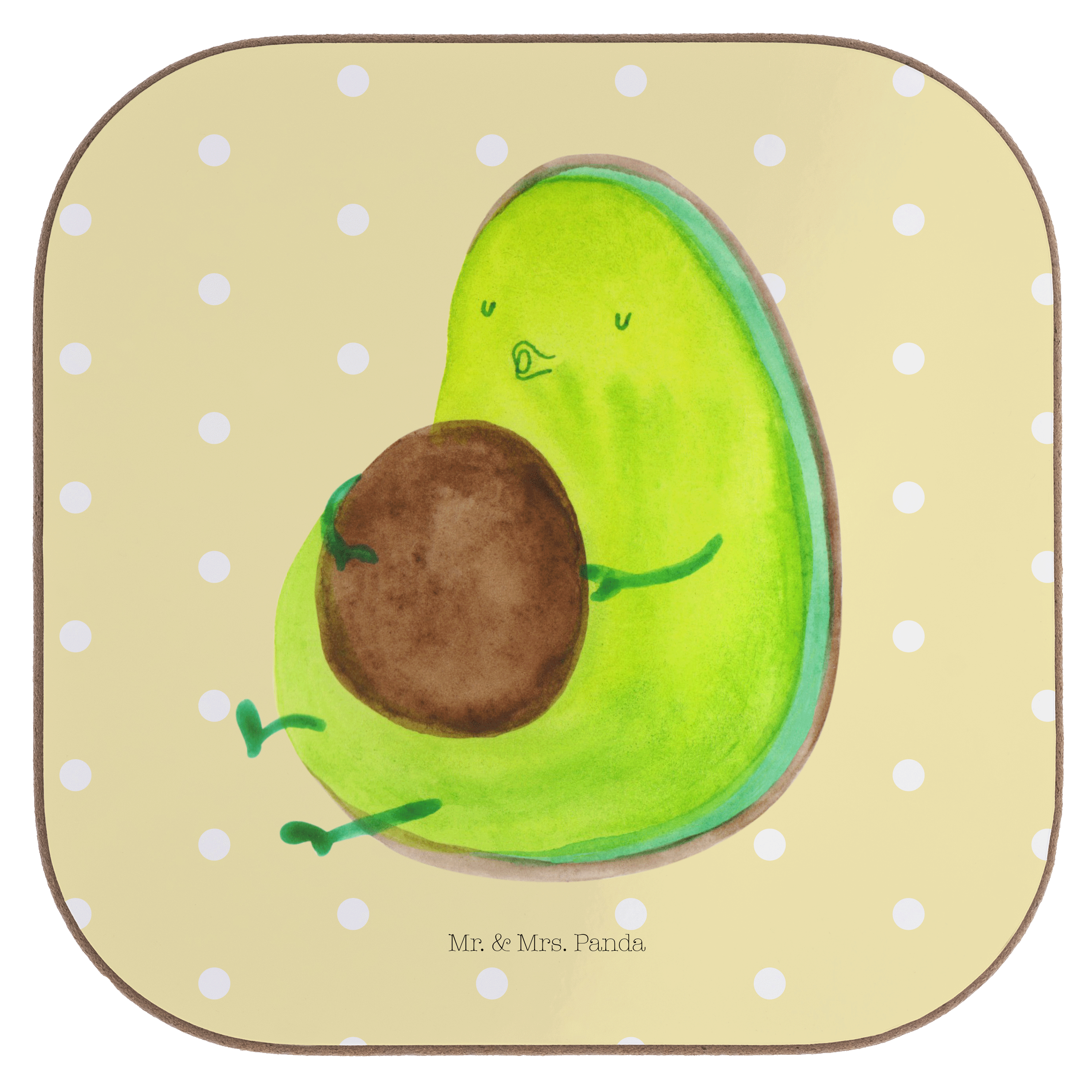 Quadratische Untersetzer Avocado pfeift - mit Spruch - Gelb Pastell