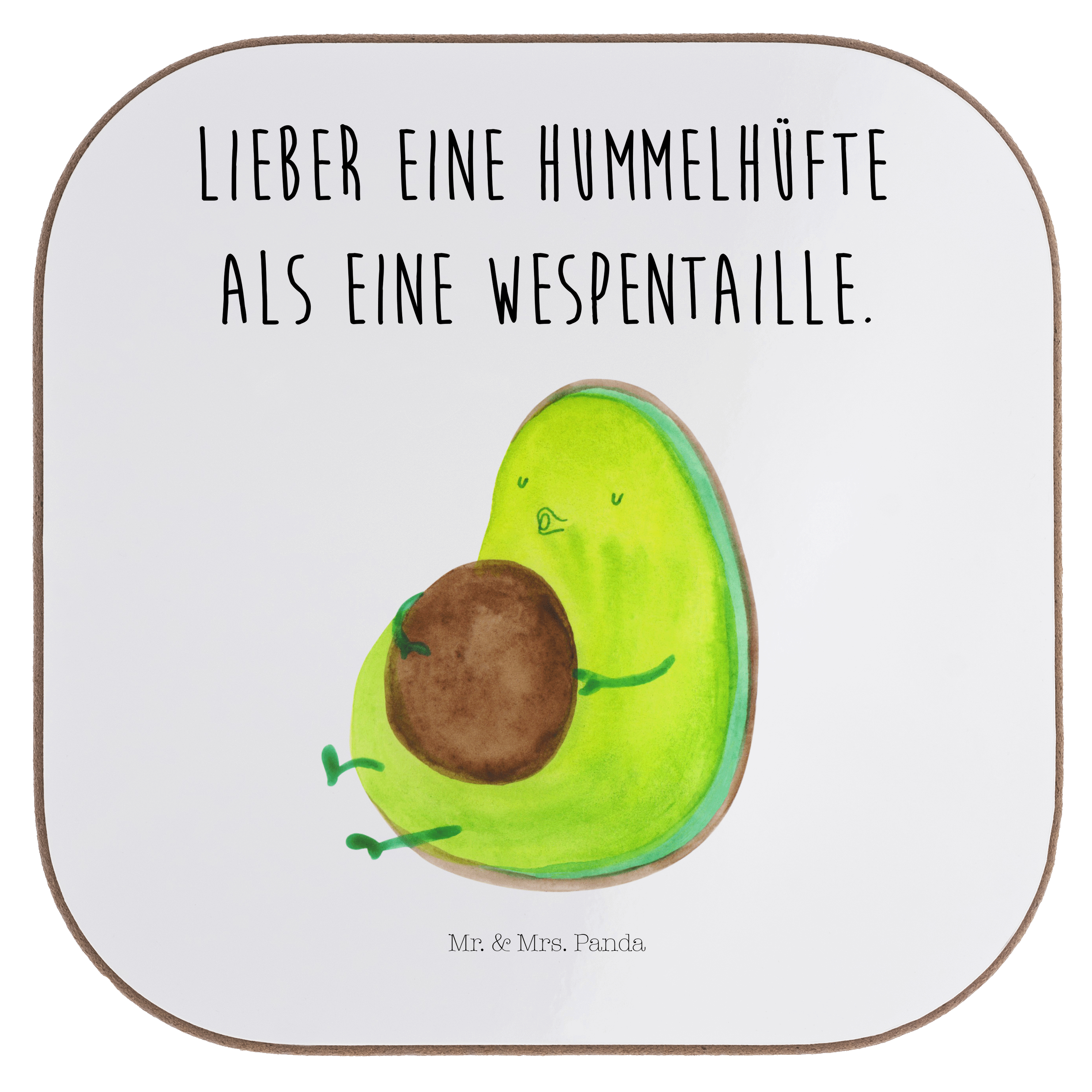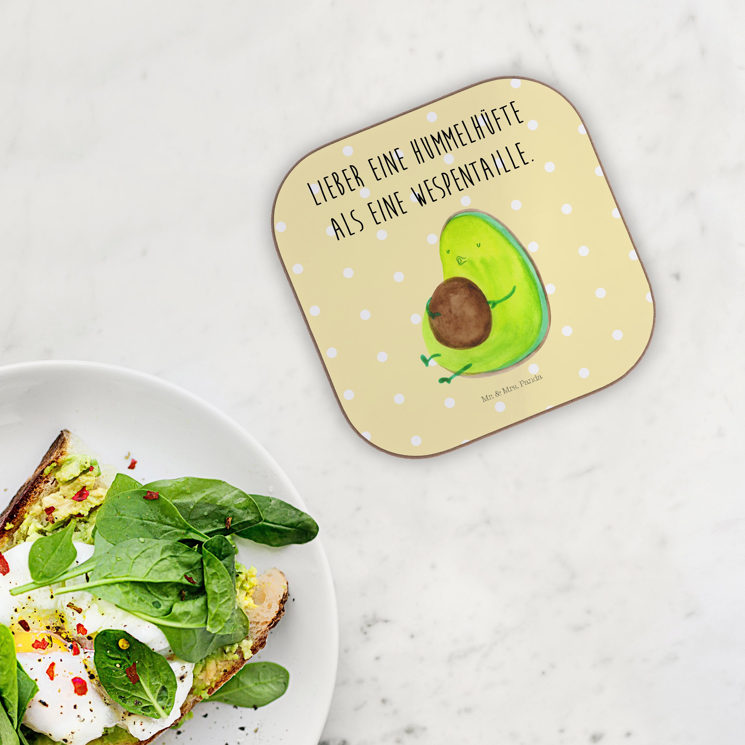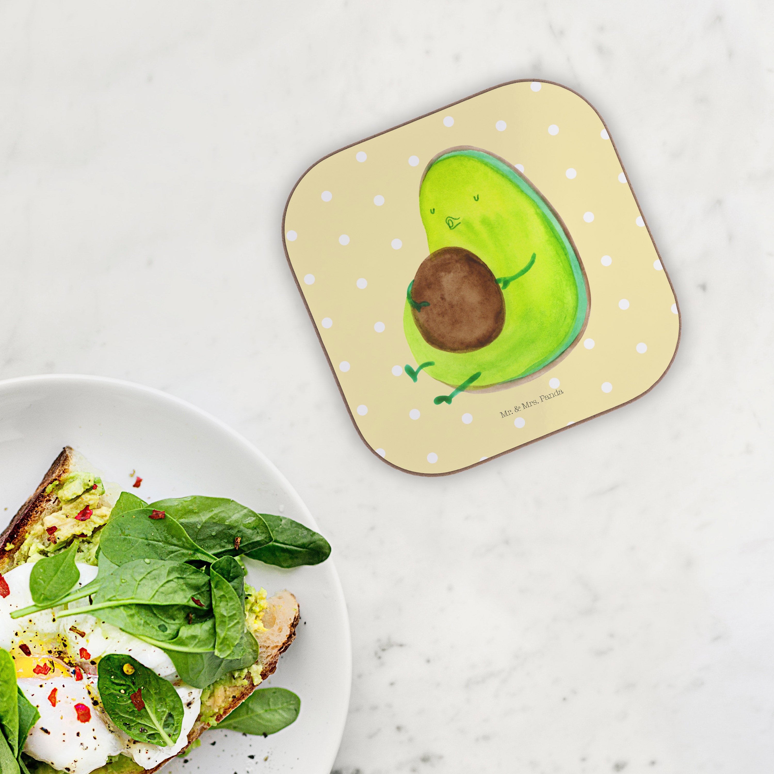 Quadratische Untersetzer Avocado pfeift - mit Spruch - Gelb Pastell