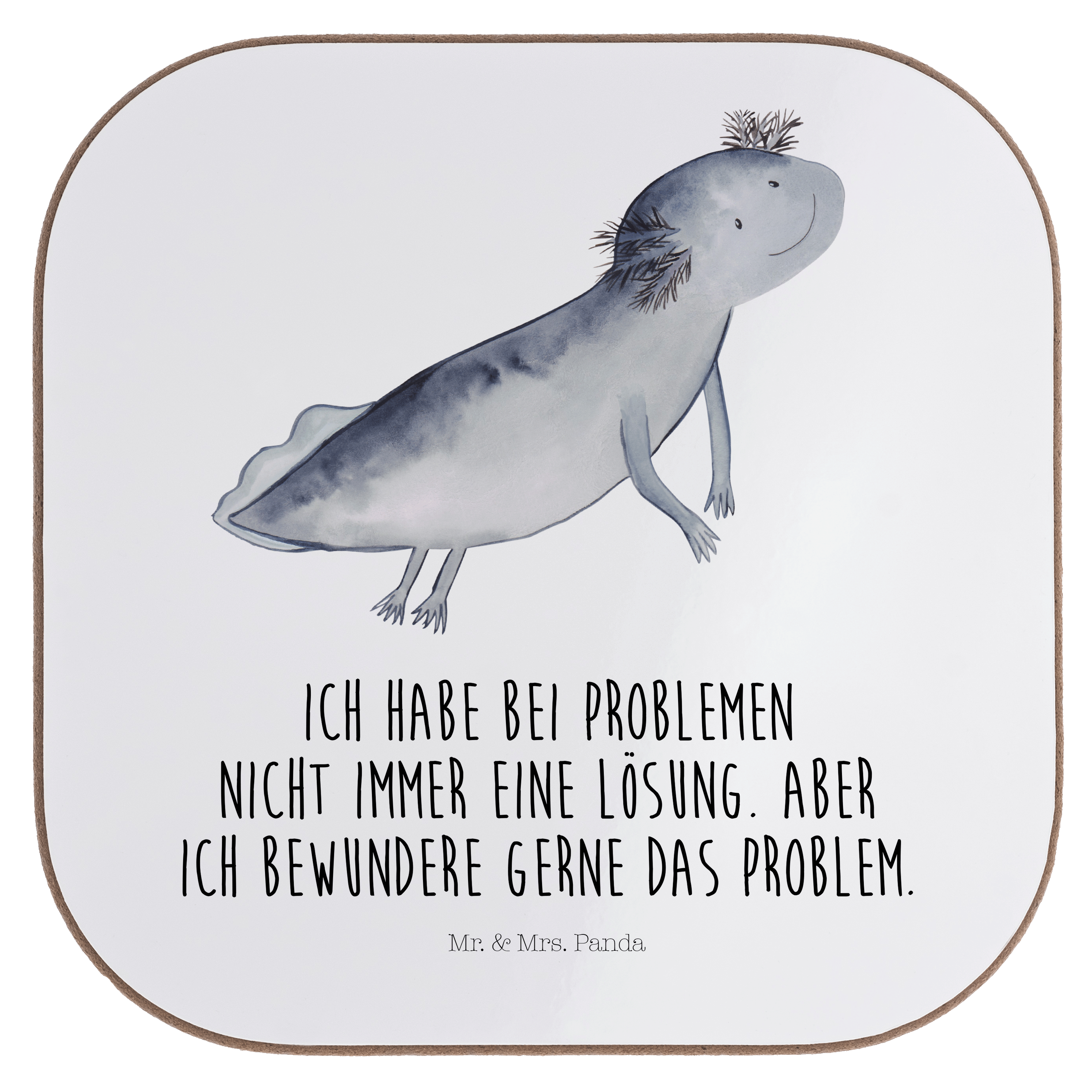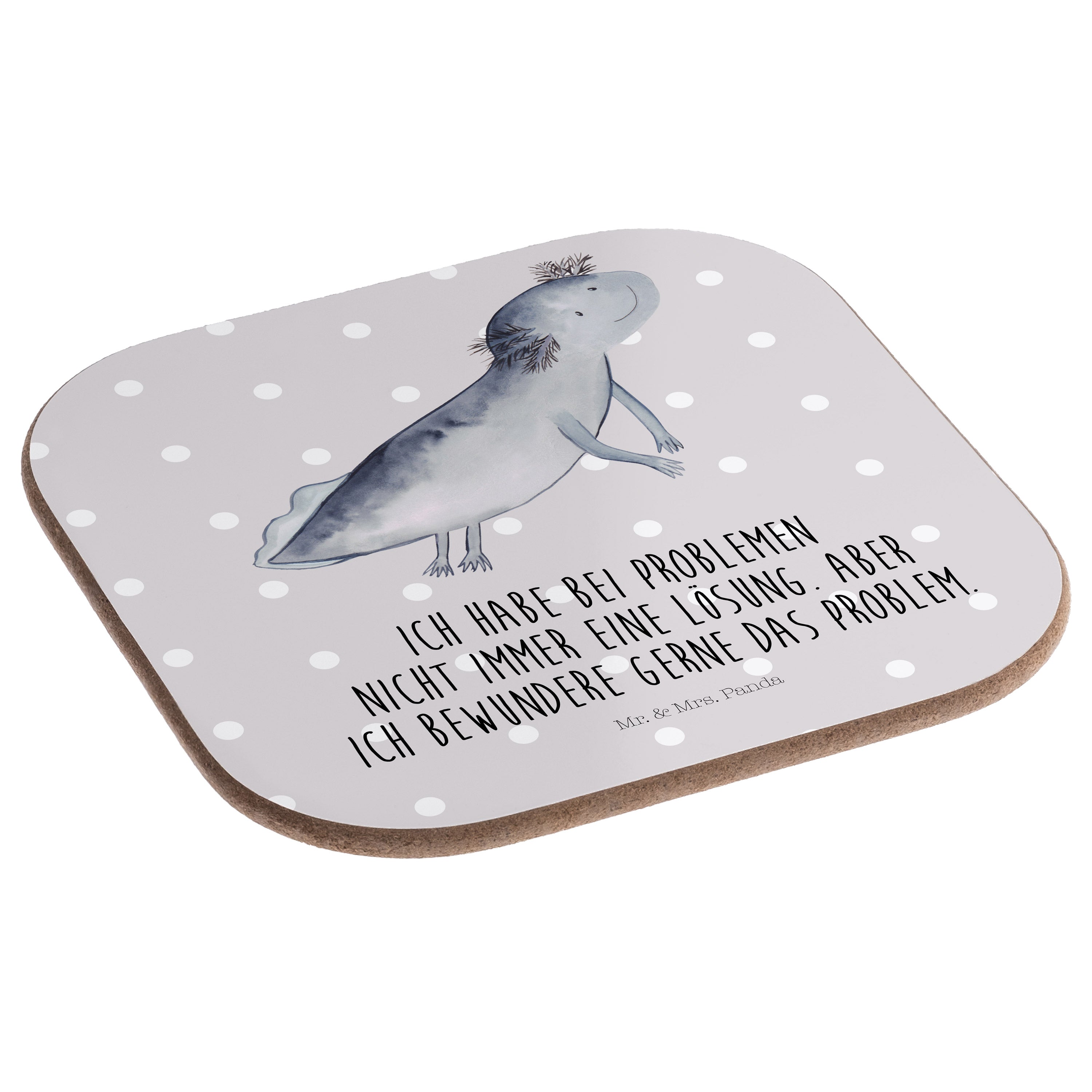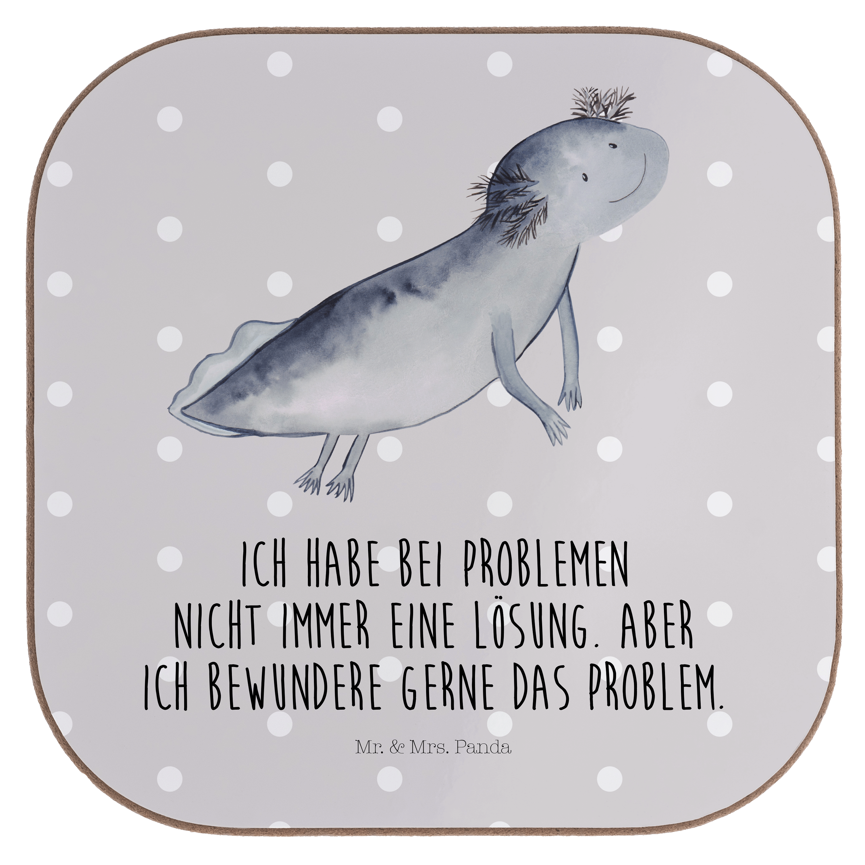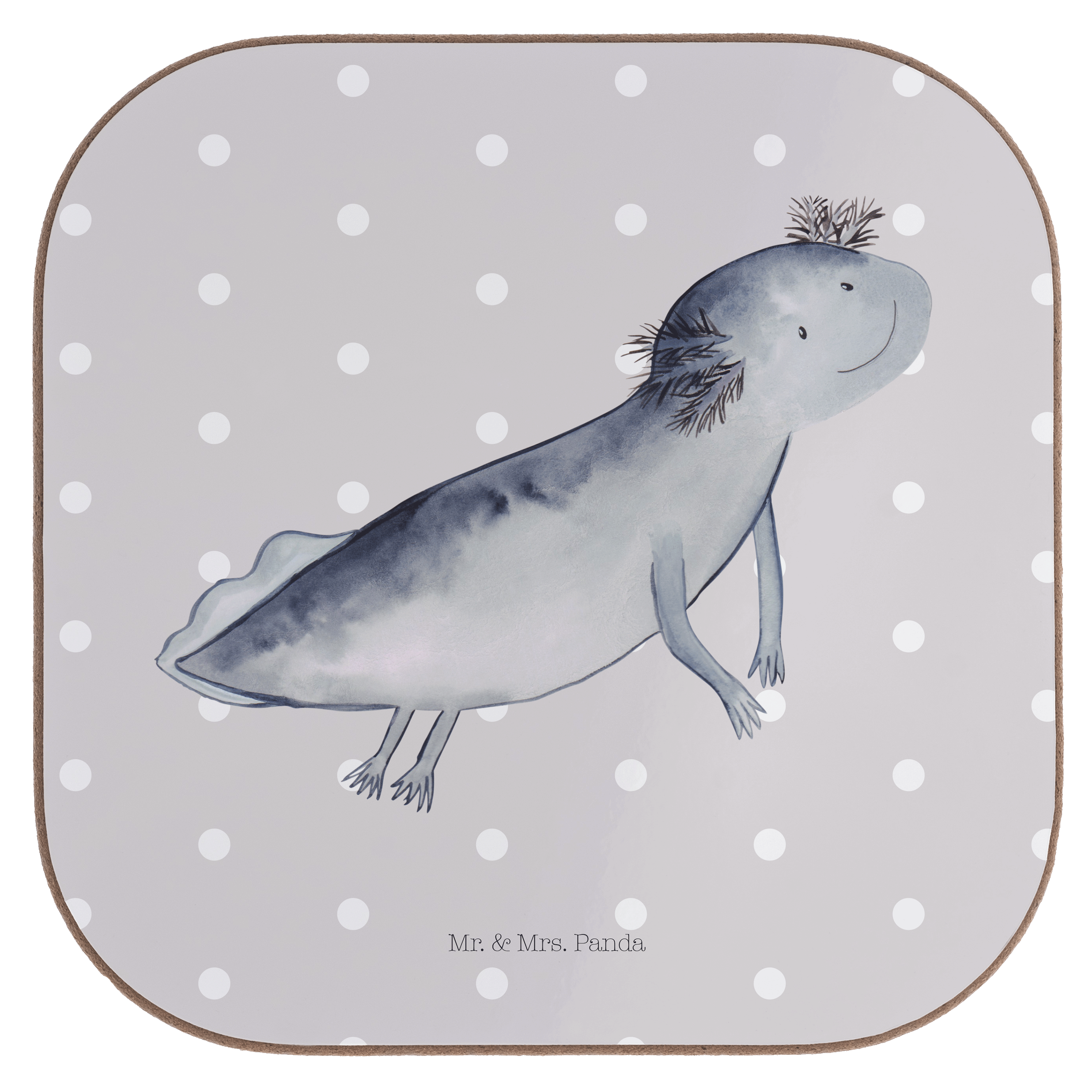 Quadratische Untersetzer Axolotl schwimmt - mit Spruch - Grau Pastell