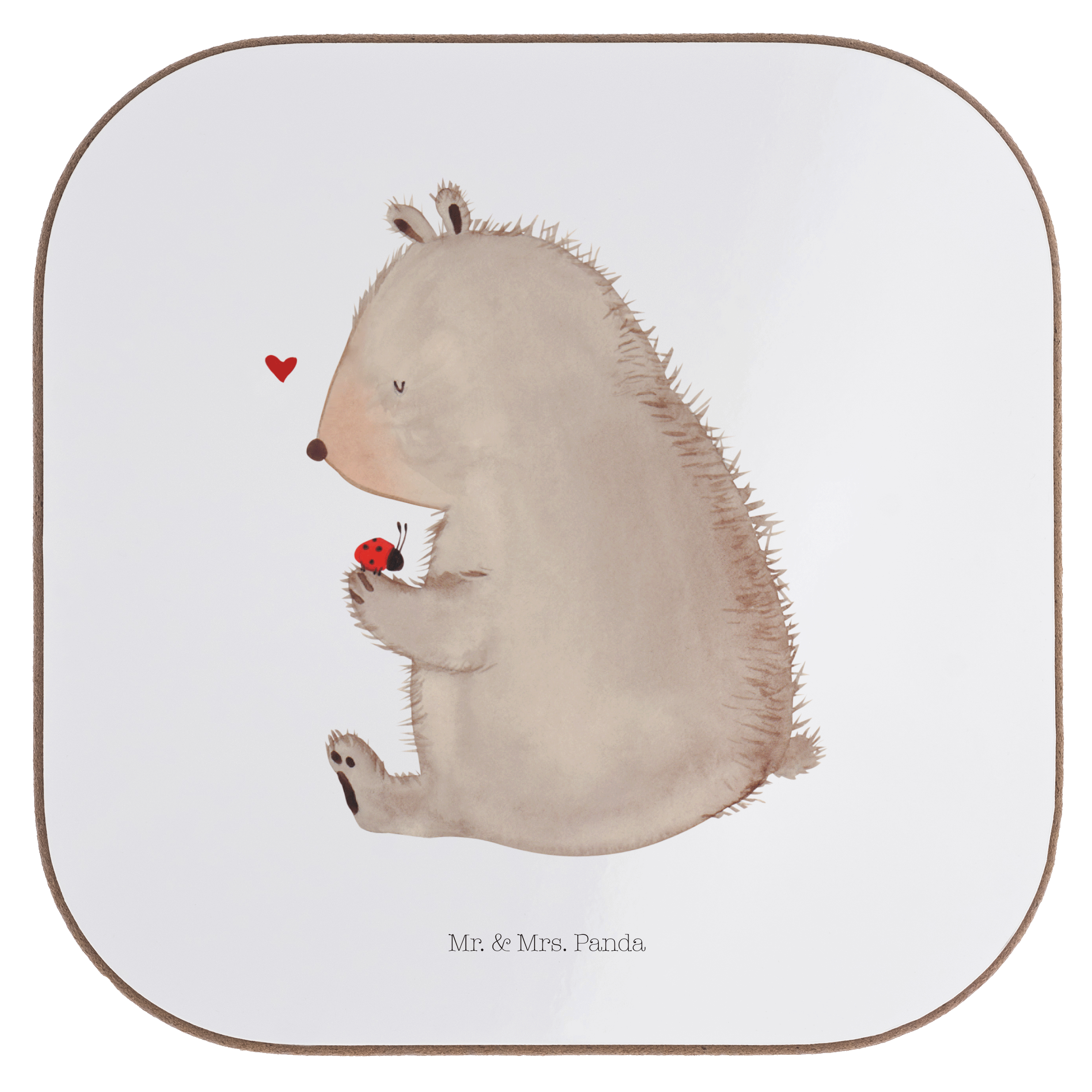 Quadratische Untersetzer Bär mit Marienkäfer - mit Spruch