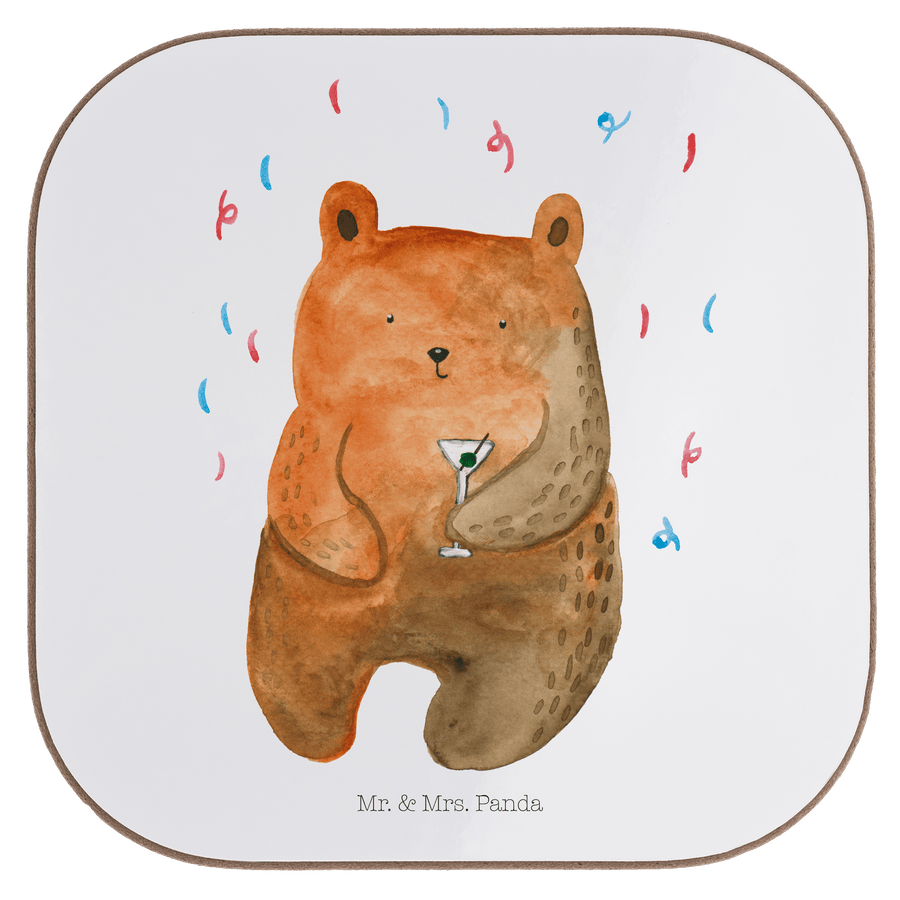 Quadratische Untersetzer Bär Party - ohne Spruch - Weiß
