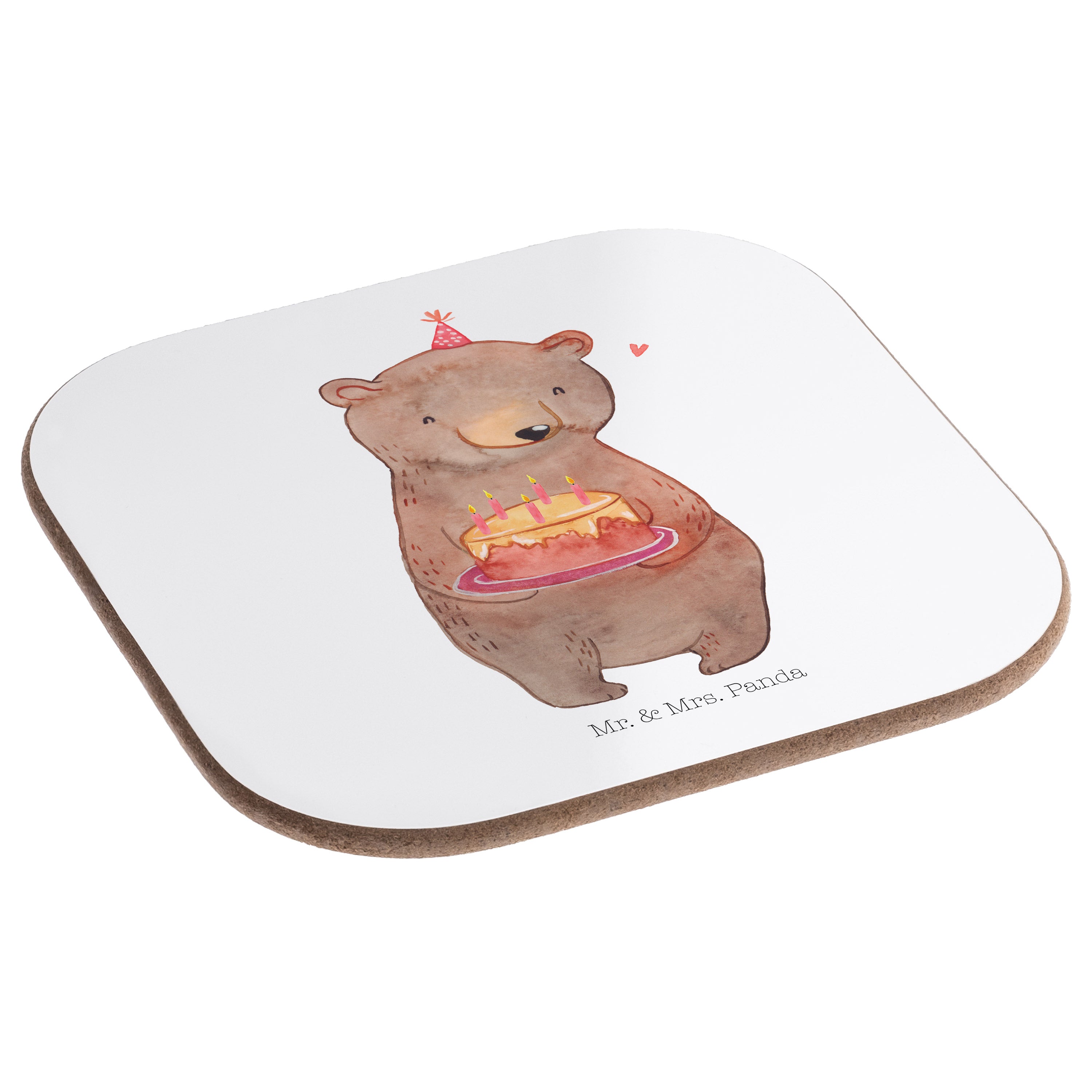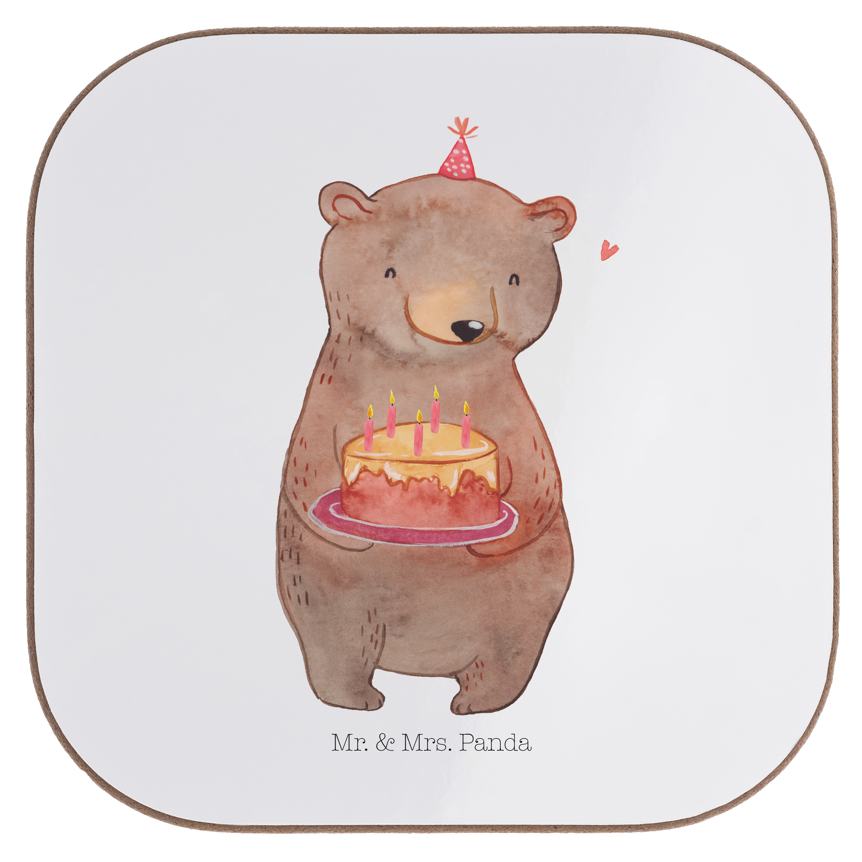 Quadratische Untersetzer Bär Torte - mit Spruch