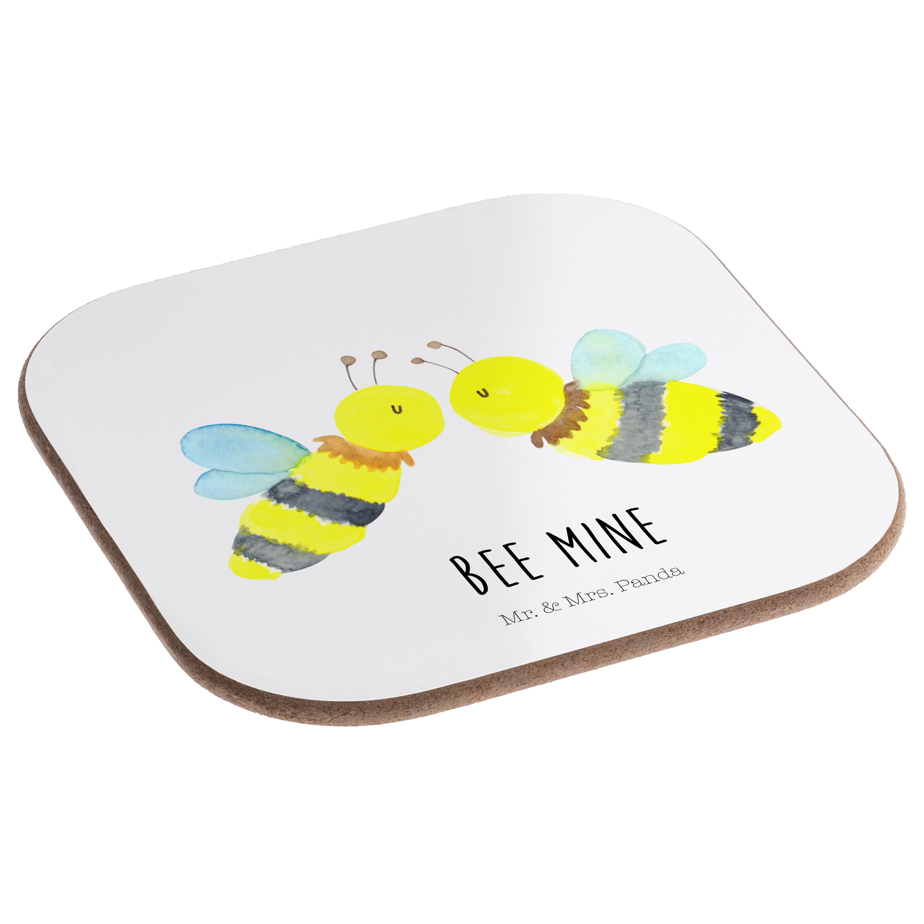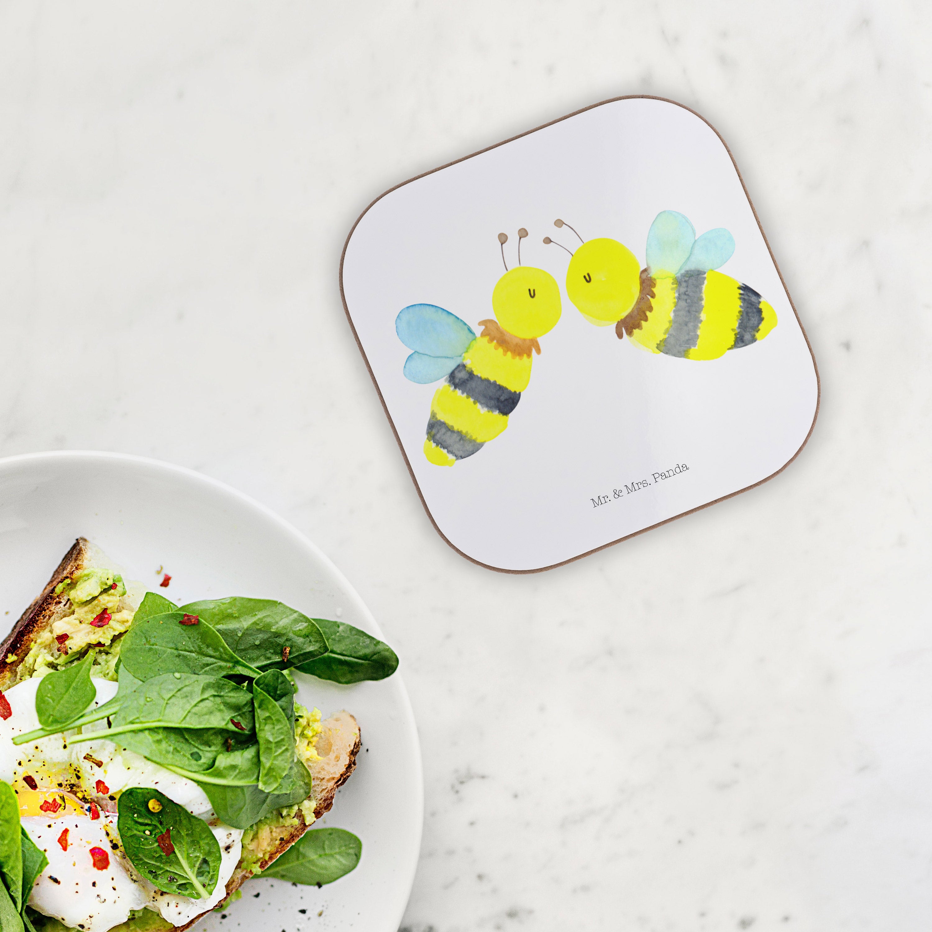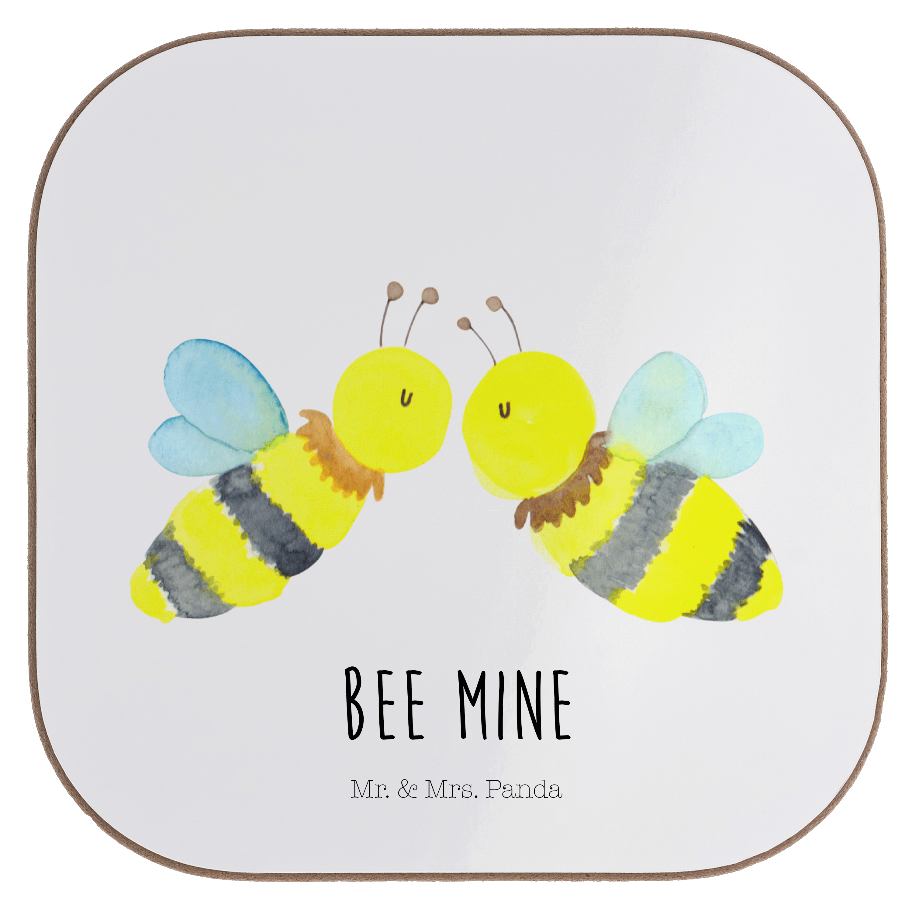Quadratische Untersetzer Biene Liebe - mit Spruch