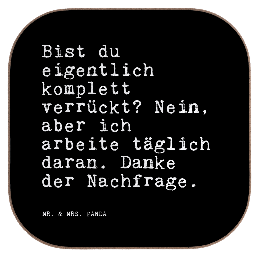 Quadratische Untersetzer Sprüche und Zitate Bist du eigentlich komplett verrückt? Nein, aber ich arbeite täglich daran. Danke der Nachfrage.