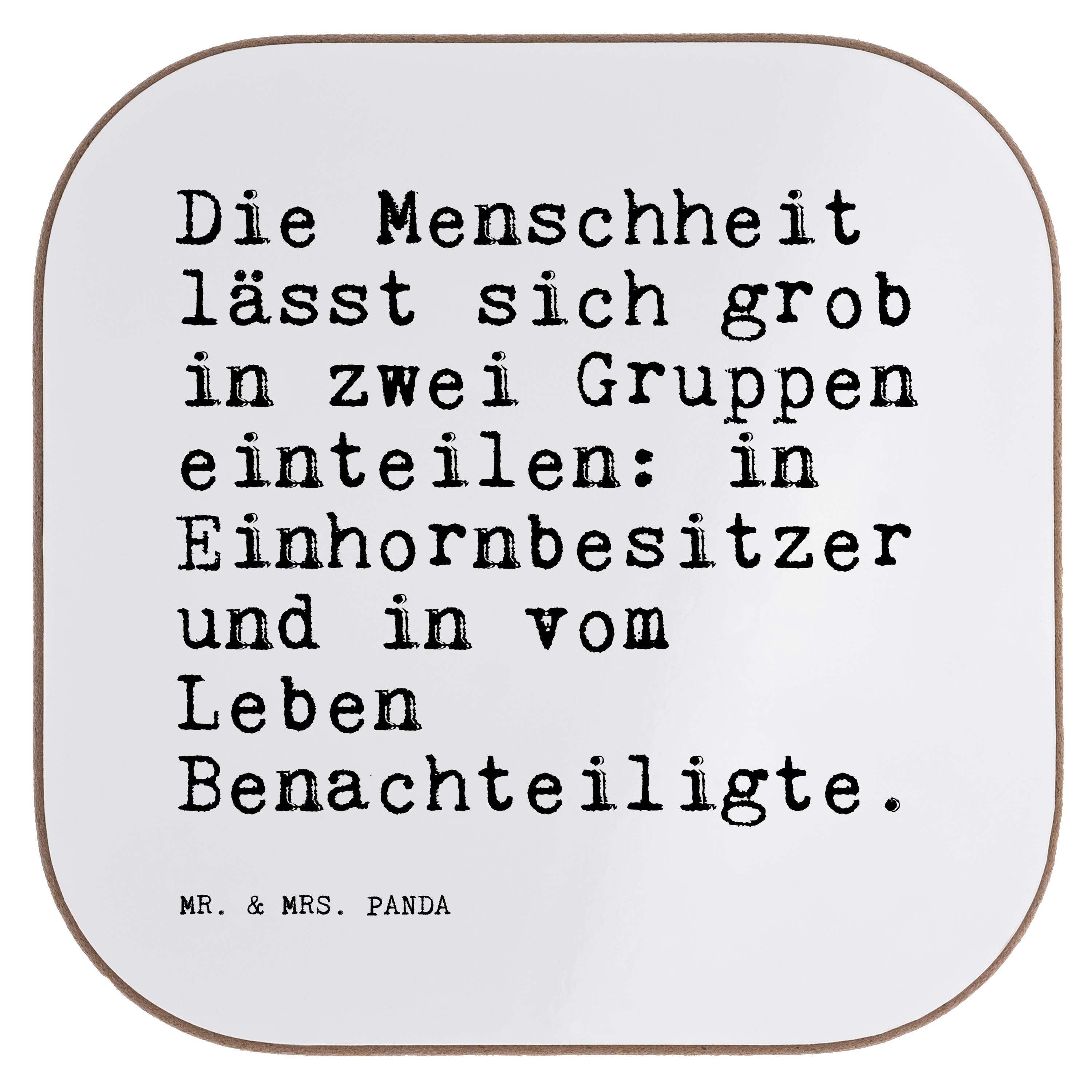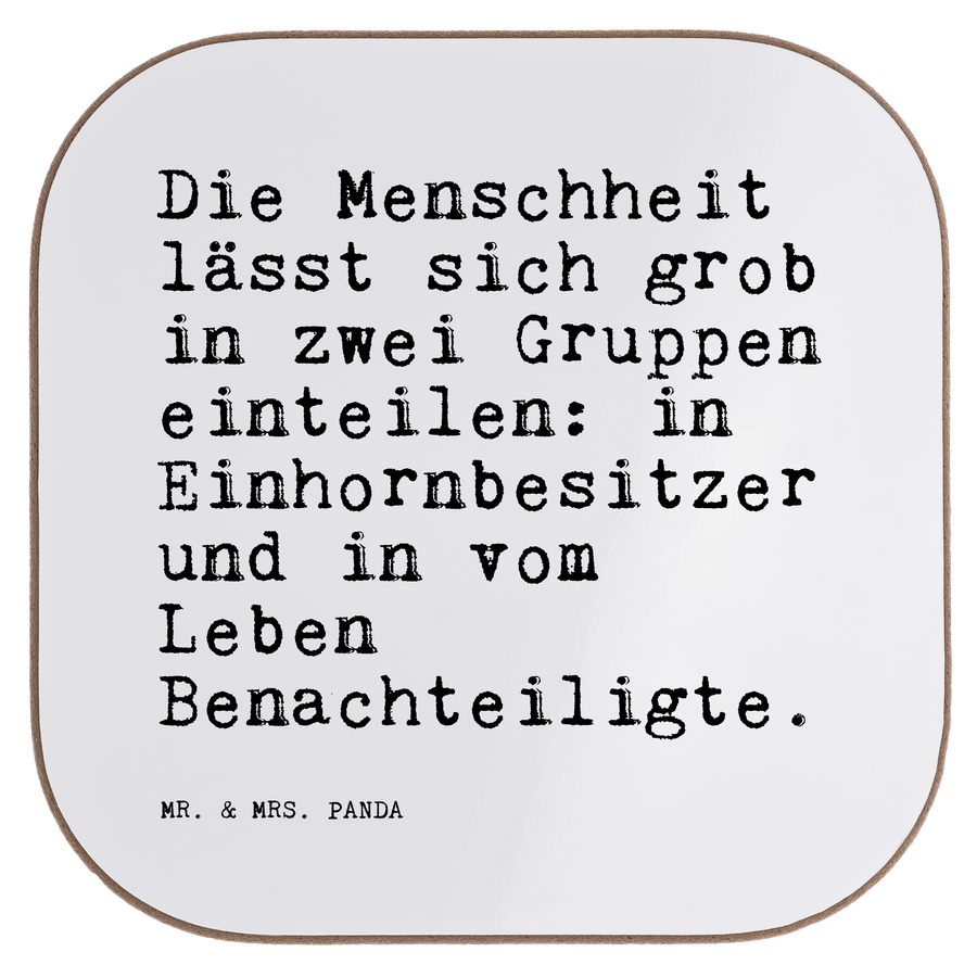 Quadratische Untersetzer Sprüche und Zitate Die Menschheit lässt sich grob in zwei Gruppen einteilen: in Einhornbesitzer und in vom Leben Benachteiligte.