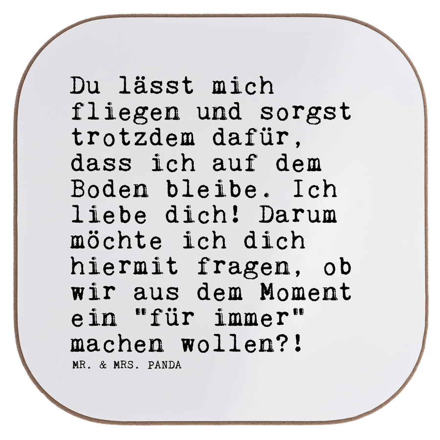 Quadratische Untersetzer Sprüche und Zitate Du lässt mich fliegen und sorgst trotzdem dafür, dass ich auf dem Boden bleibe. Ich liebe dich! Darum möchte ich dich hiermit fragen, ob wir aus dem Moment ein "für immer" machen wollen?!