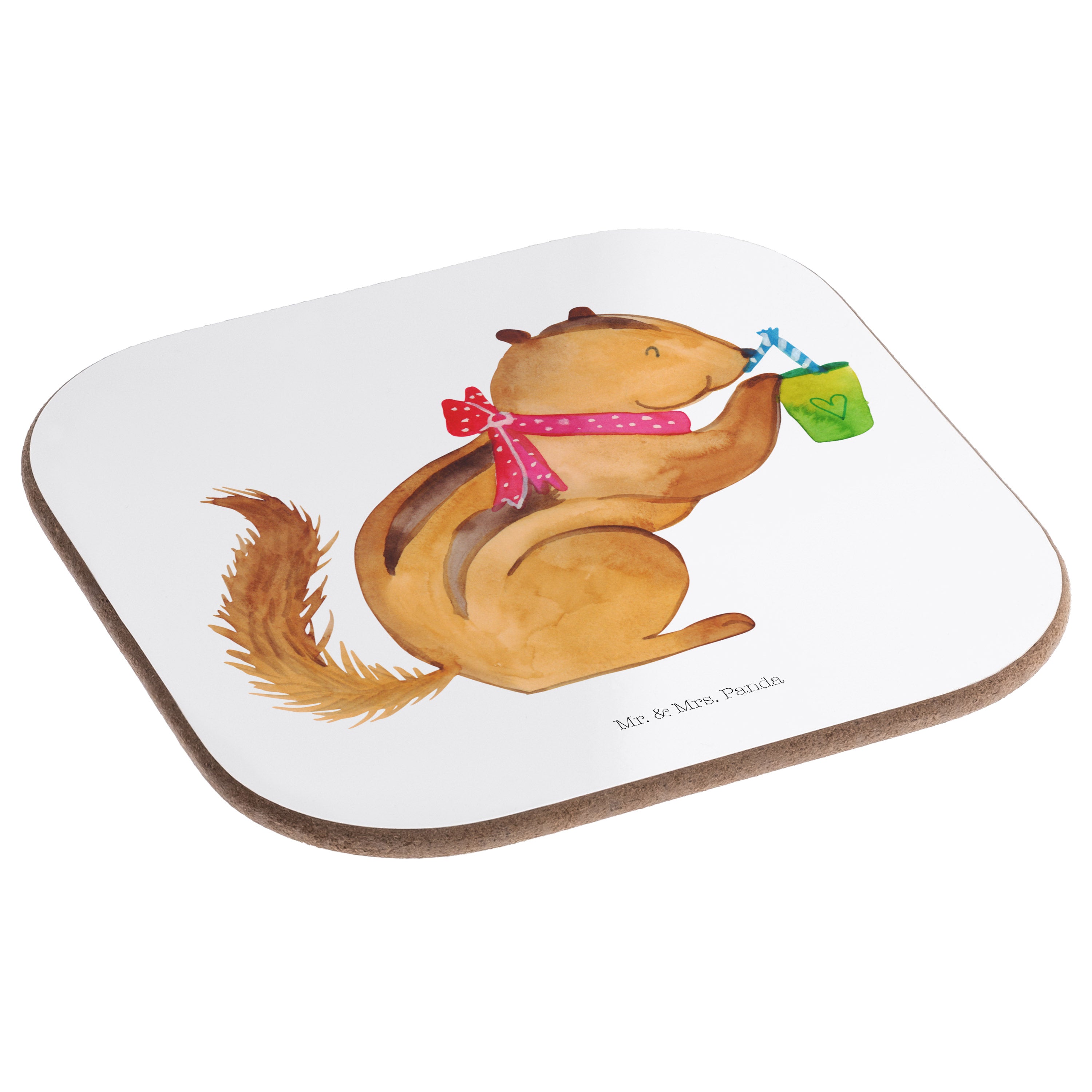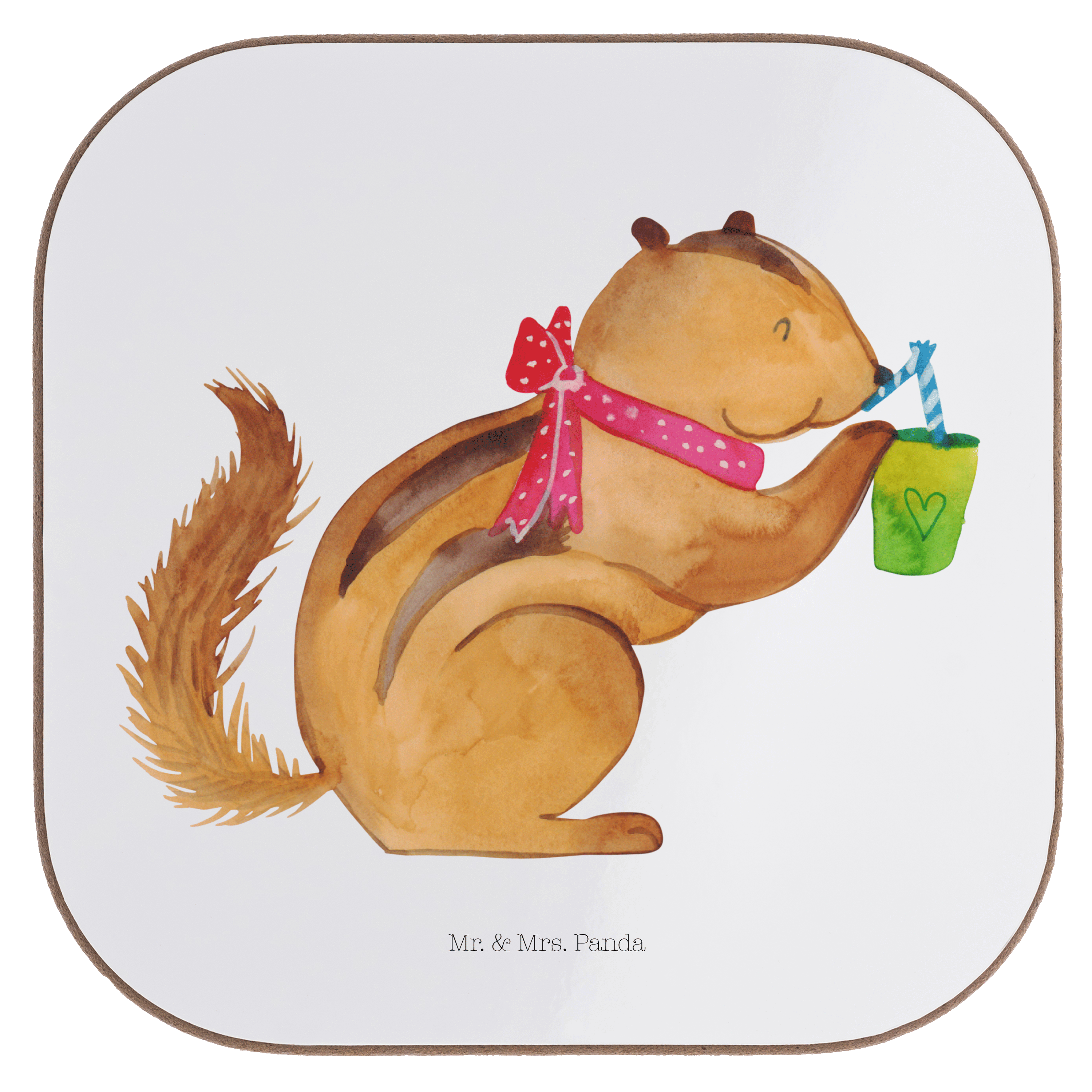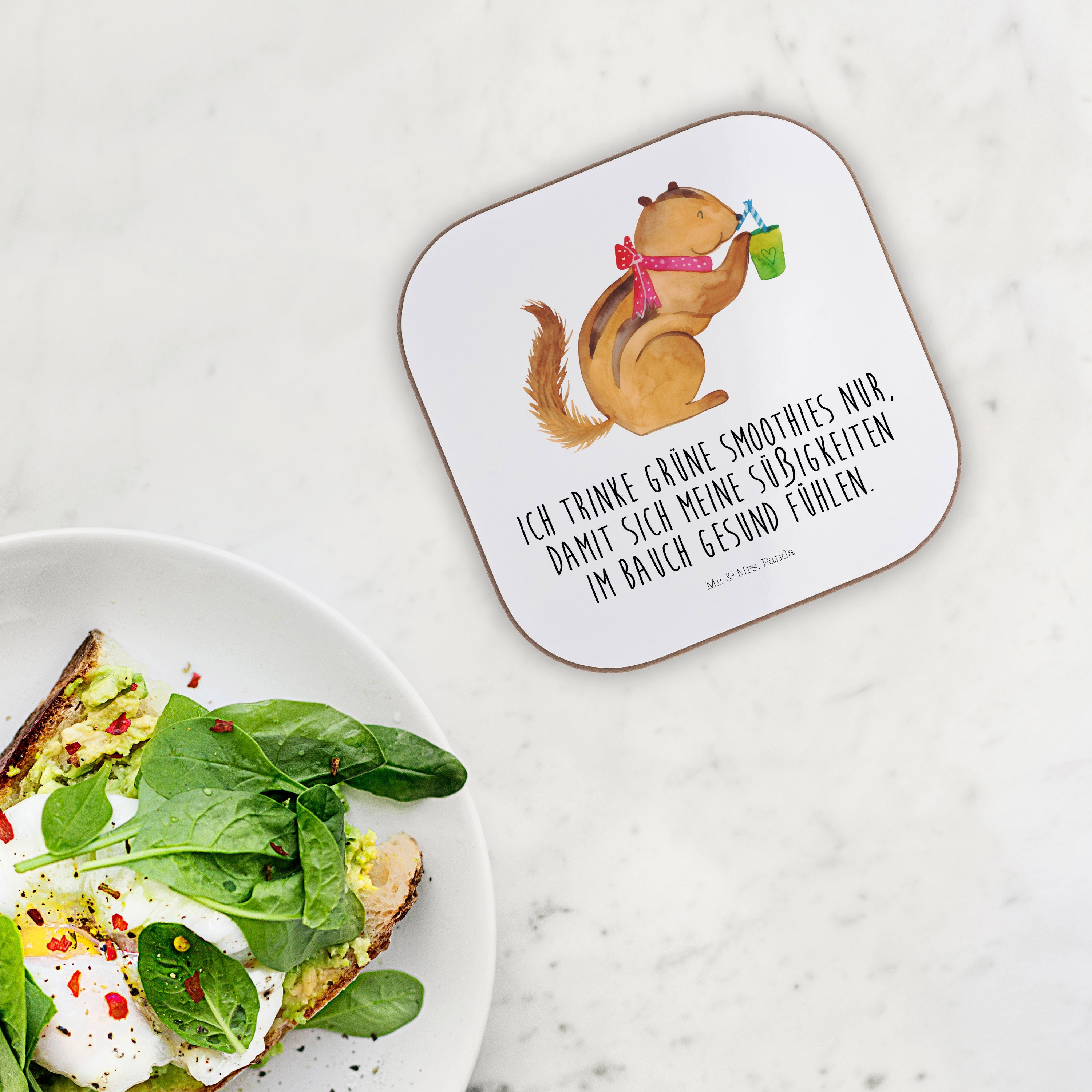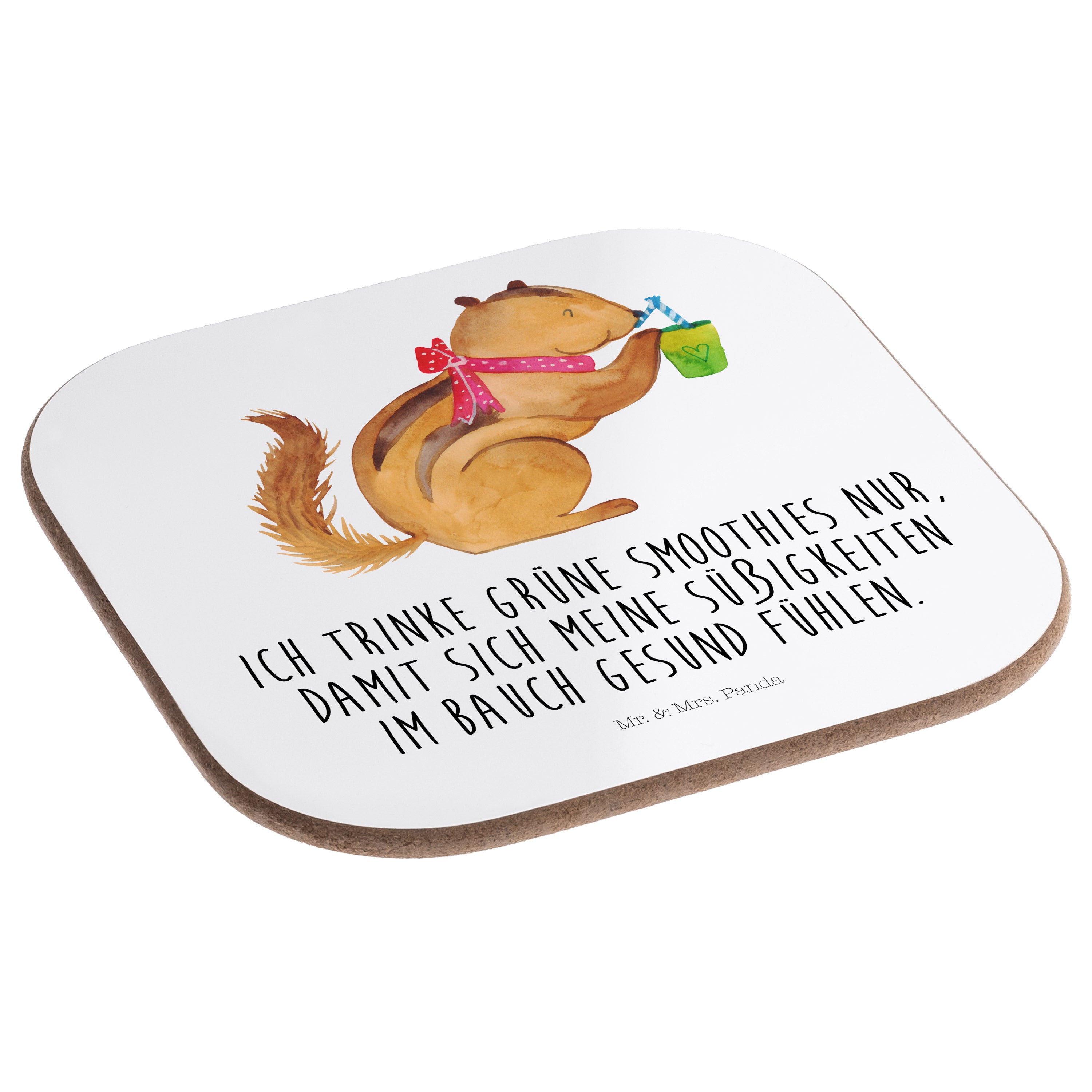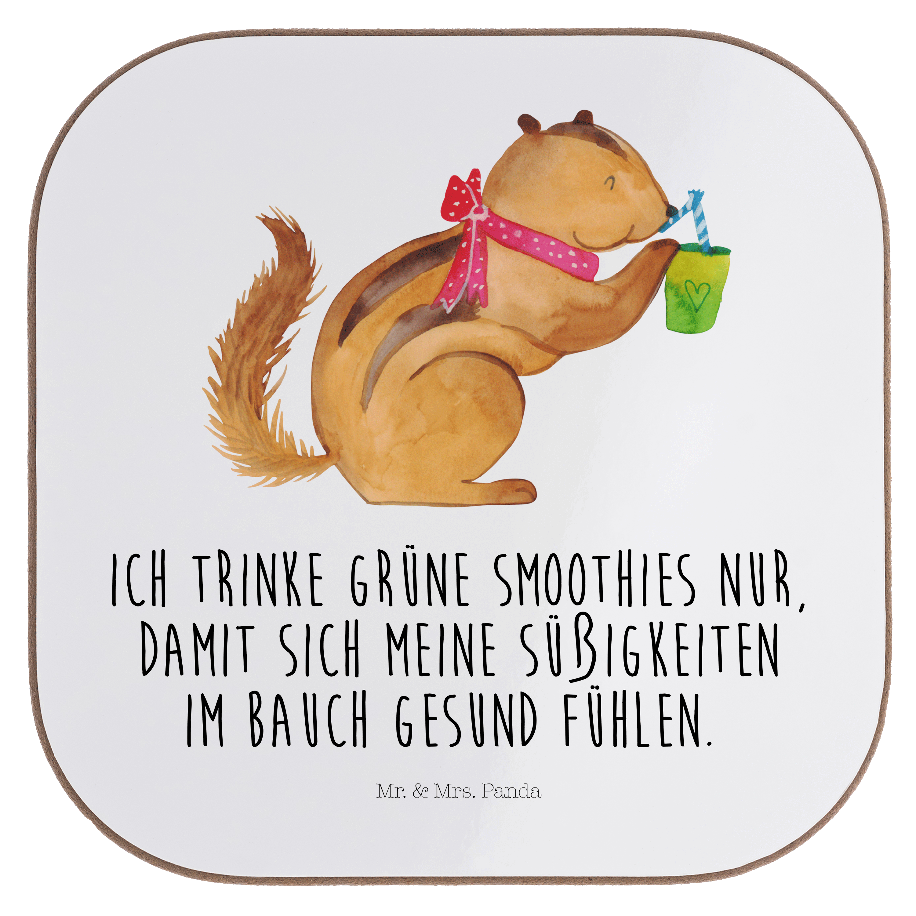 Quadratische Untersetzer Eichhörnchen Smoothie - mit Spruch