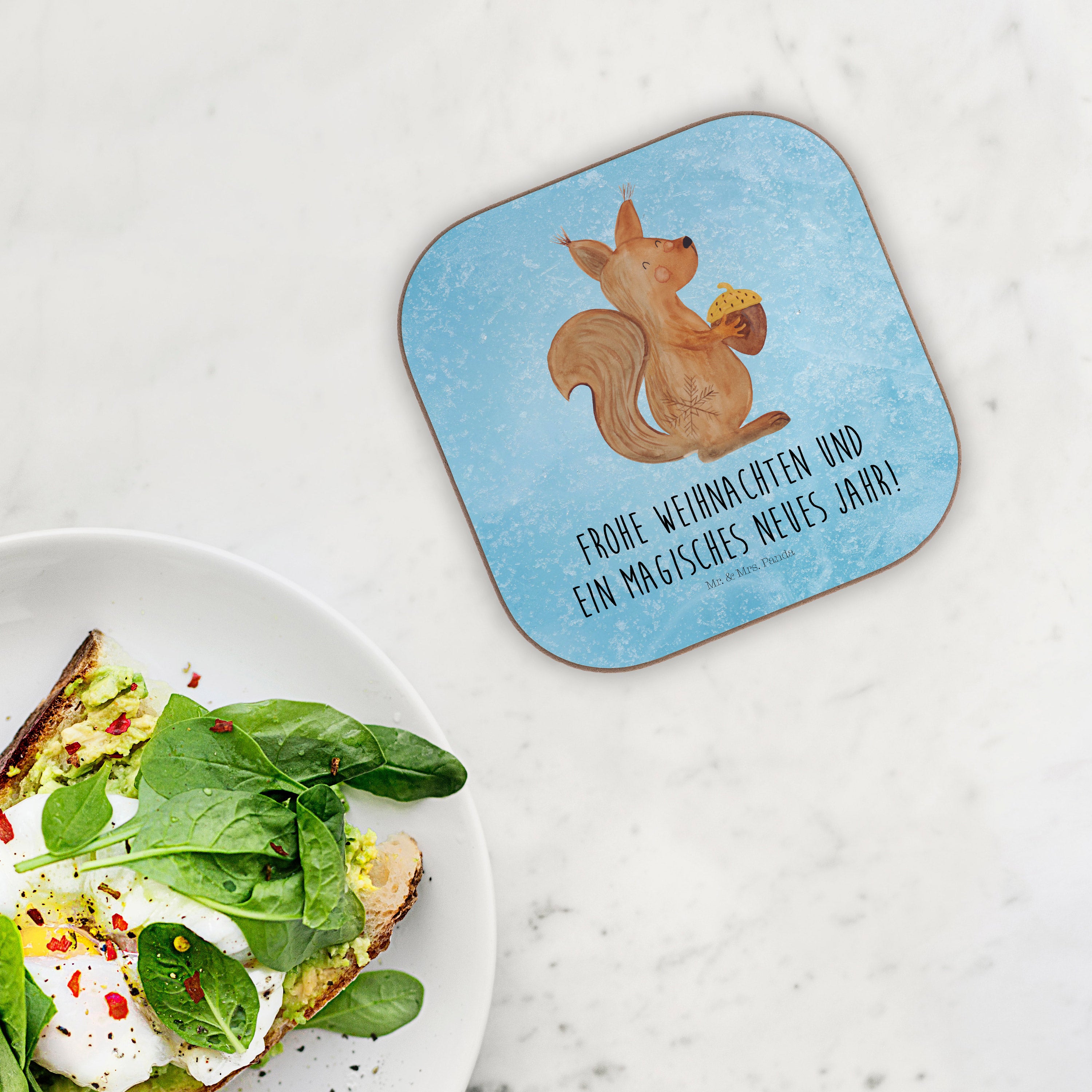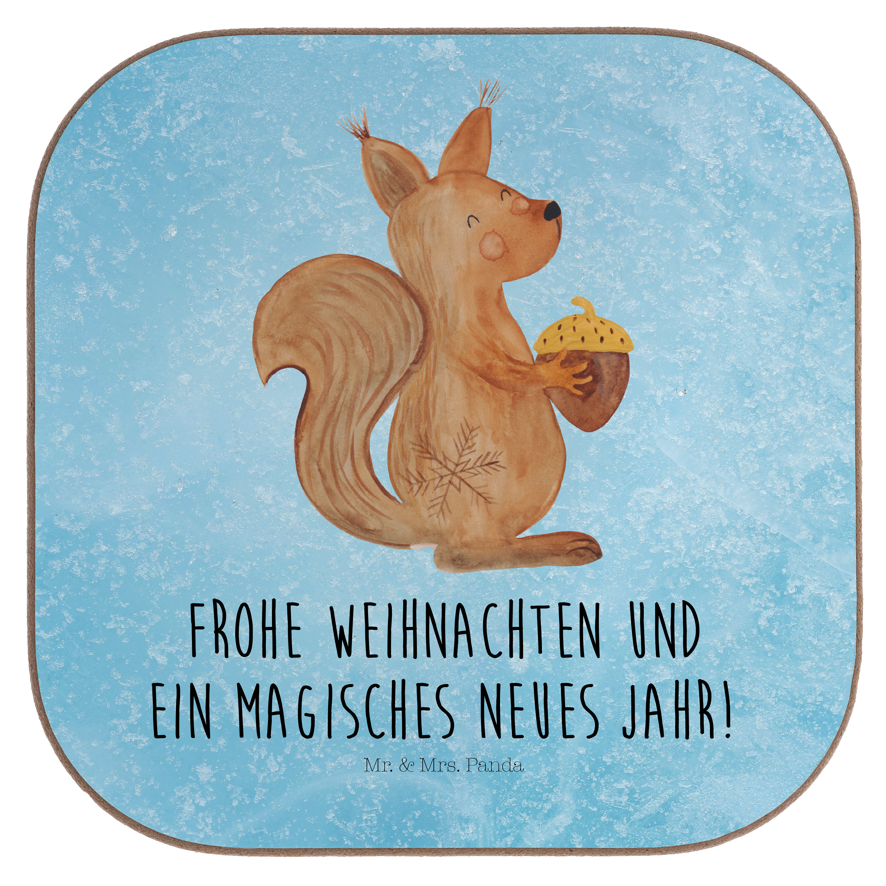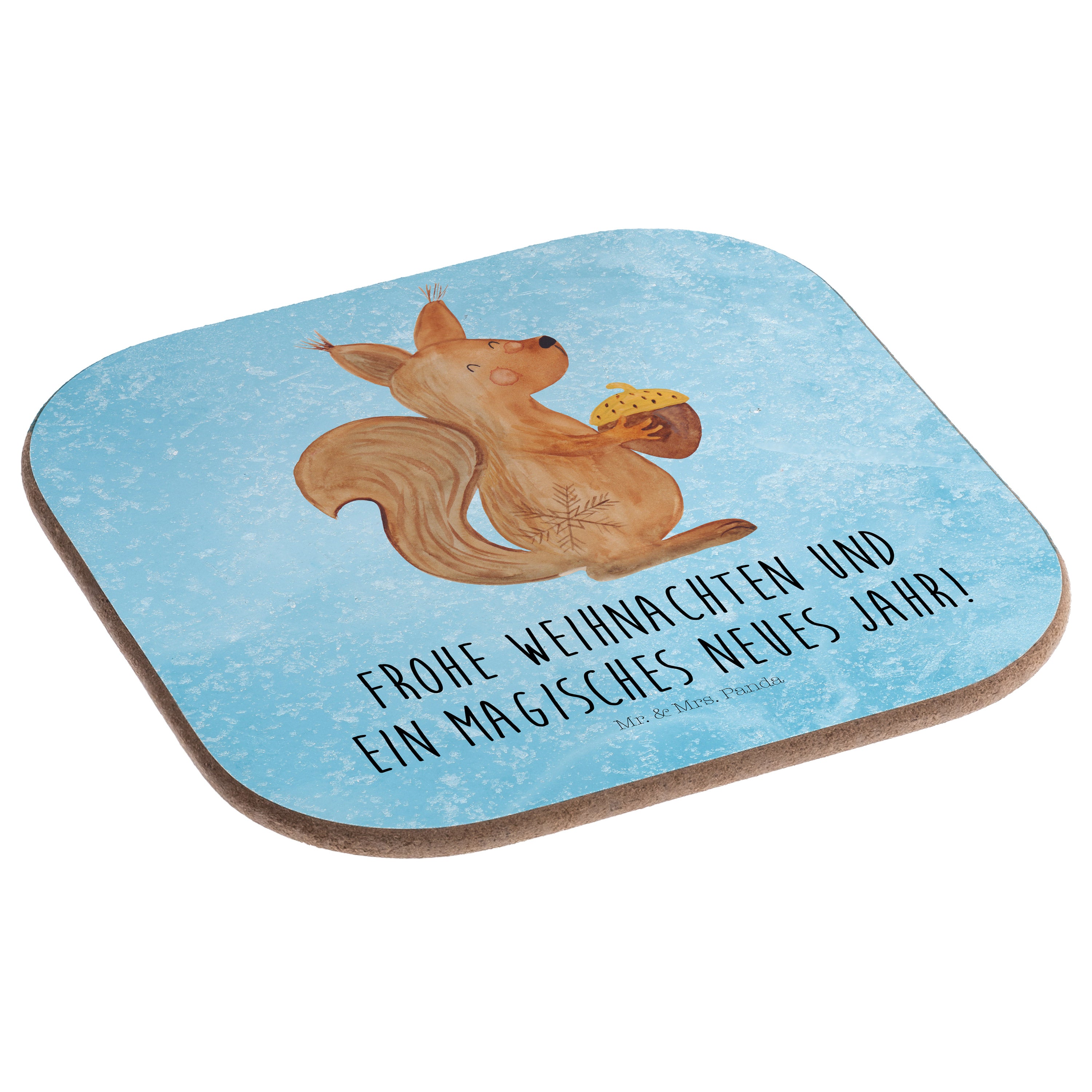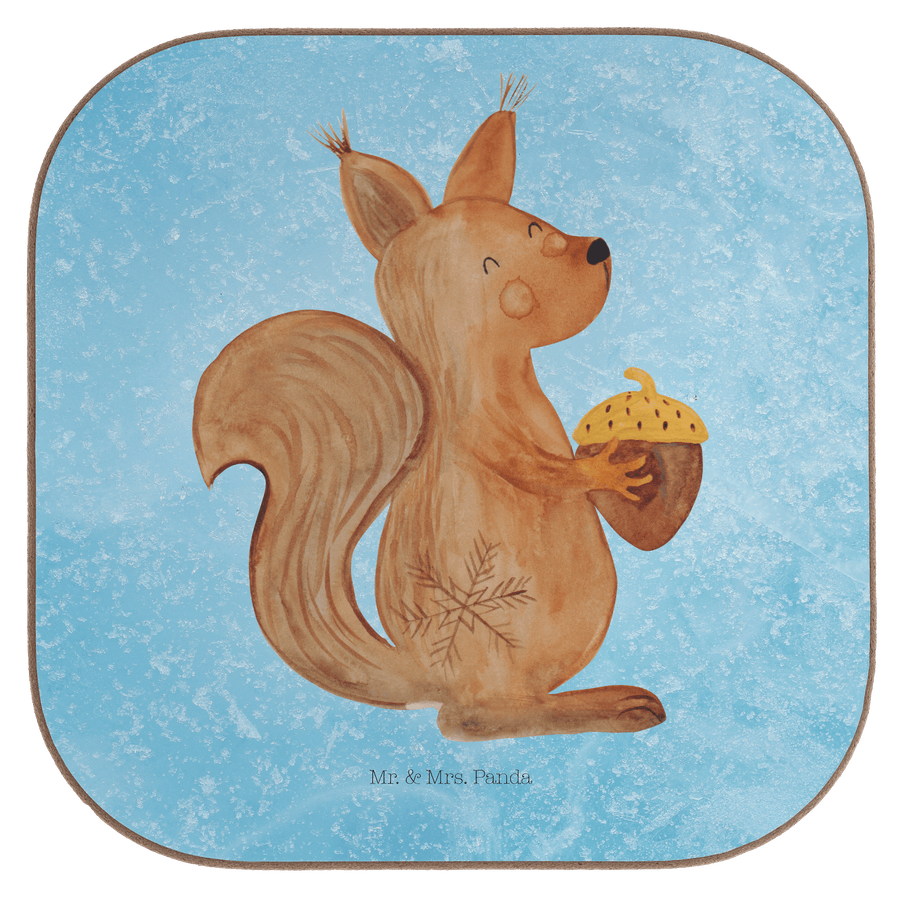 Quadratische Untersetzer Eichhörnchen Weihnachtszeit - ohne Spruch - Eisblau