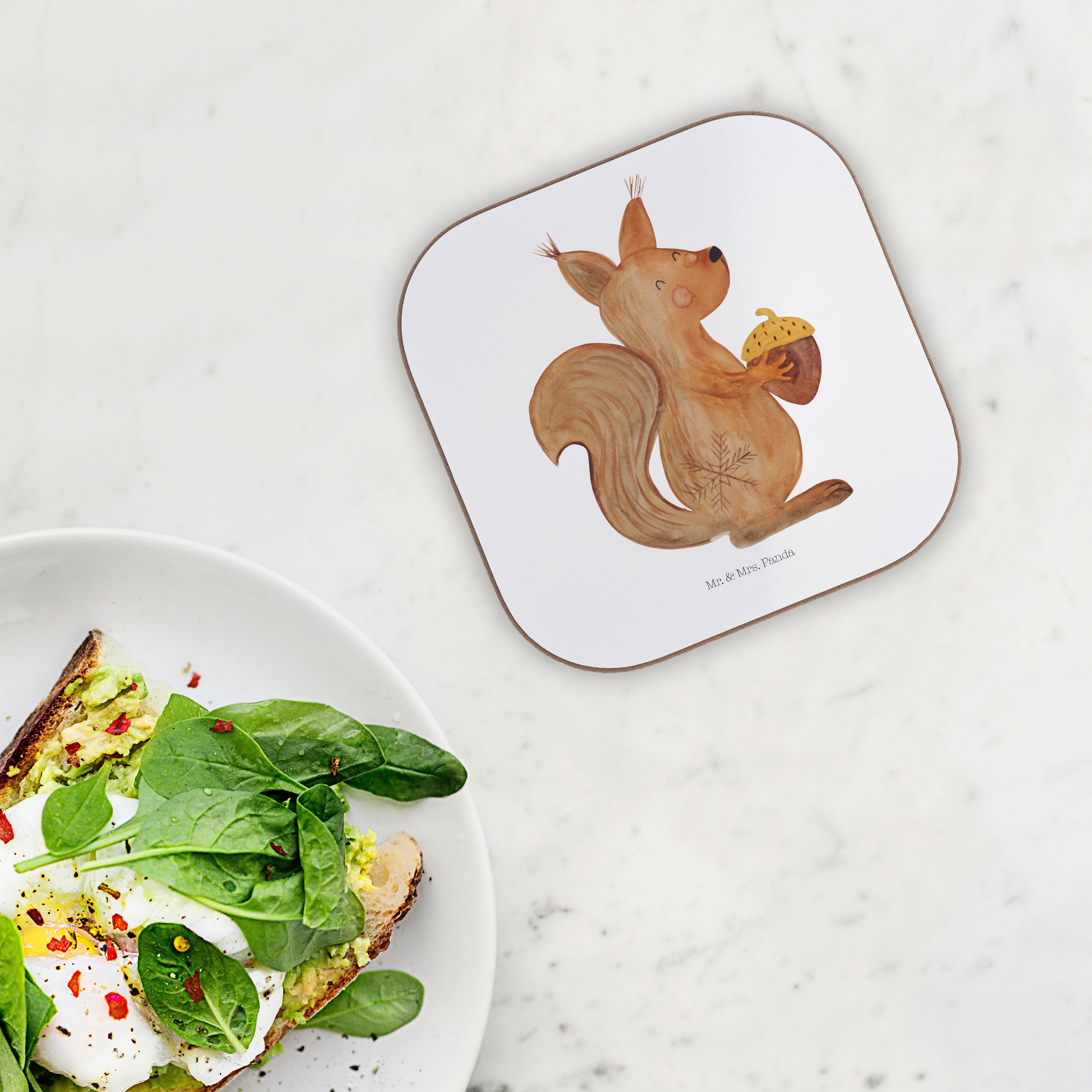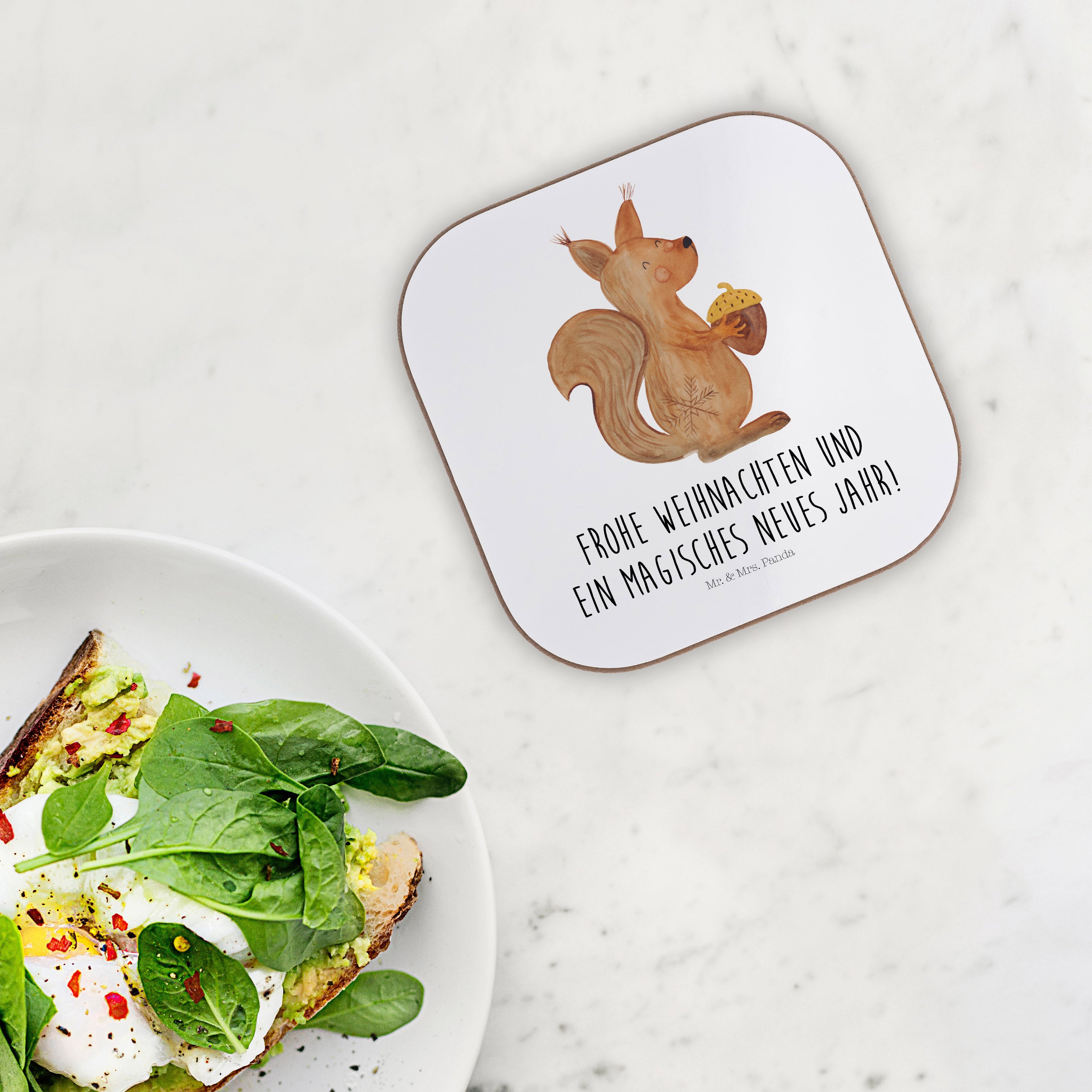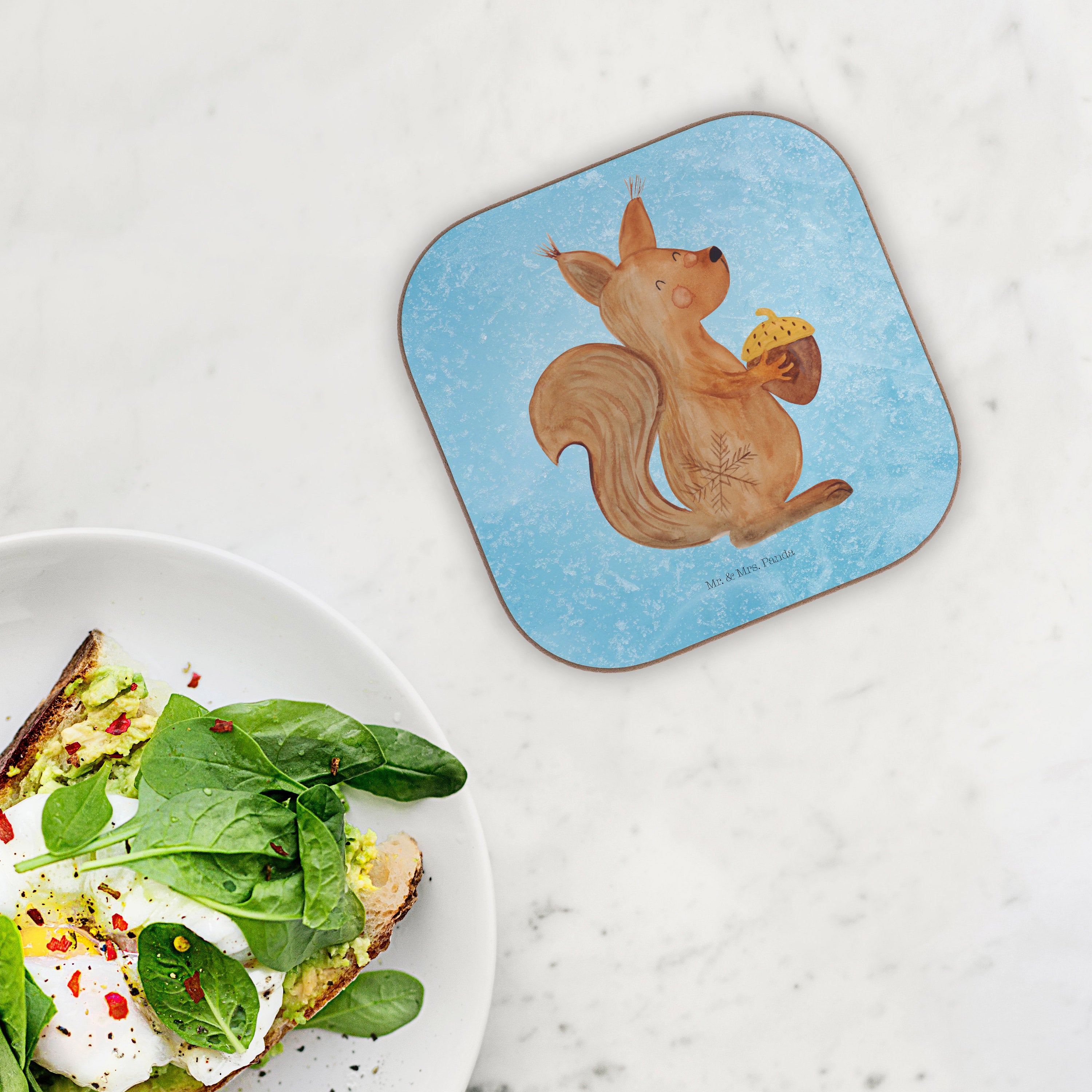 Quadratische Untersetzer Eichhörnchen Weihnachtszeit - ohne Spruch - Eisblau