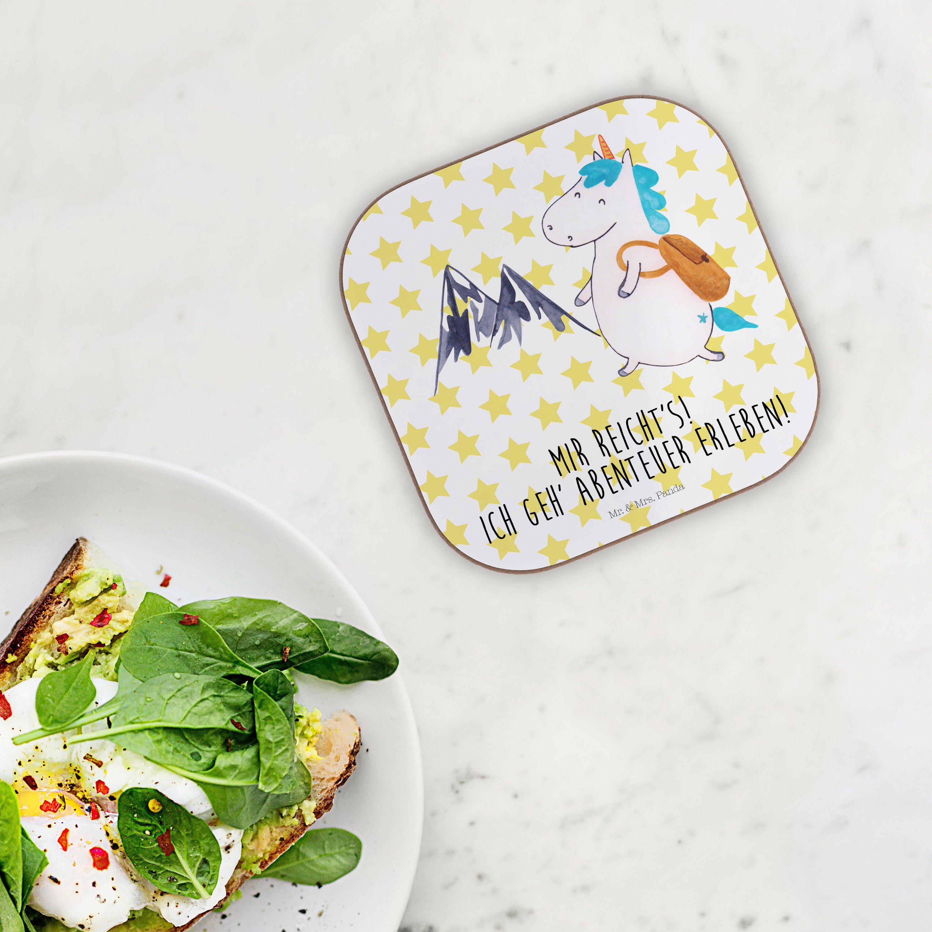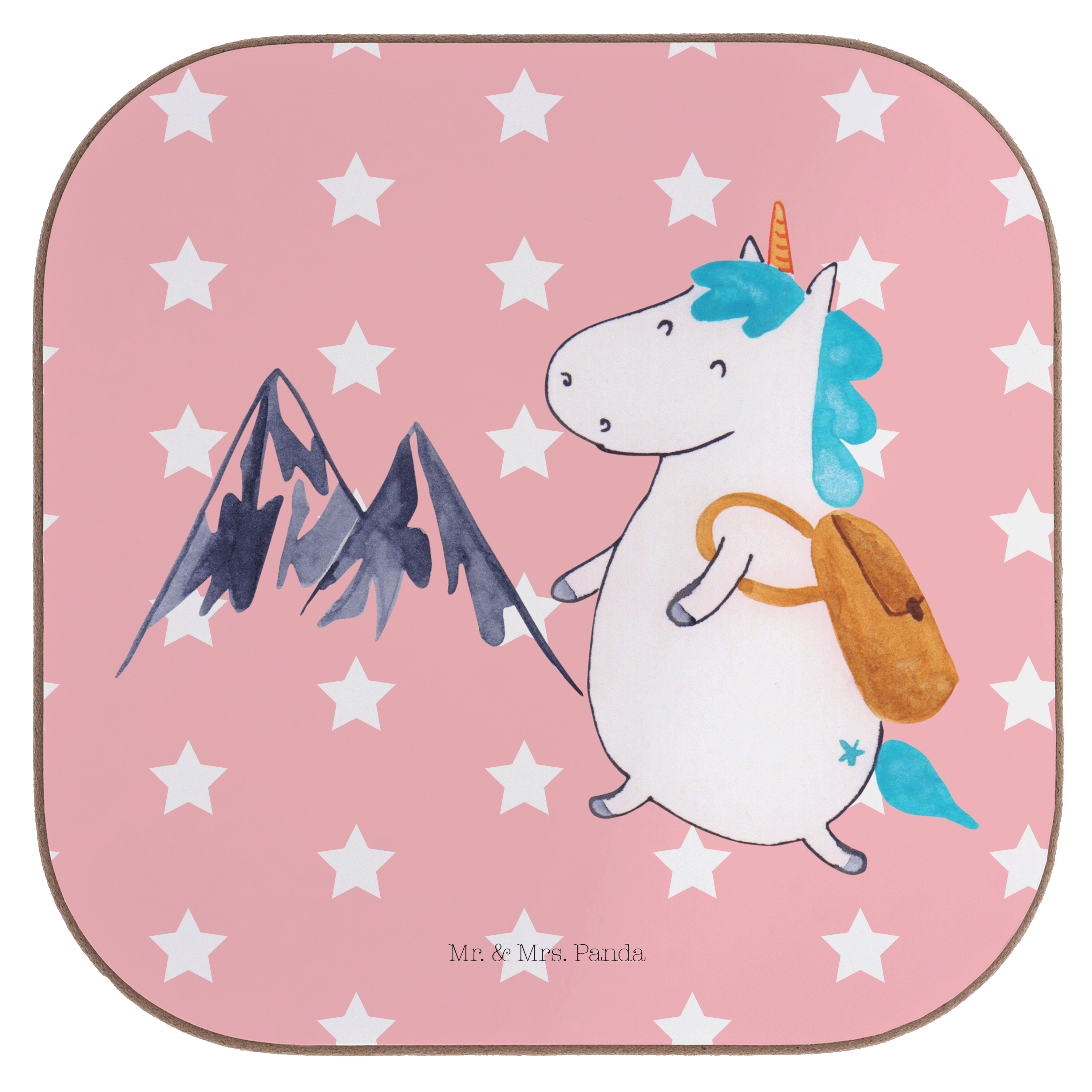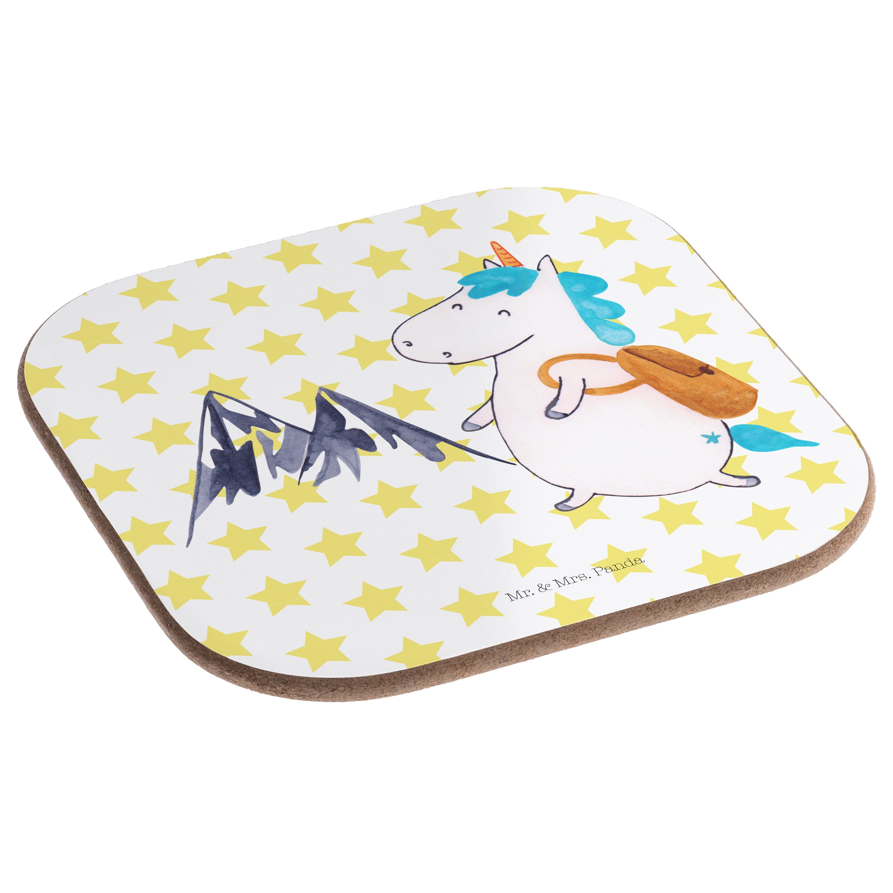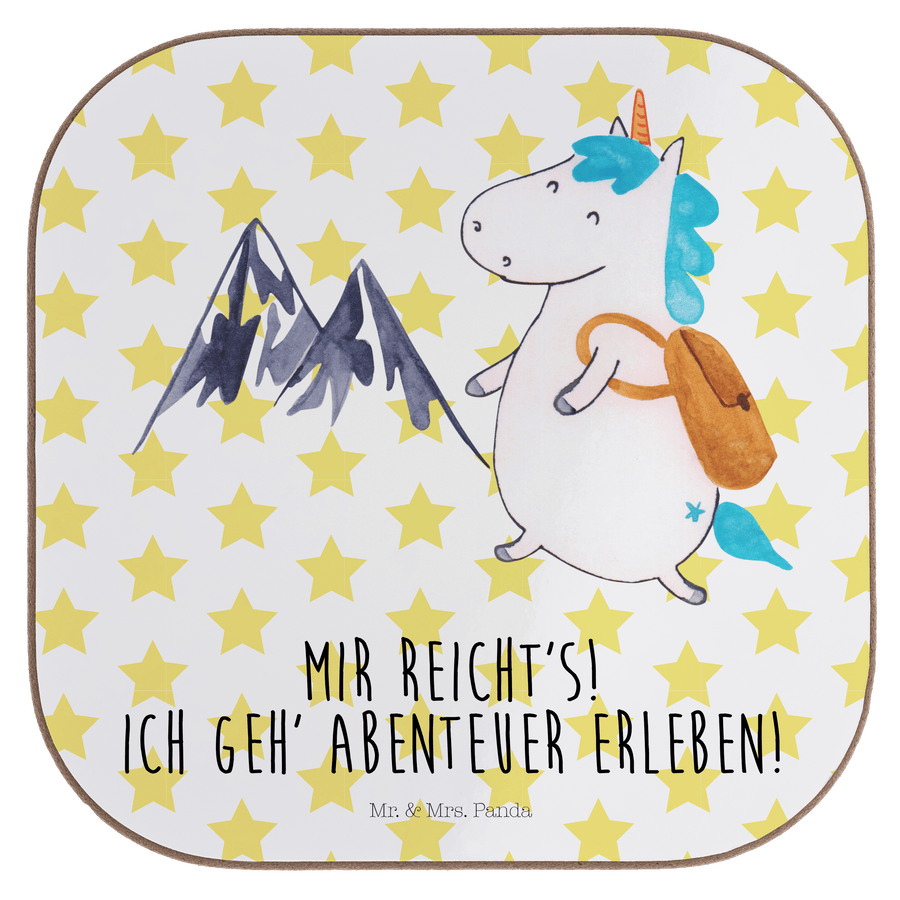 Quadratische Untersetzer Einhorn Bergsteiger - mit Spruch - Weiß