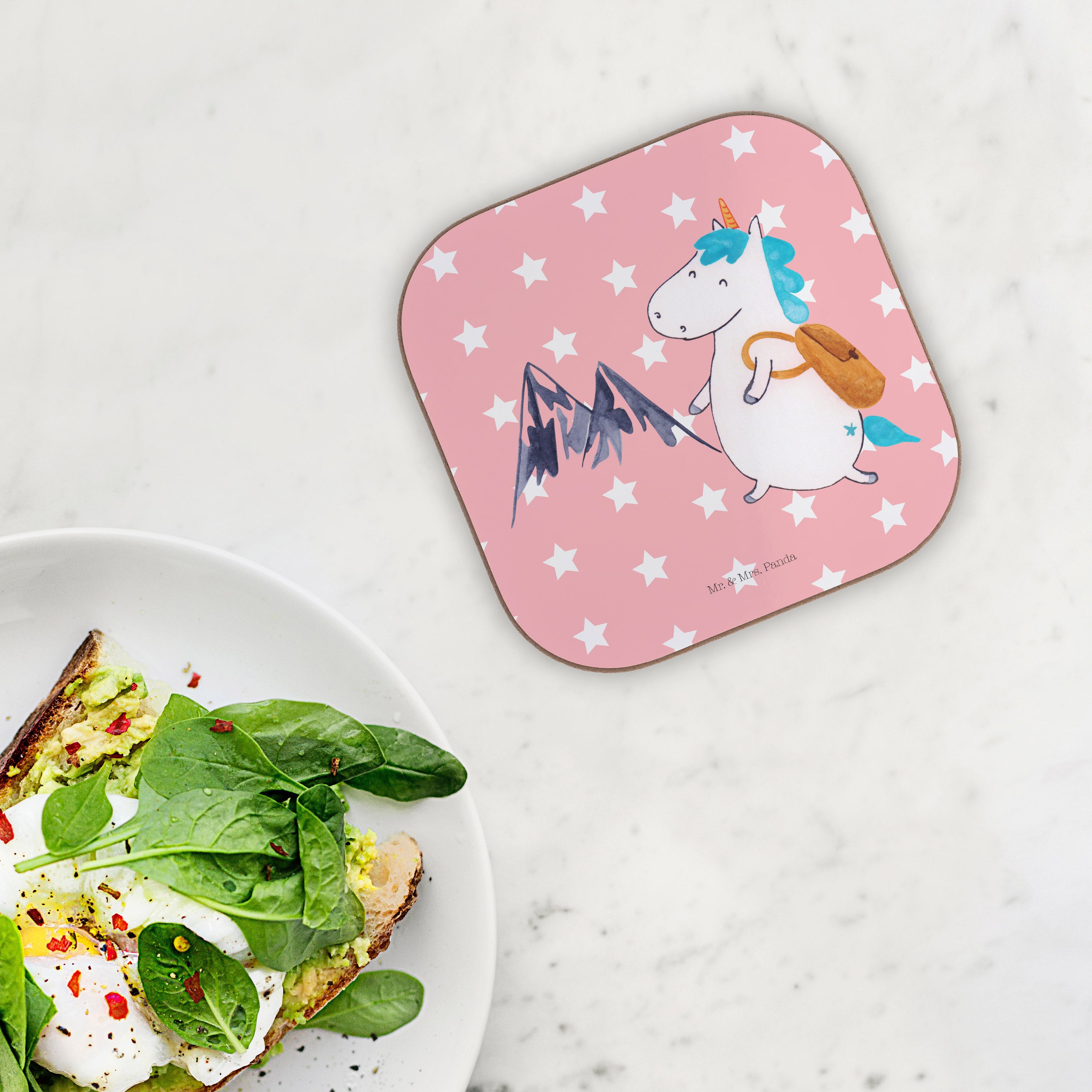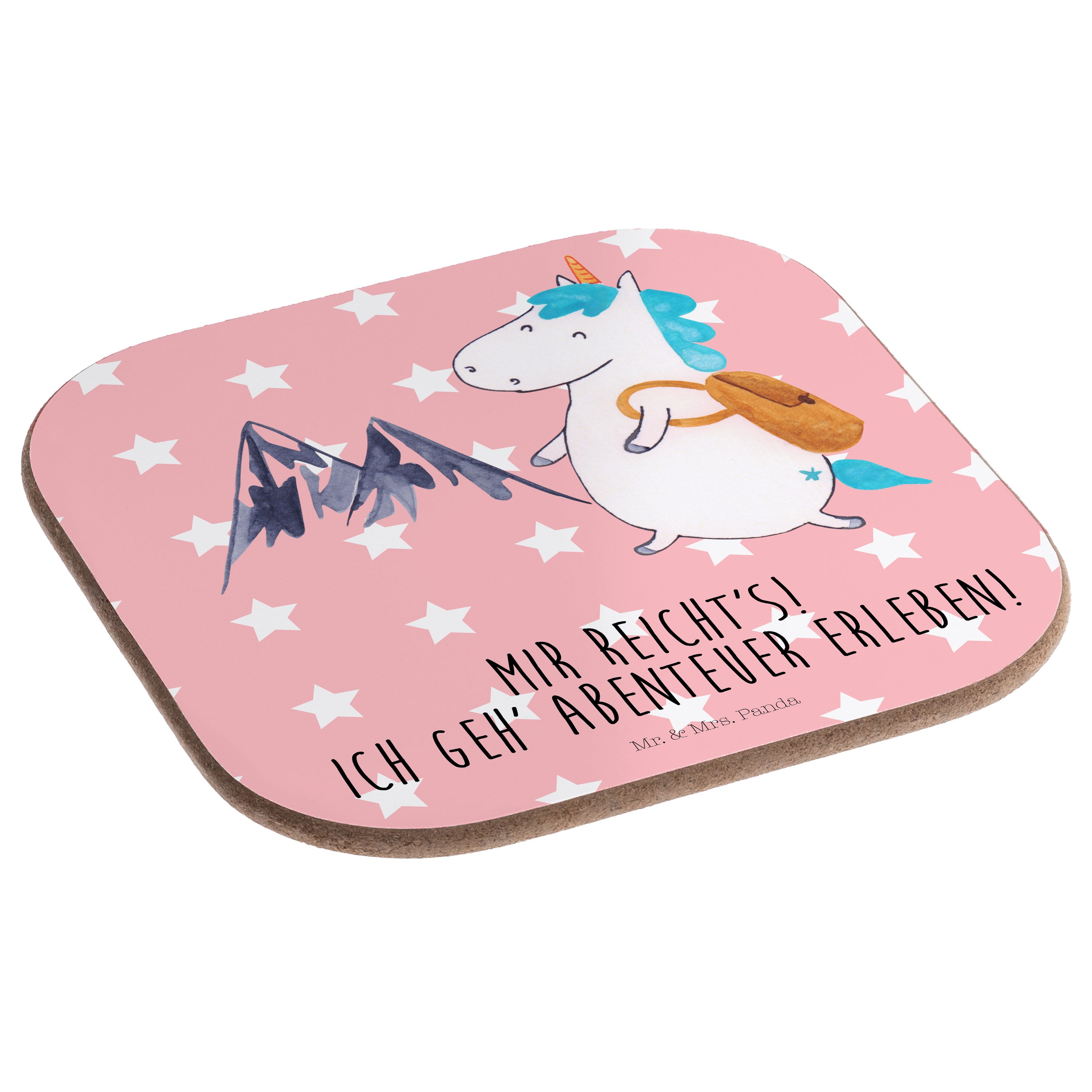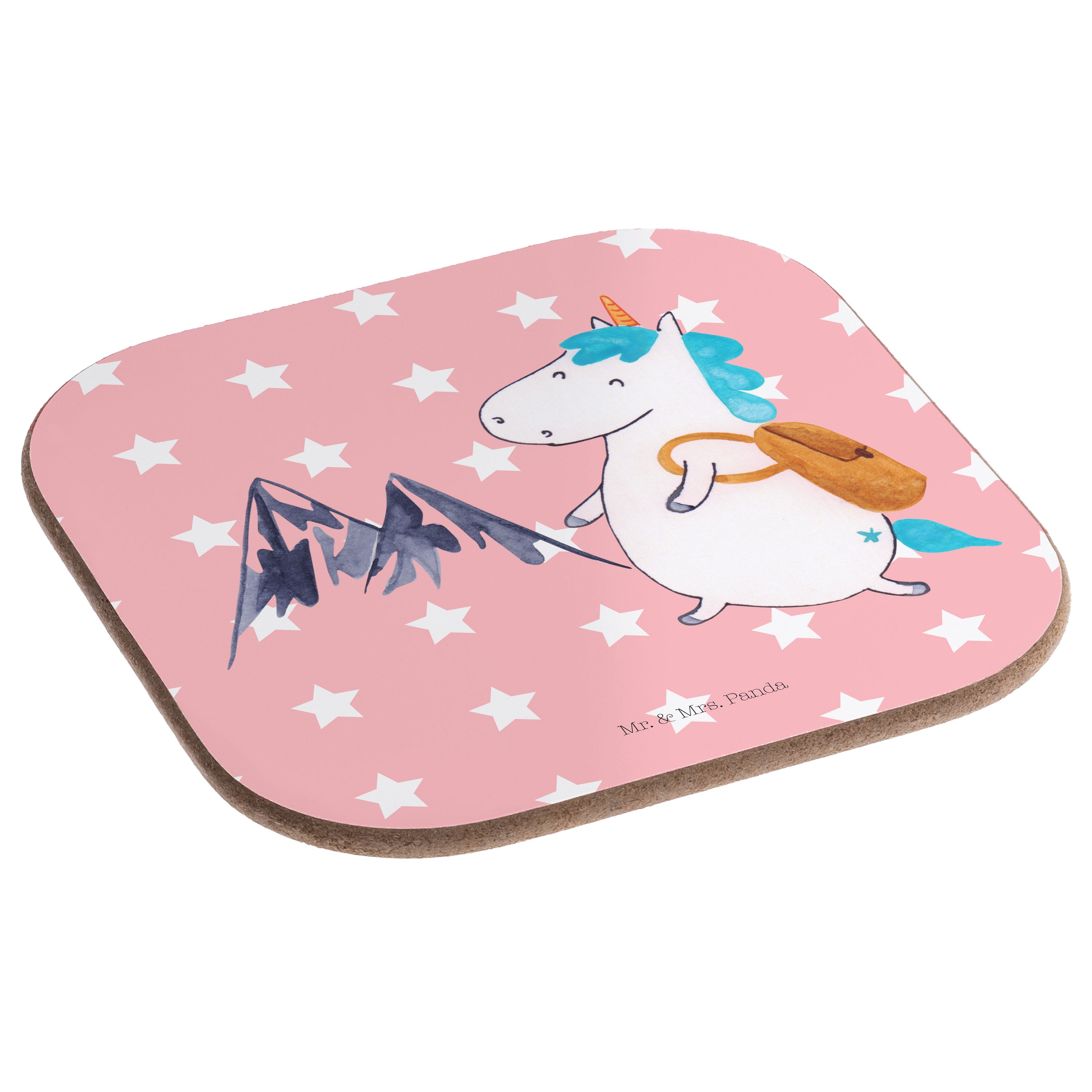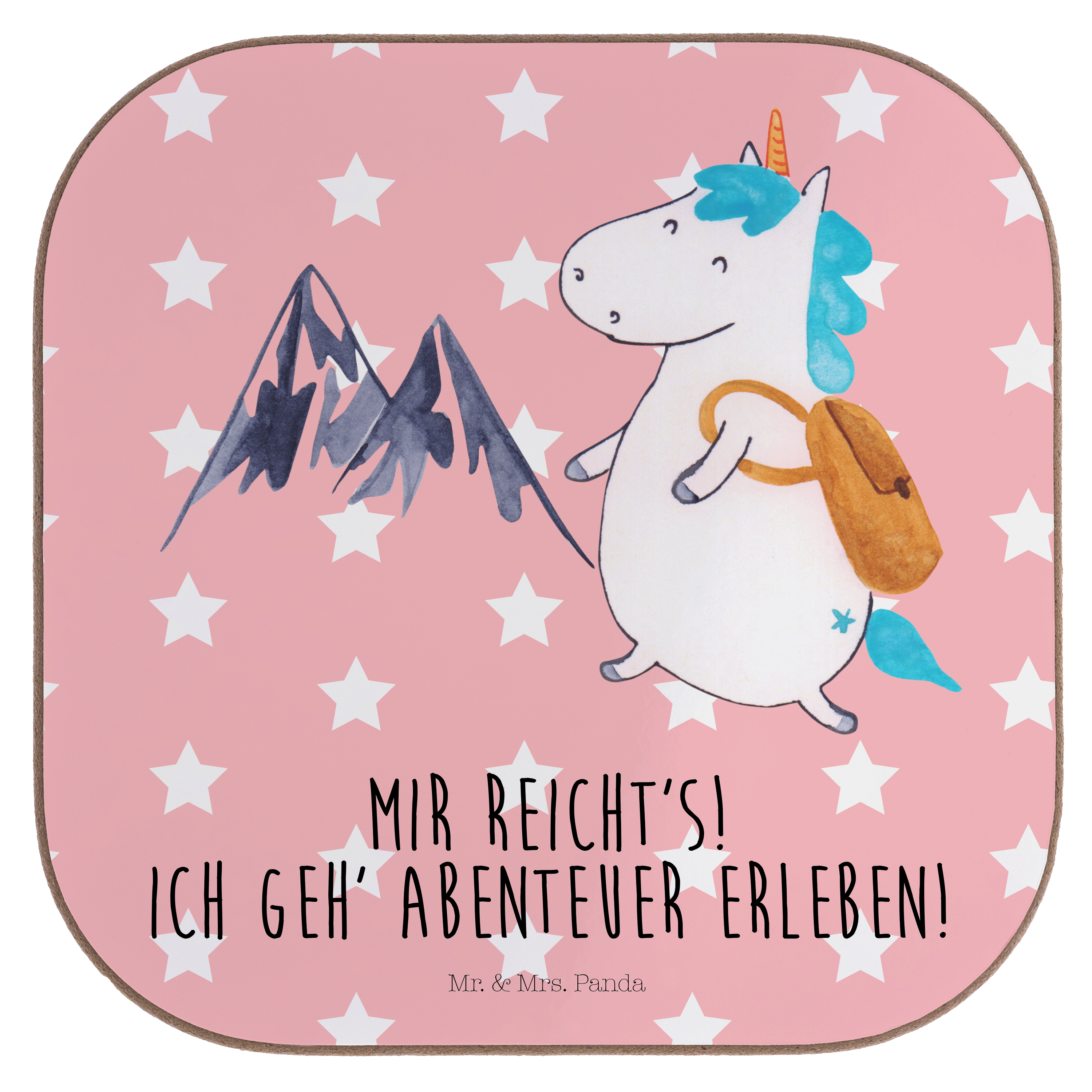 Quadratische Untersetzer Einhorn Bergsteiger - mit Spruch - Weiß