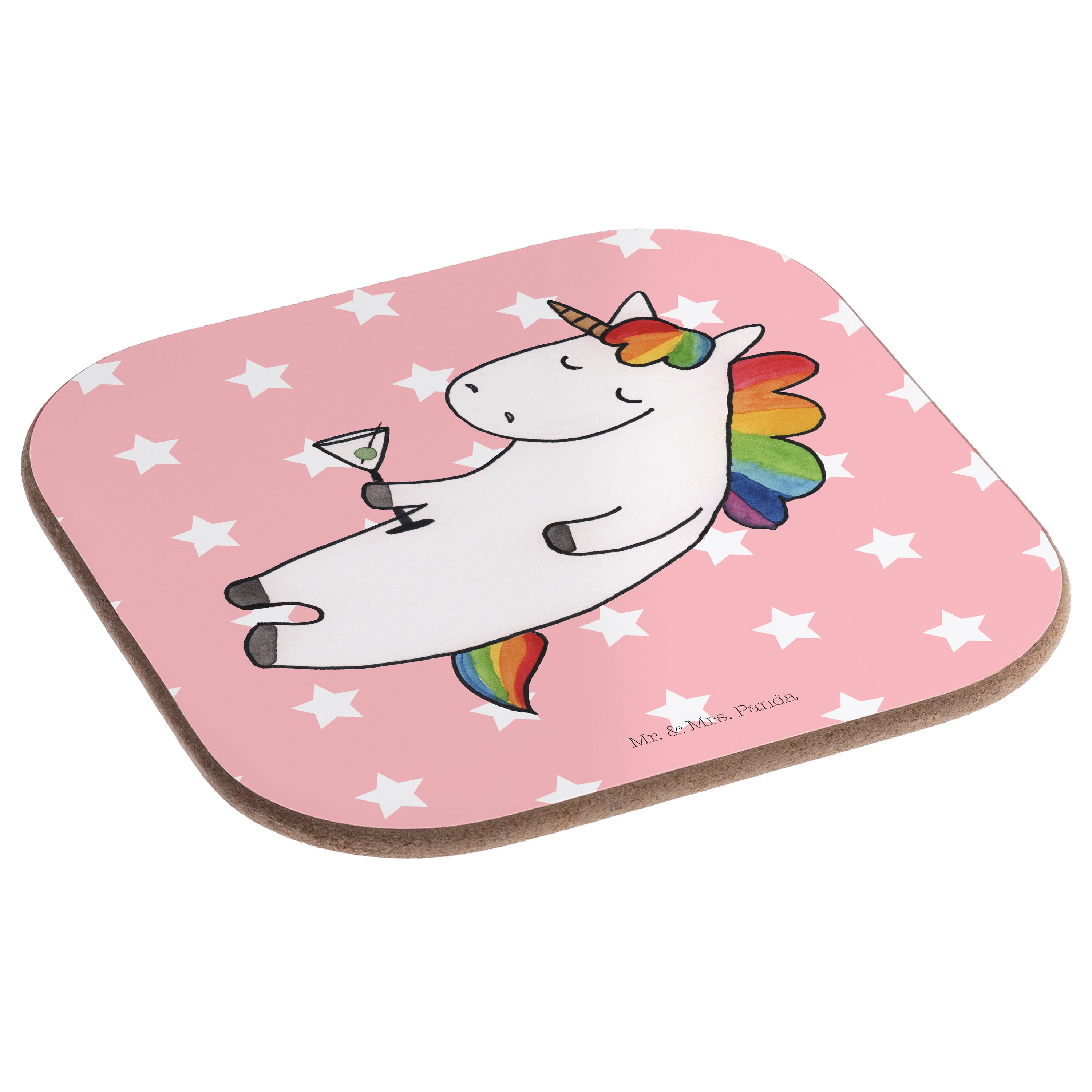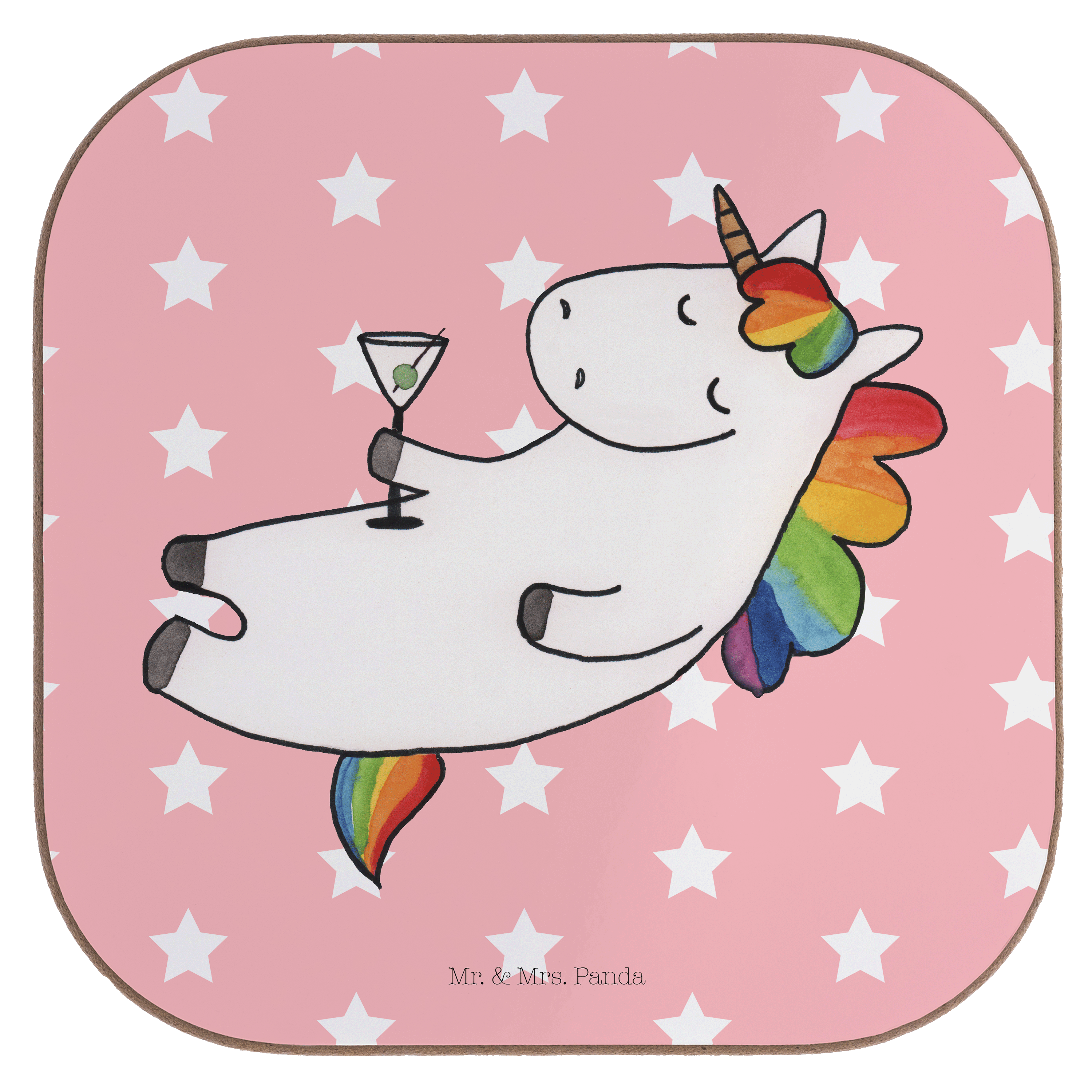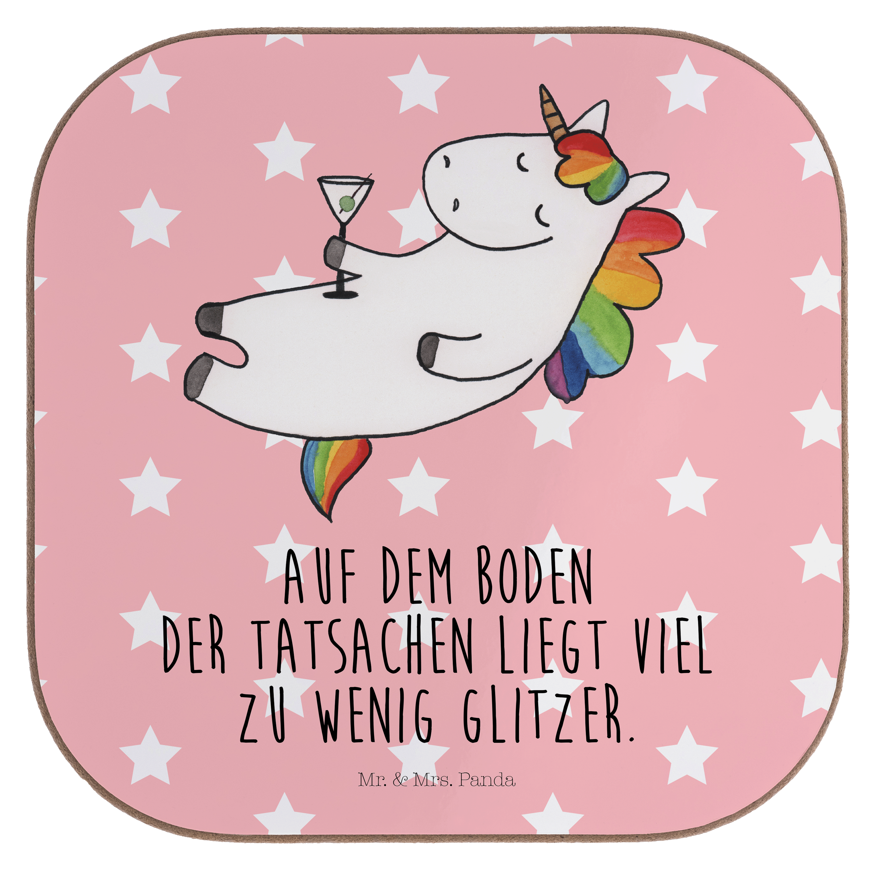 Quadratische Untersetzer Einhorn Cocktail - mit Spruch - Rot Pastell