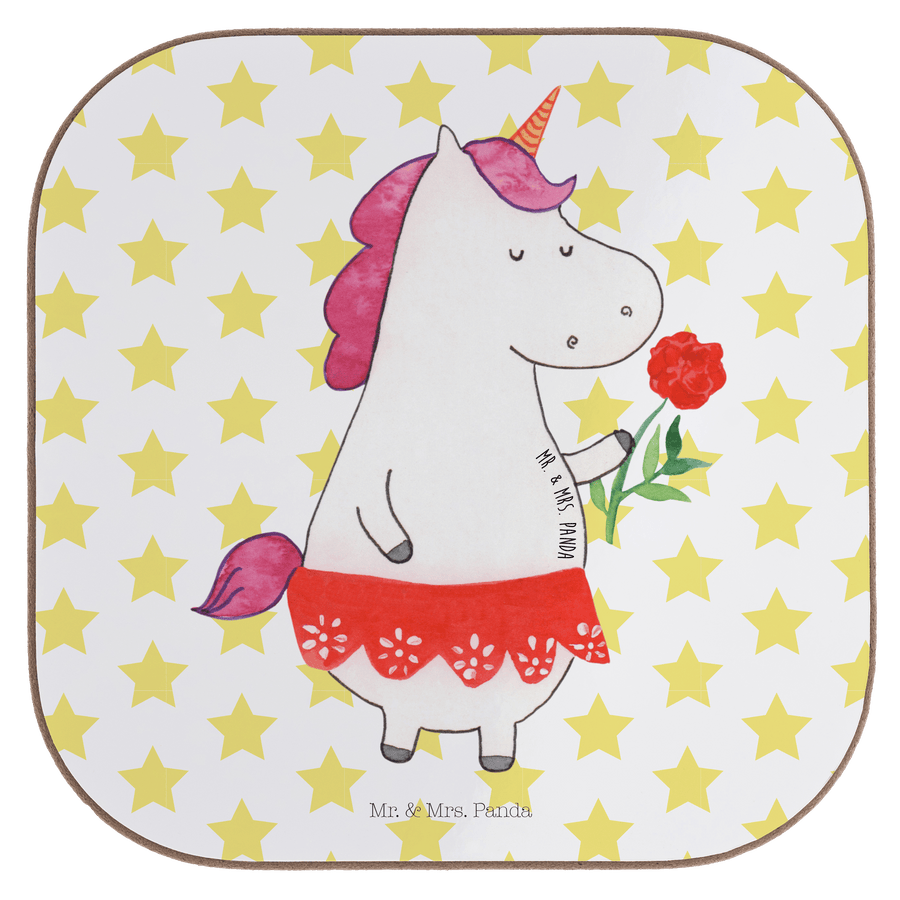 Quadratische Untersetzer Einhorn Dame - ohne Spruch - Weiß
