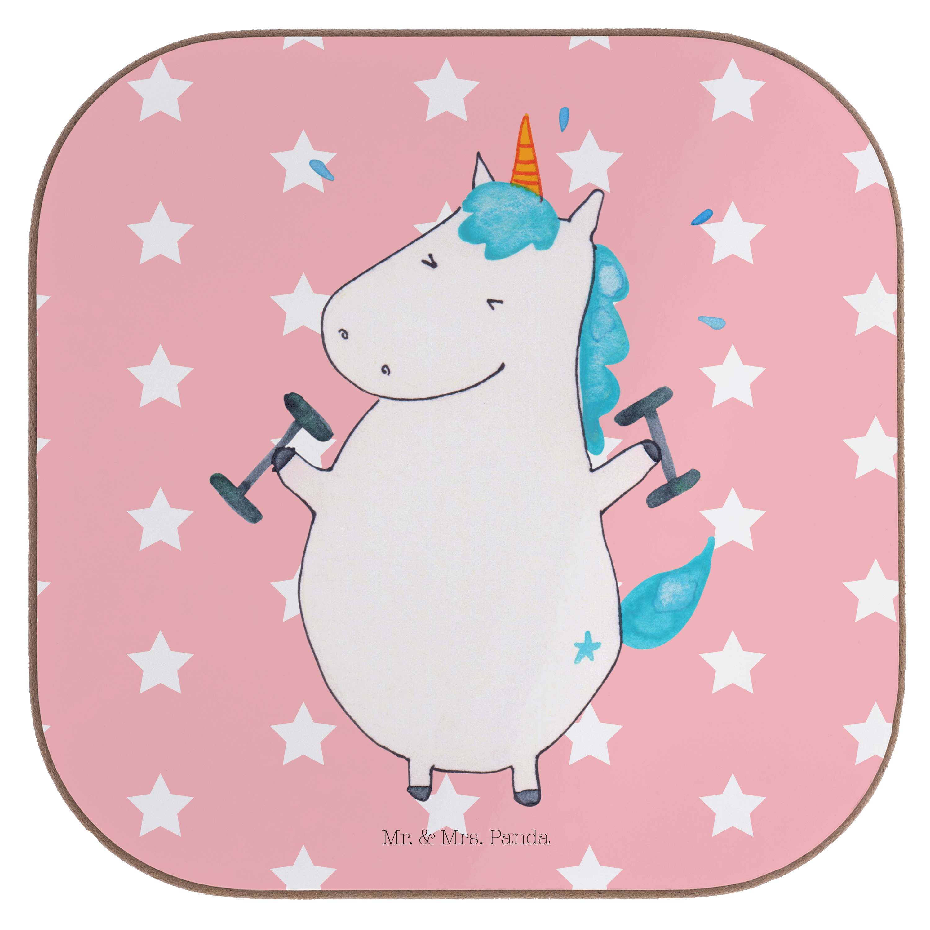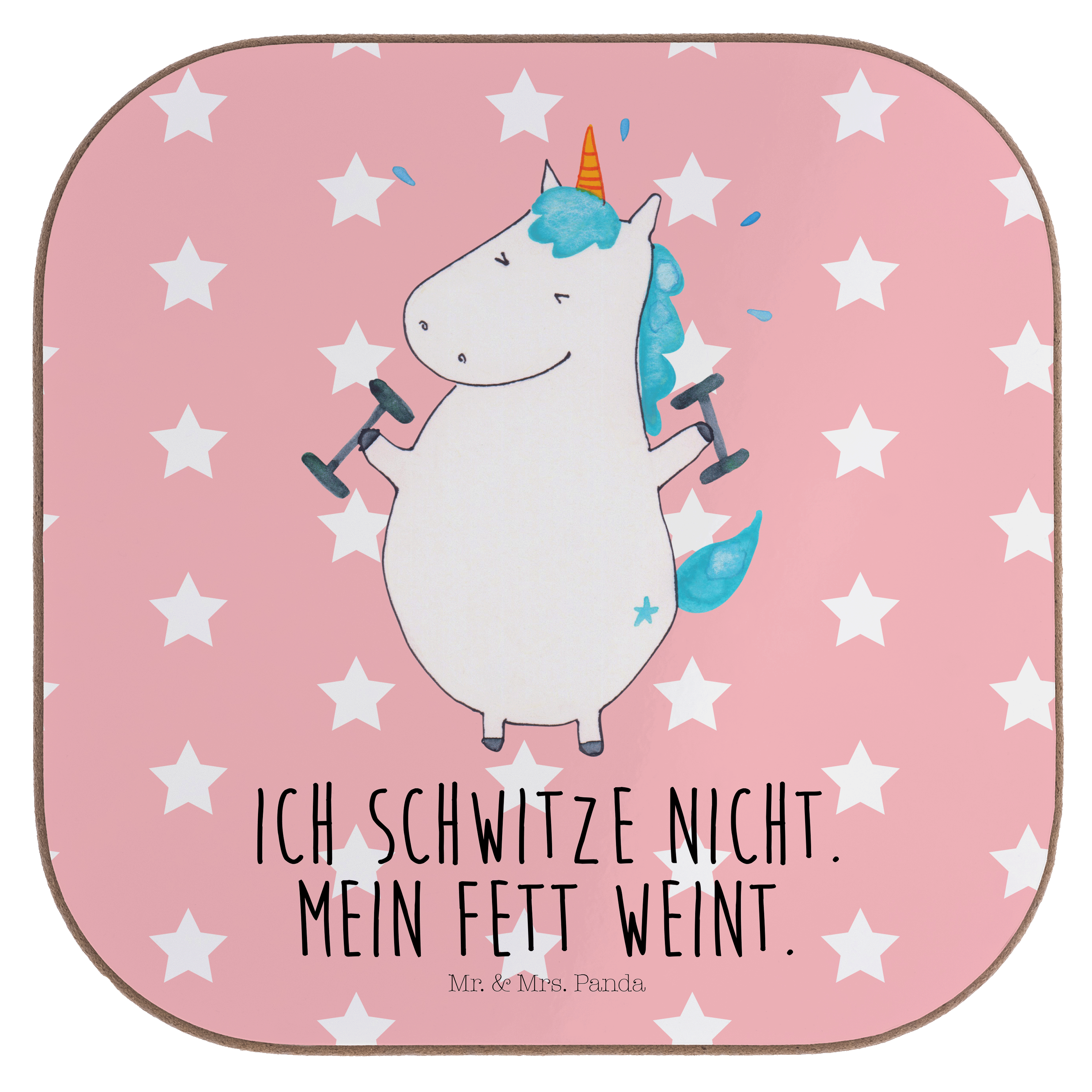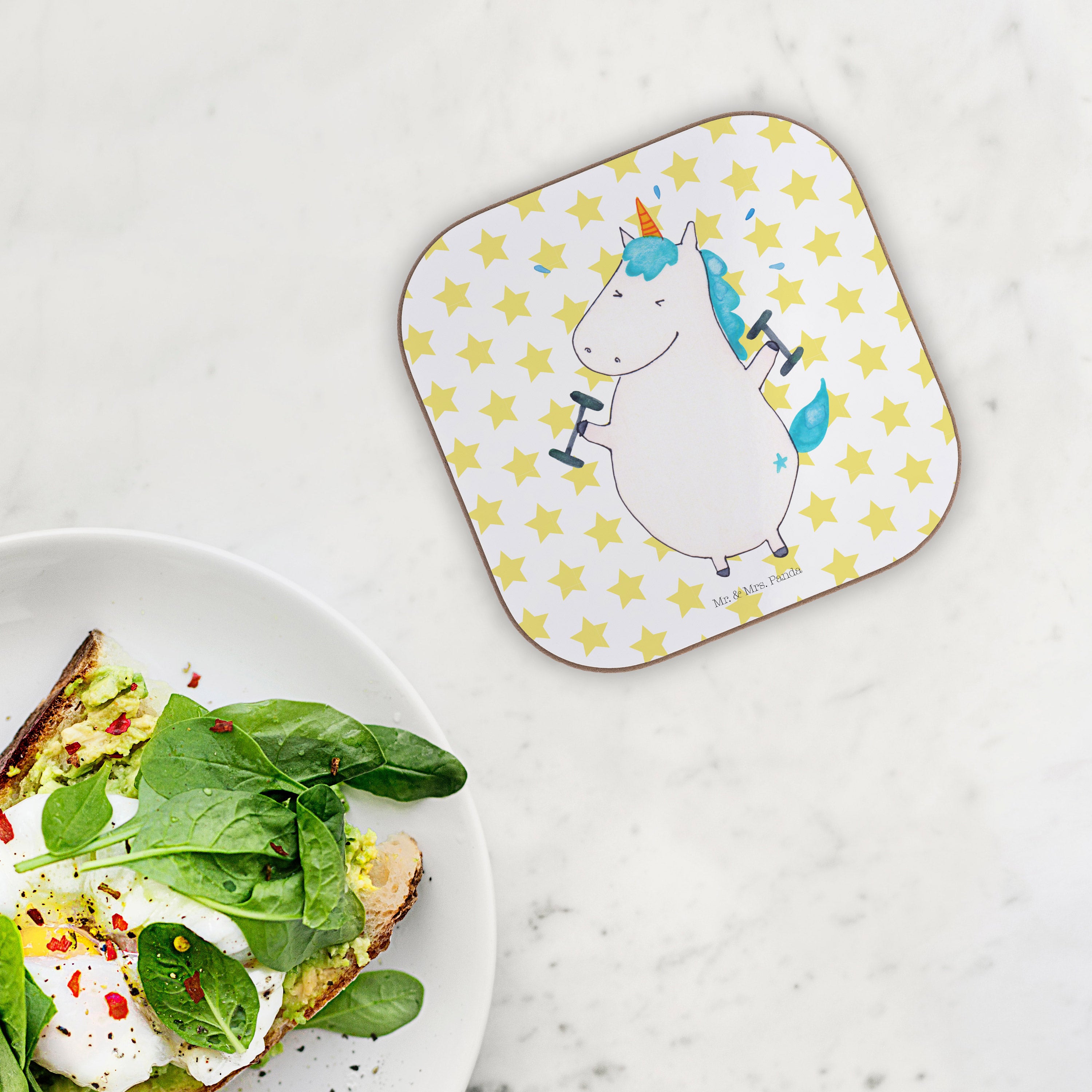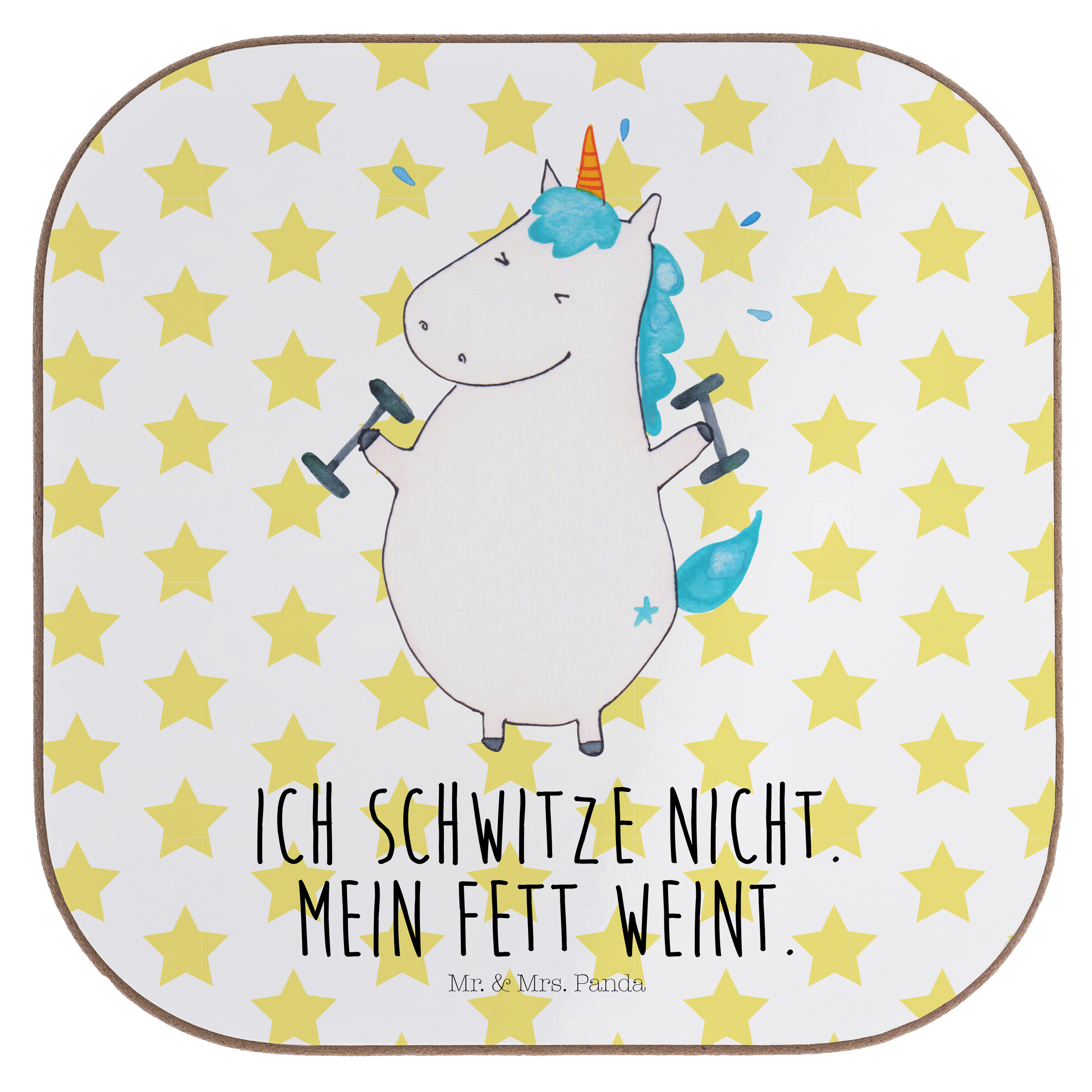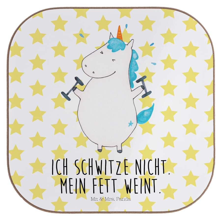 Quadratische Untersetzer Einhorn Fitness - mit Spruch - Weiß