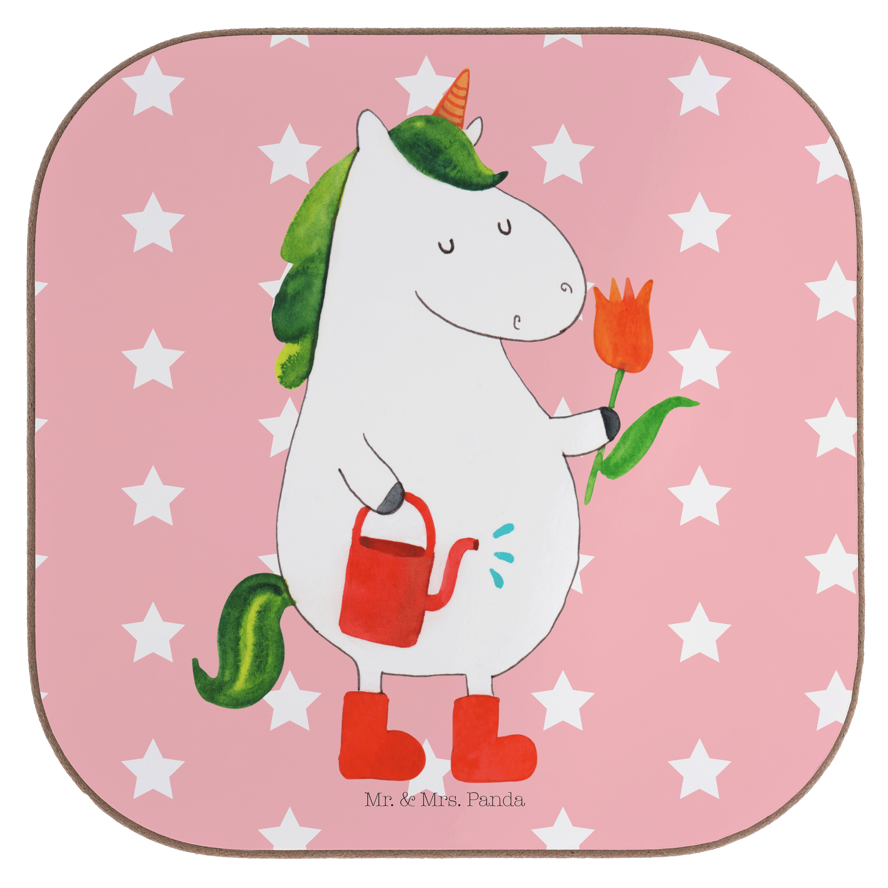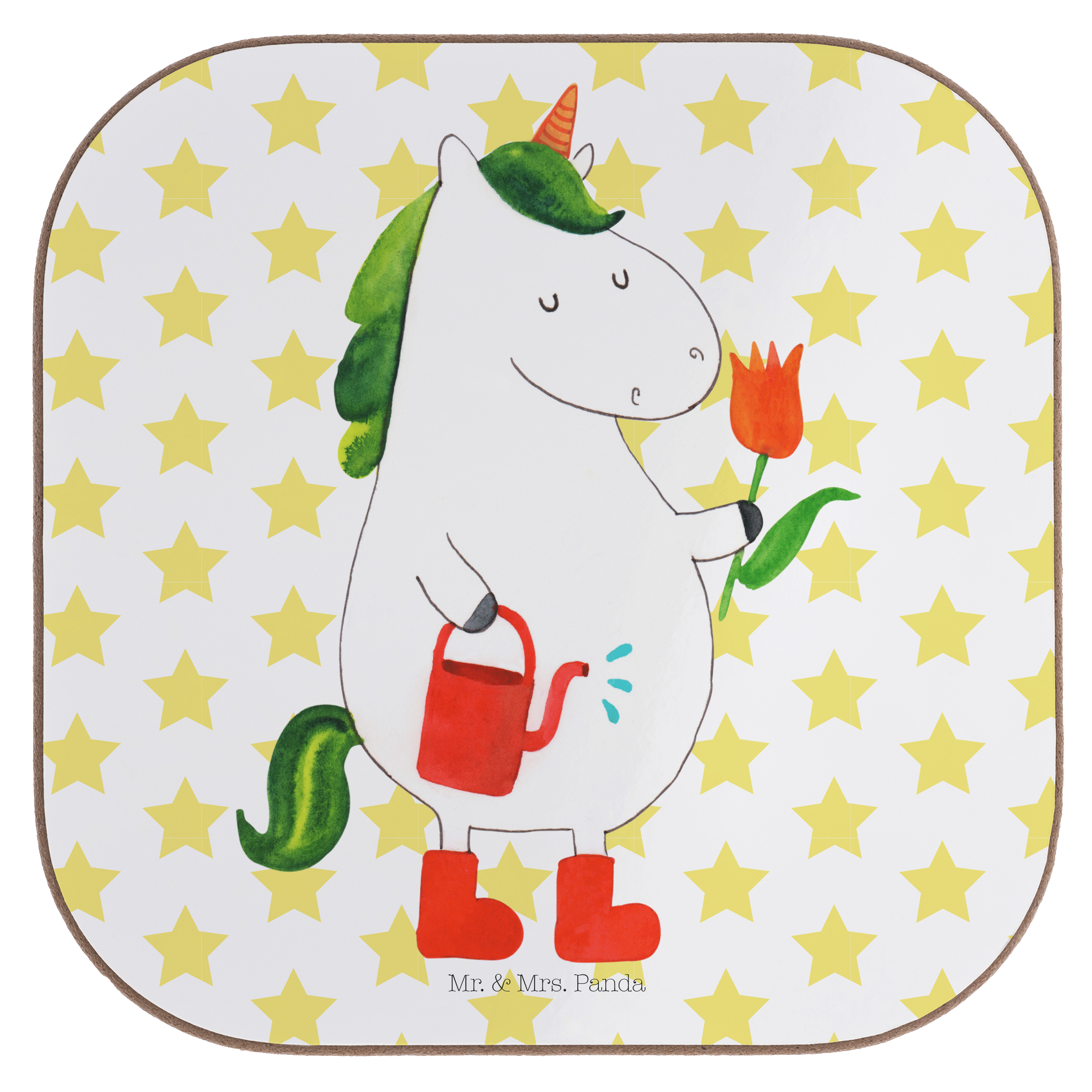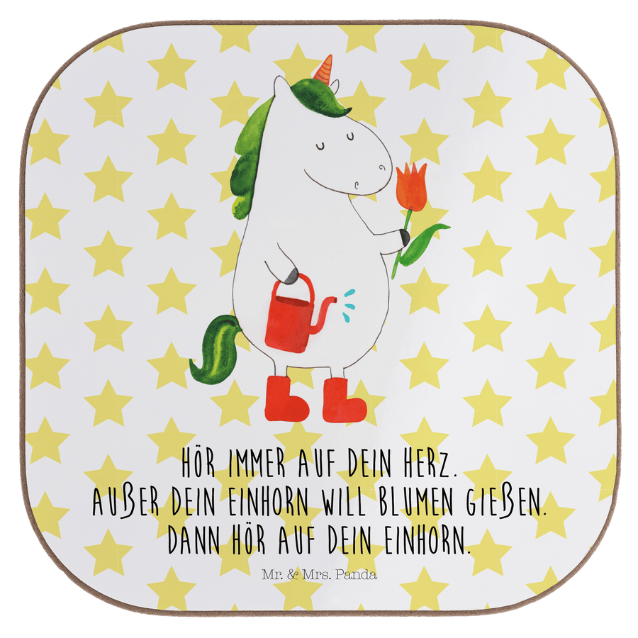 Quadratische Untersetzer Einhorn Gärtner Bierdeckel, Glasuntersetzer, Untersetzer Gläser, Getränkeuntersetzer, Einhorn, Einhörner, Einhorn Deko, Pegasus, Unicorn, Luftballon, Gießkanne, Giesskanne, Lebenslust, Freude, Blume, Freundin, Garten, Stiefel