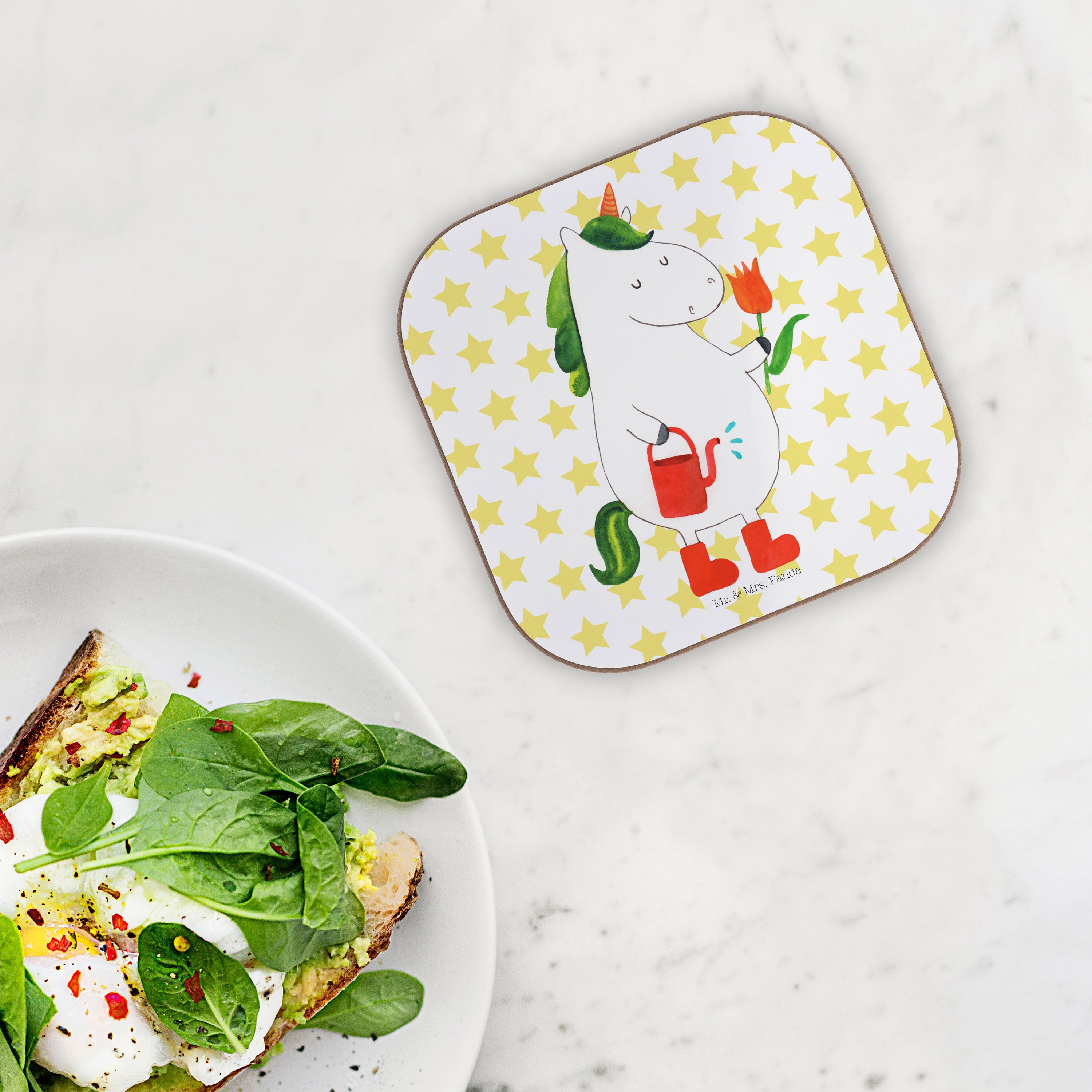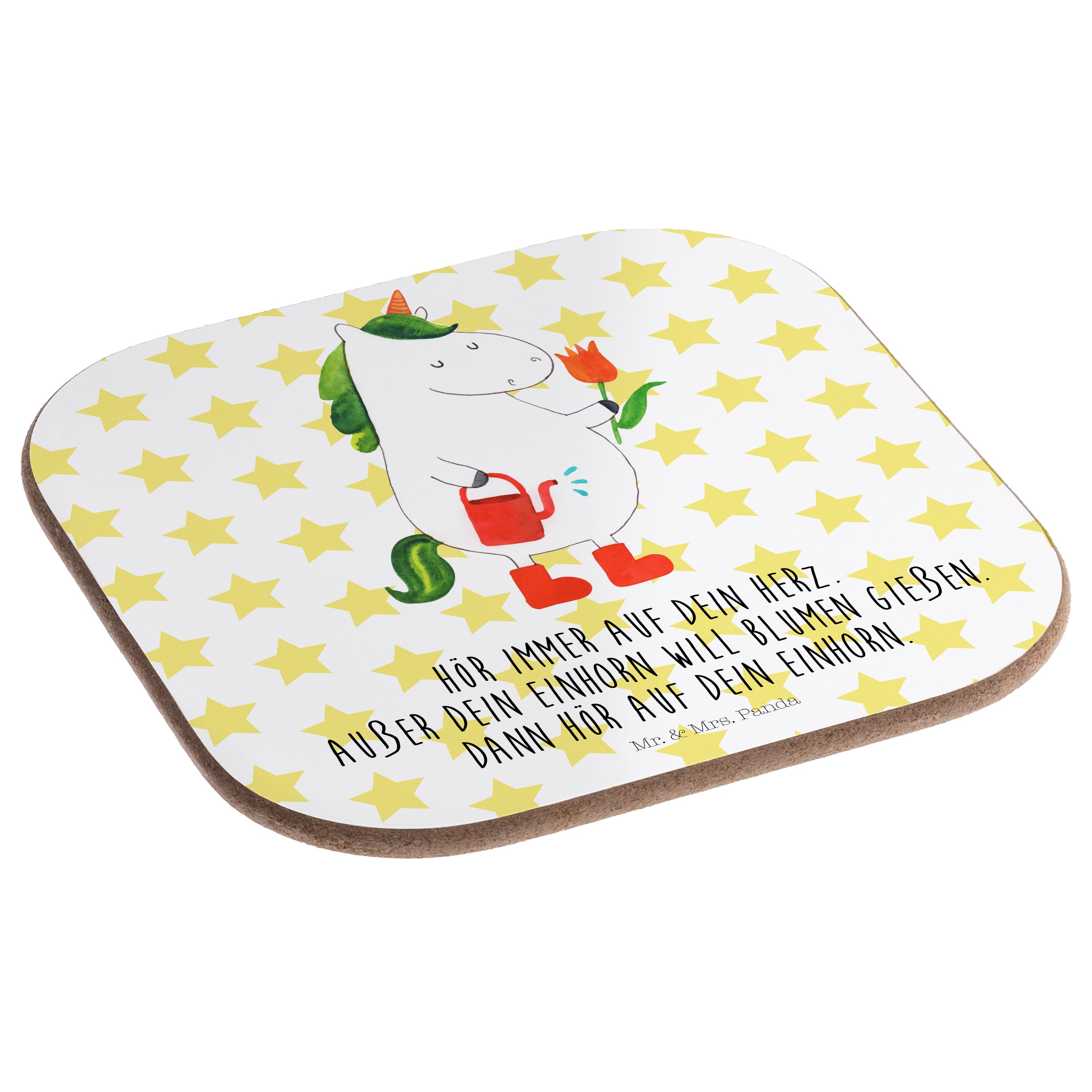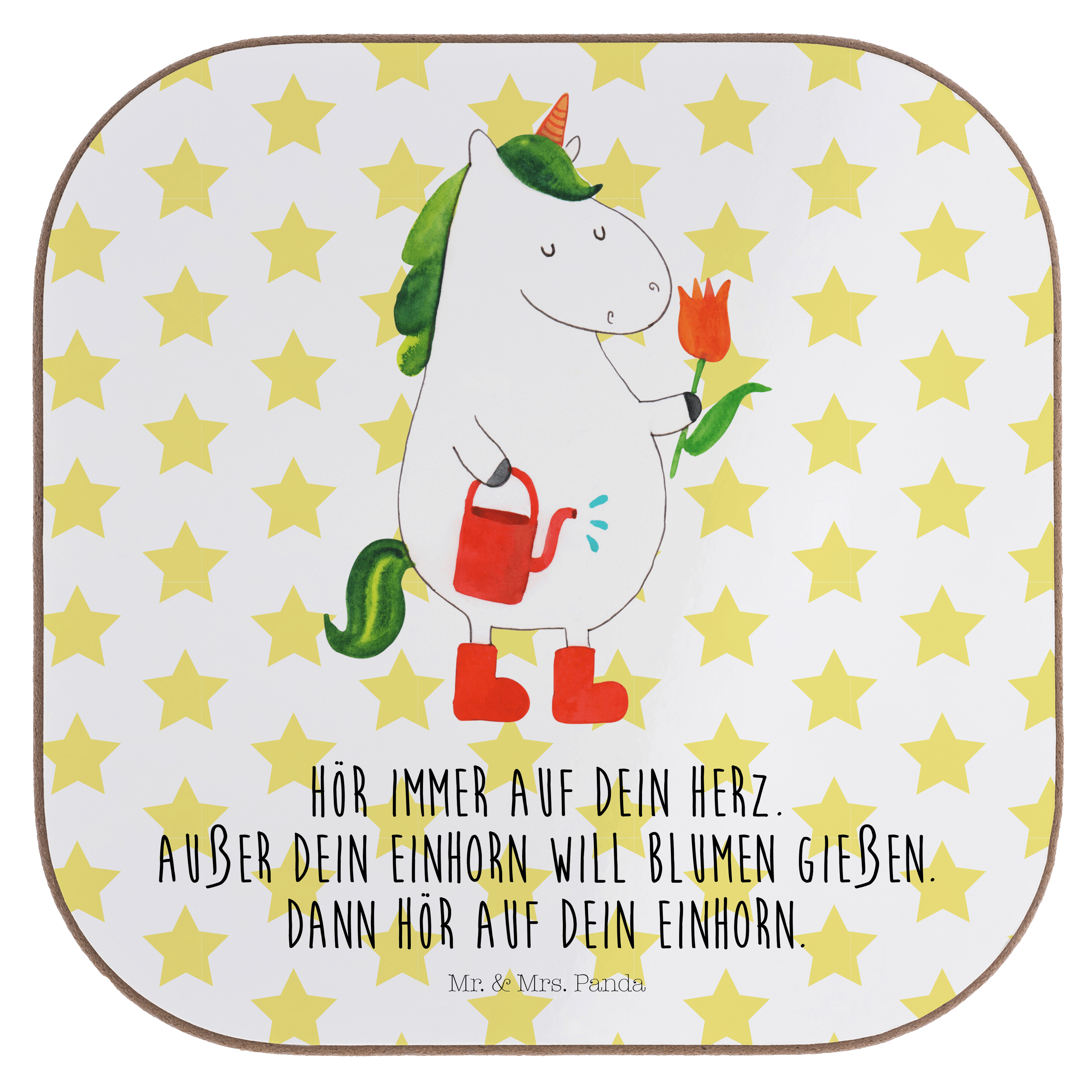 Quadratische Untersetzer Einhorn Gärtner Bierdeckel, Glasuntersetzer, Untersetzer Gläser, Getränkeuntersetzer, Einhorn, Einhörner, Einhorn Deko, Pegasus, Unicorn, Luftballon, Gießkanne, Giesskanne, Lebenslust, Freude, Blume, Freundin, Garten, Stiefel
