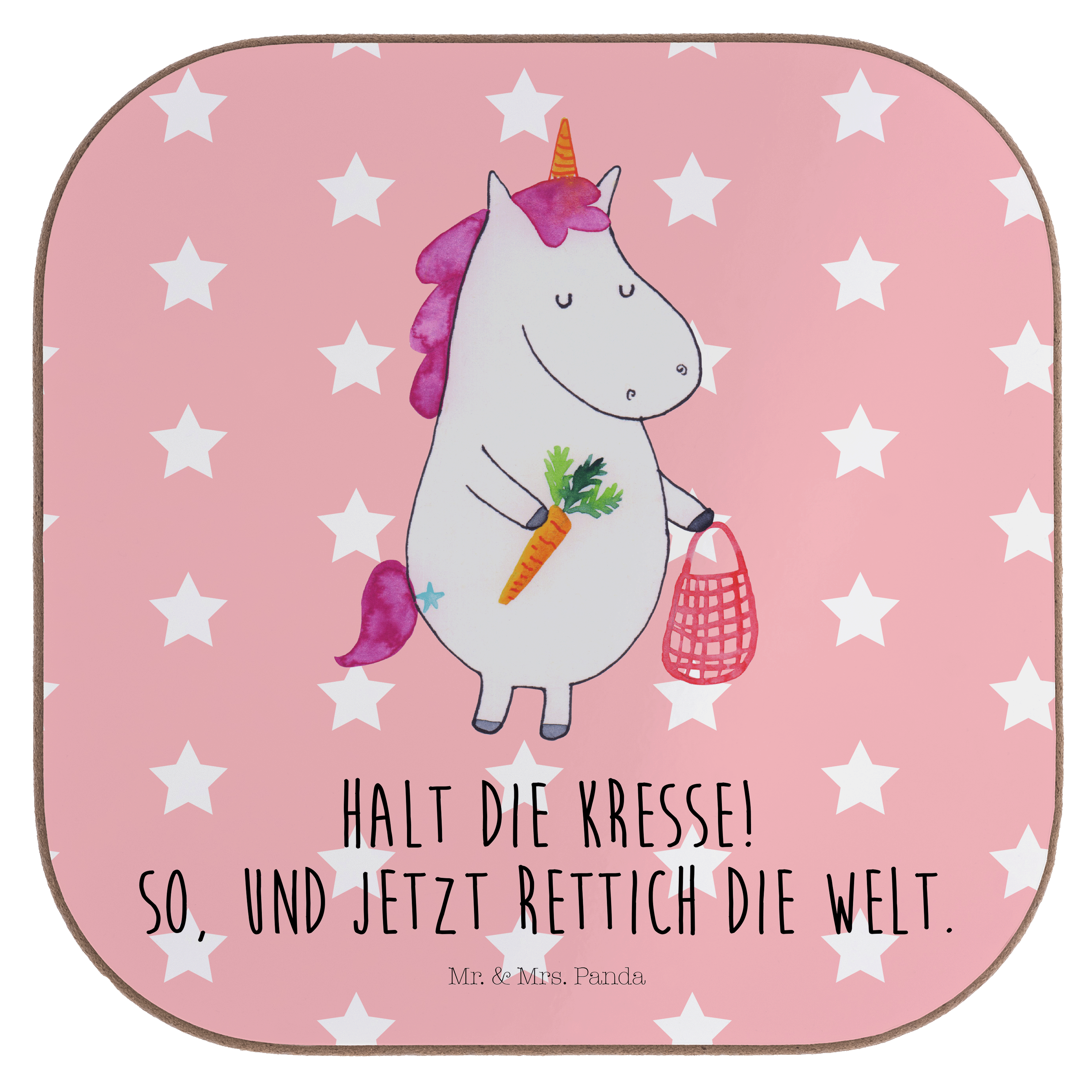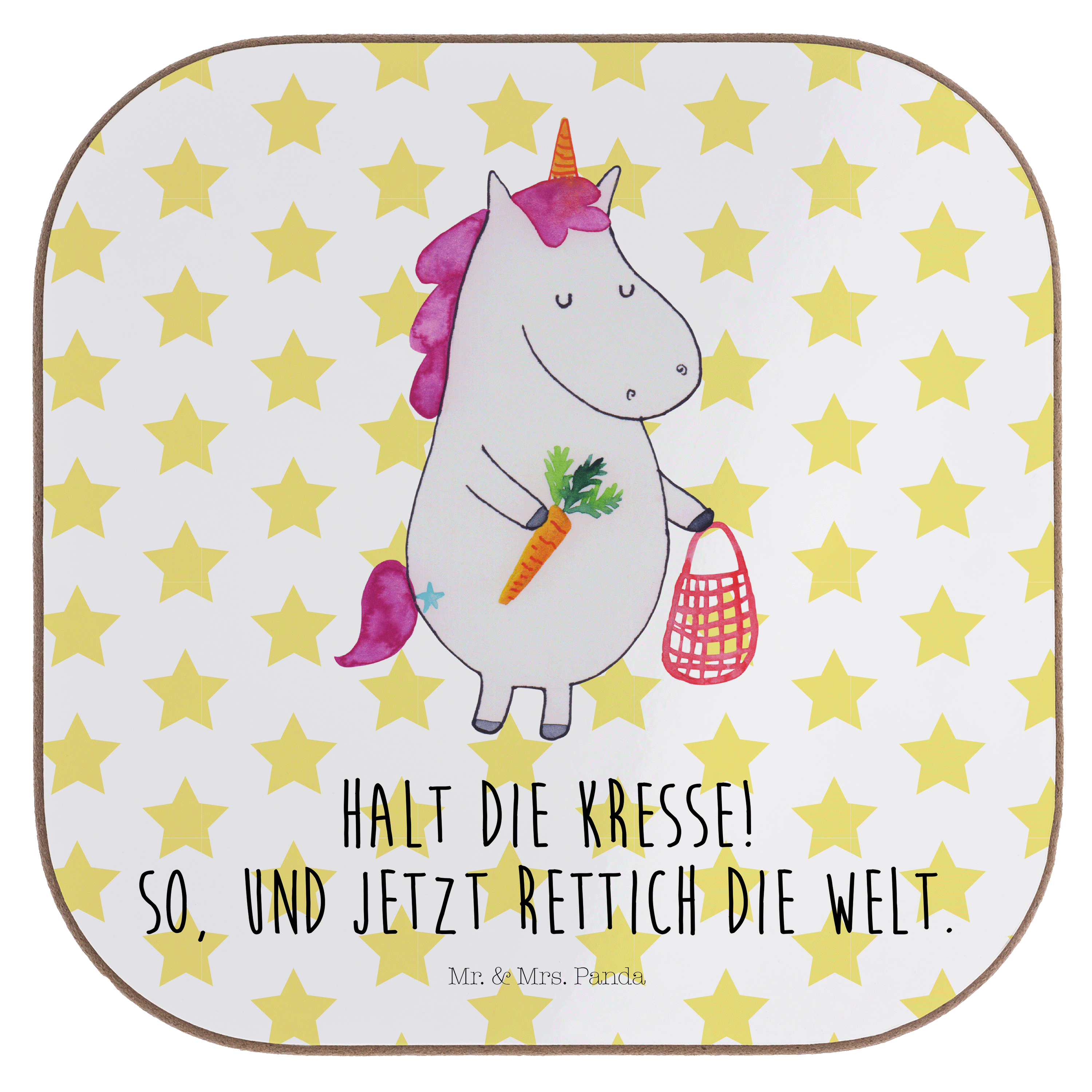 Quadratische Untersetzer Einhorn Gemüse - mit Spruch - Weiß