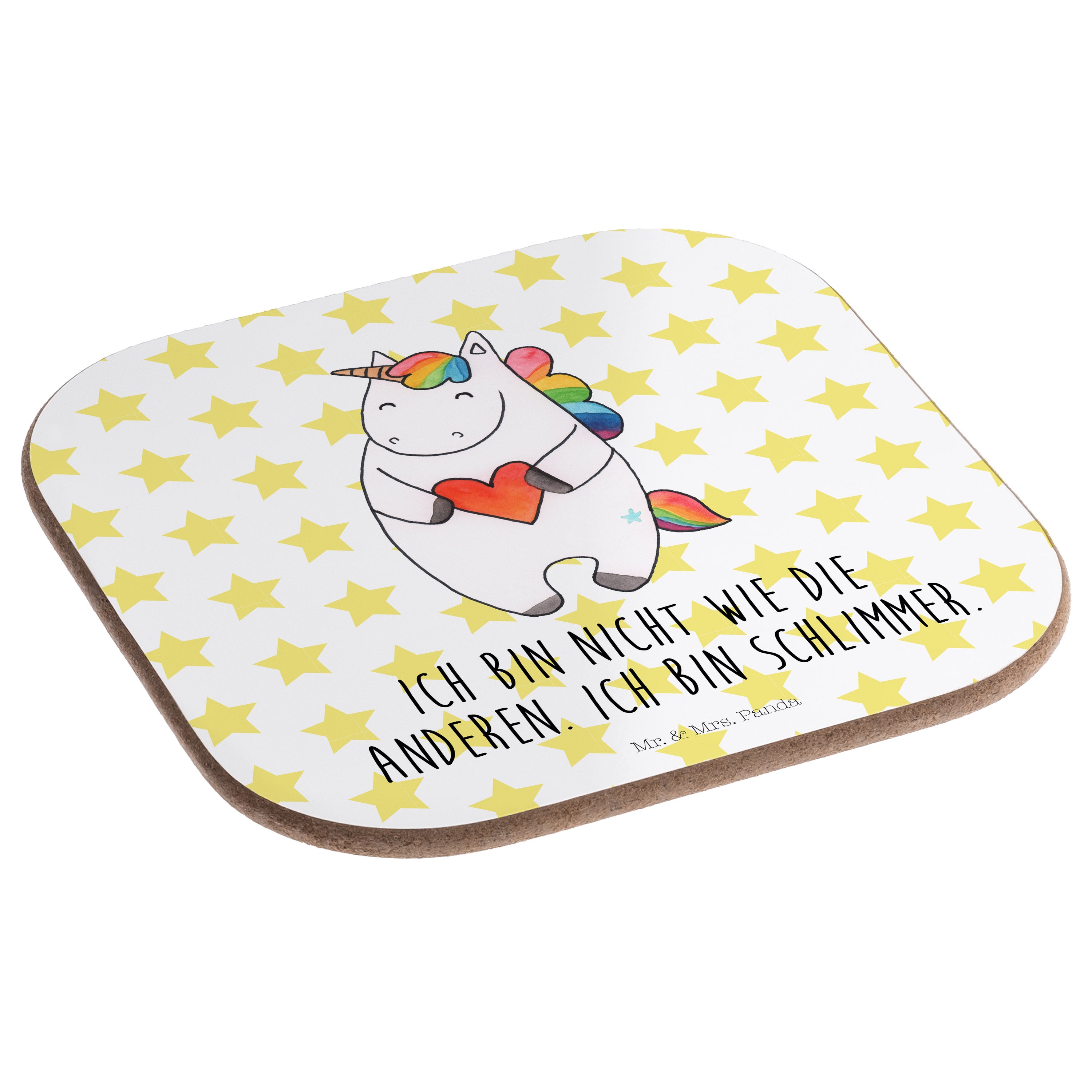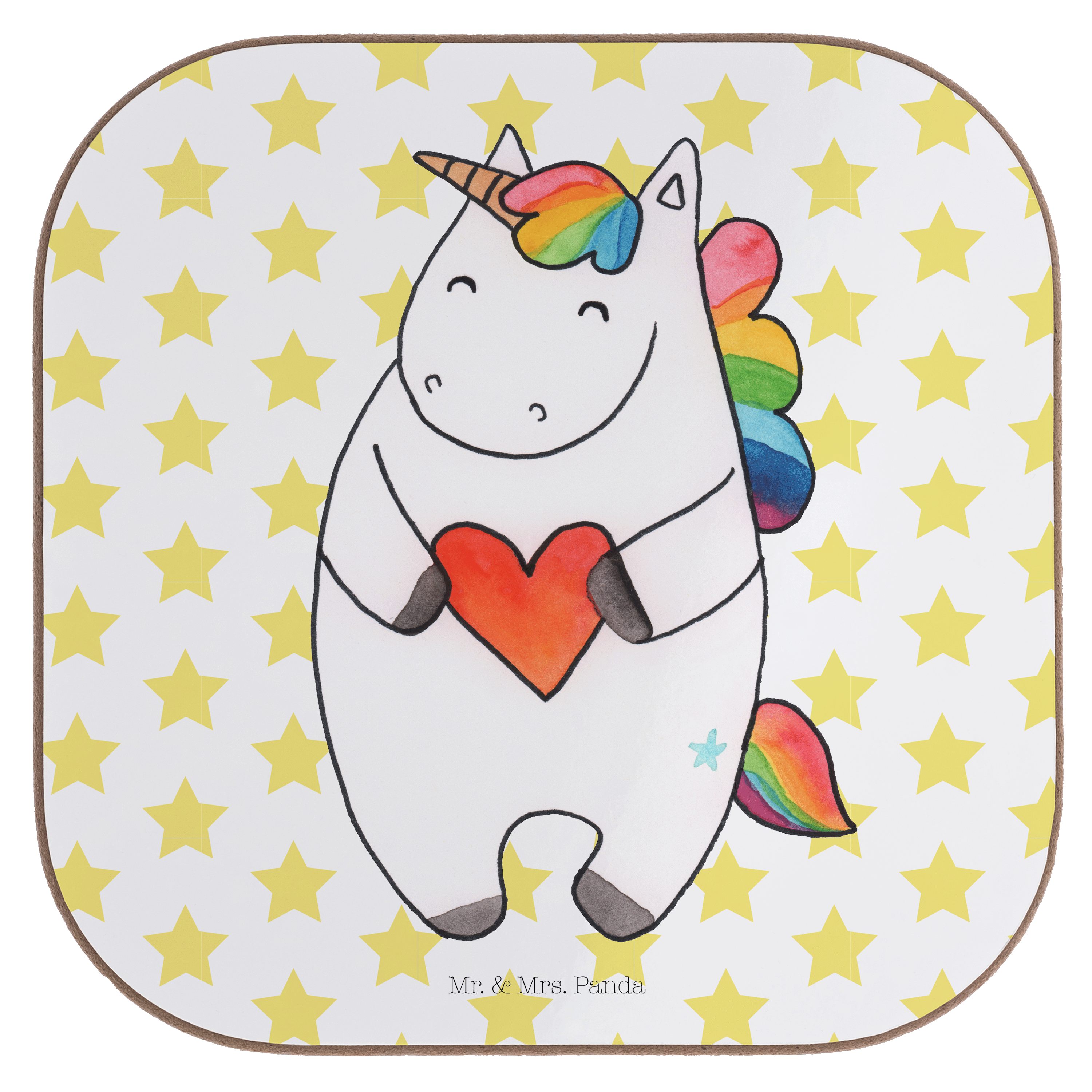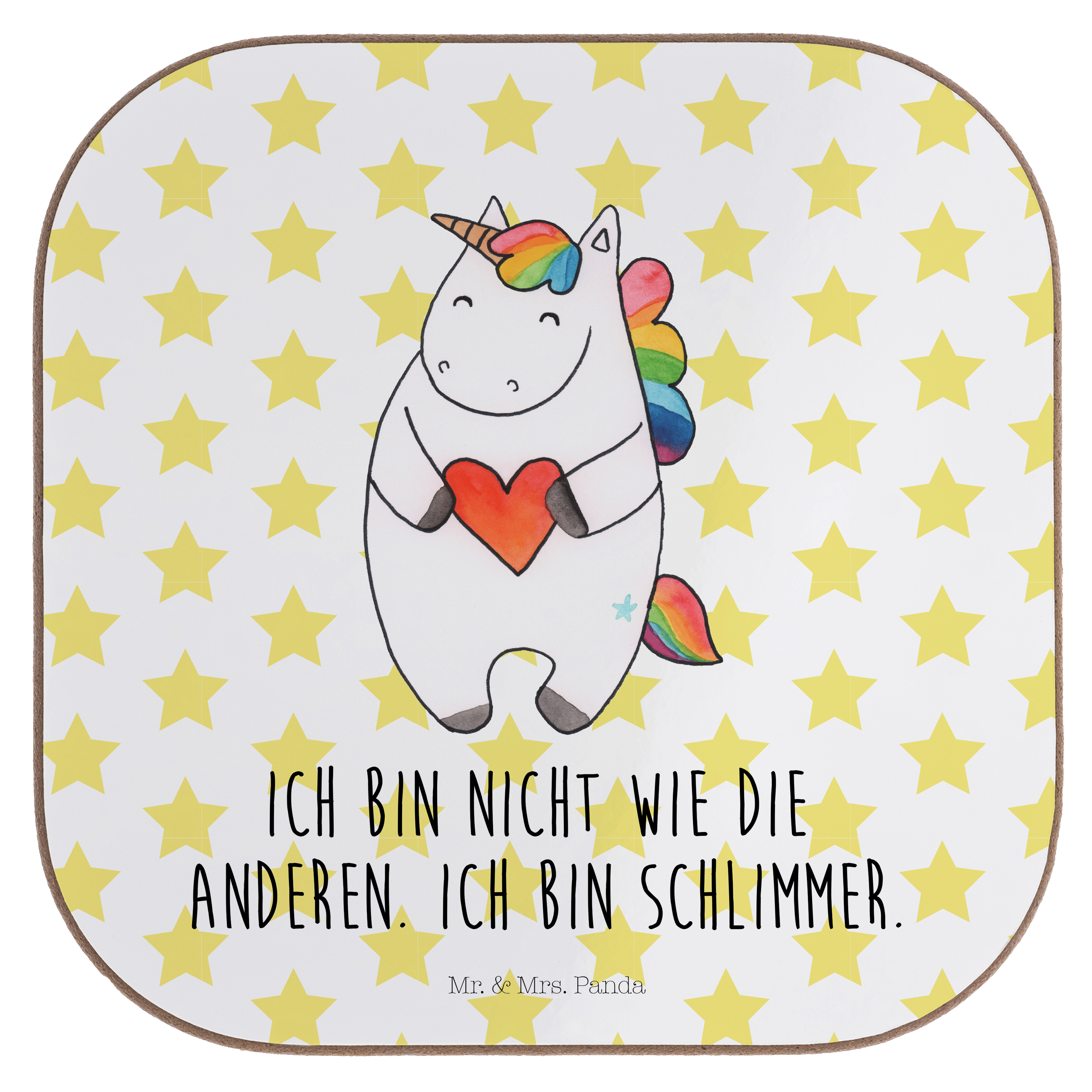 Quadratische Untersetzer Einhorn Herz - mit Spruch - Weiß