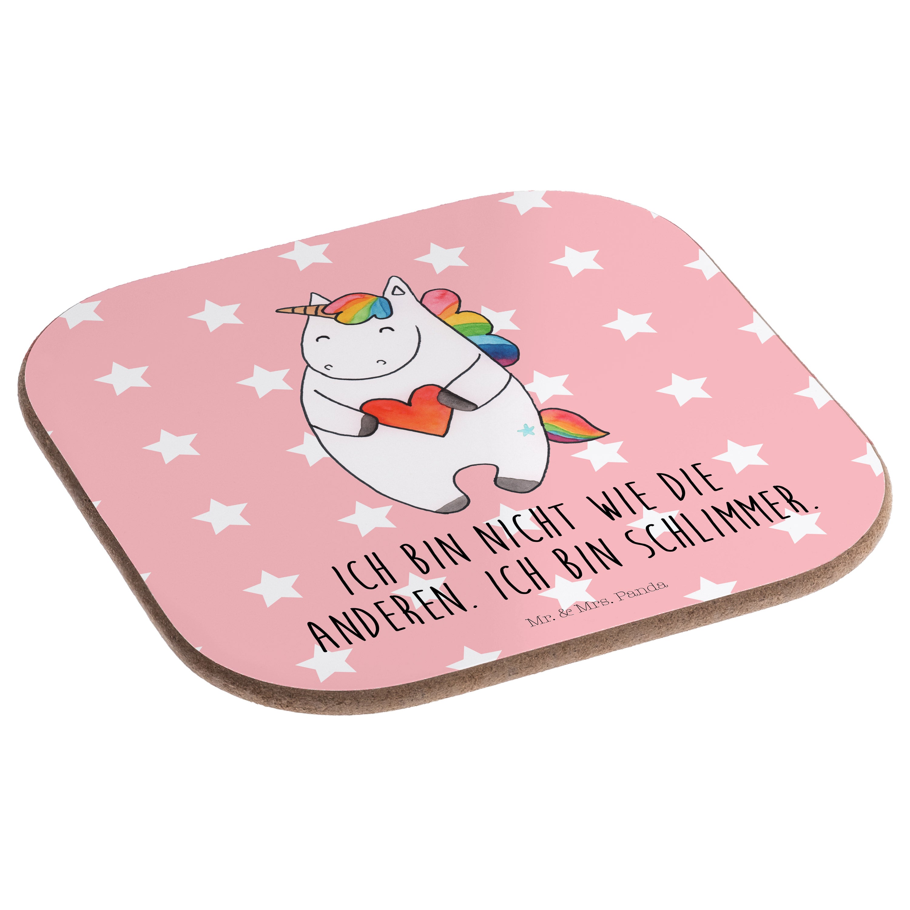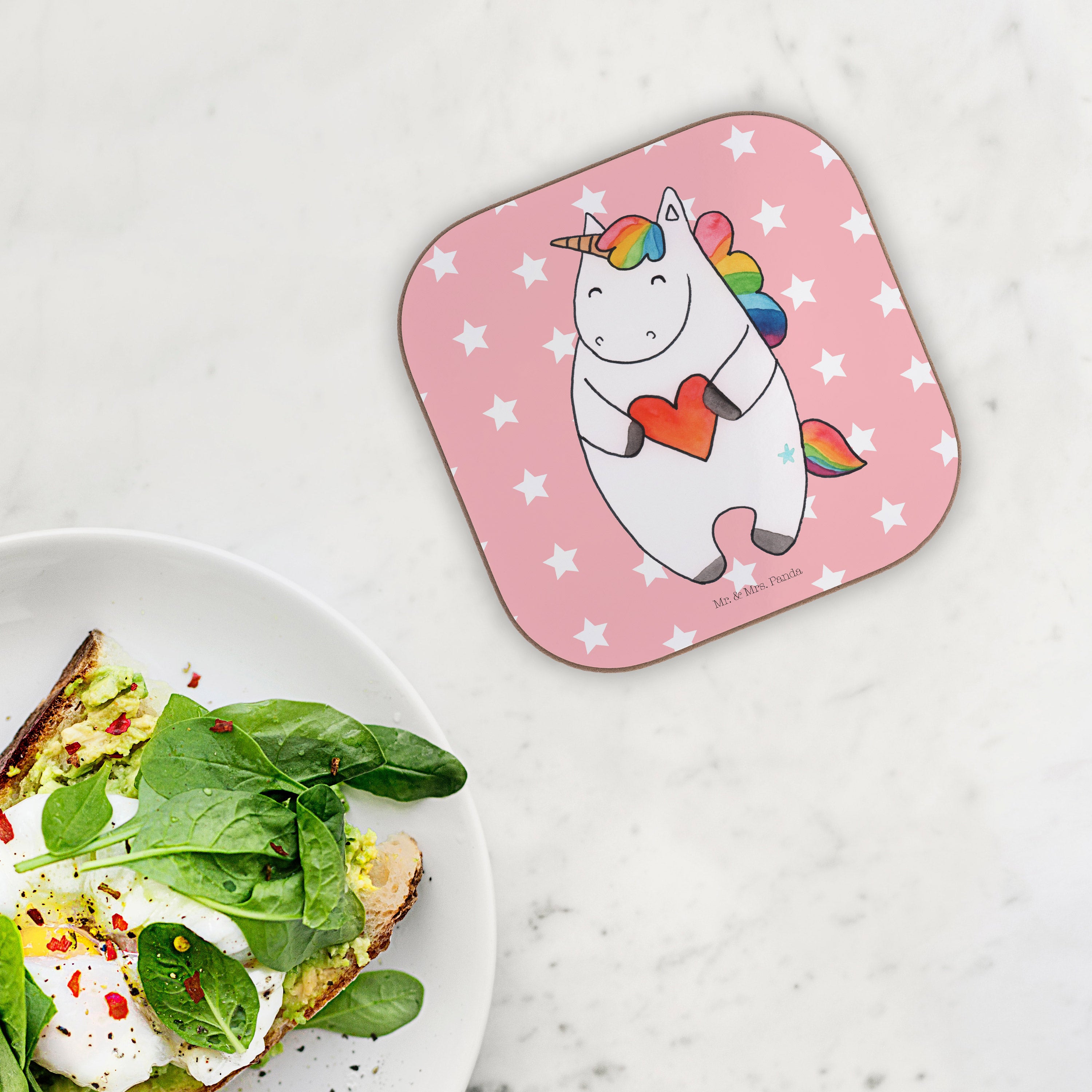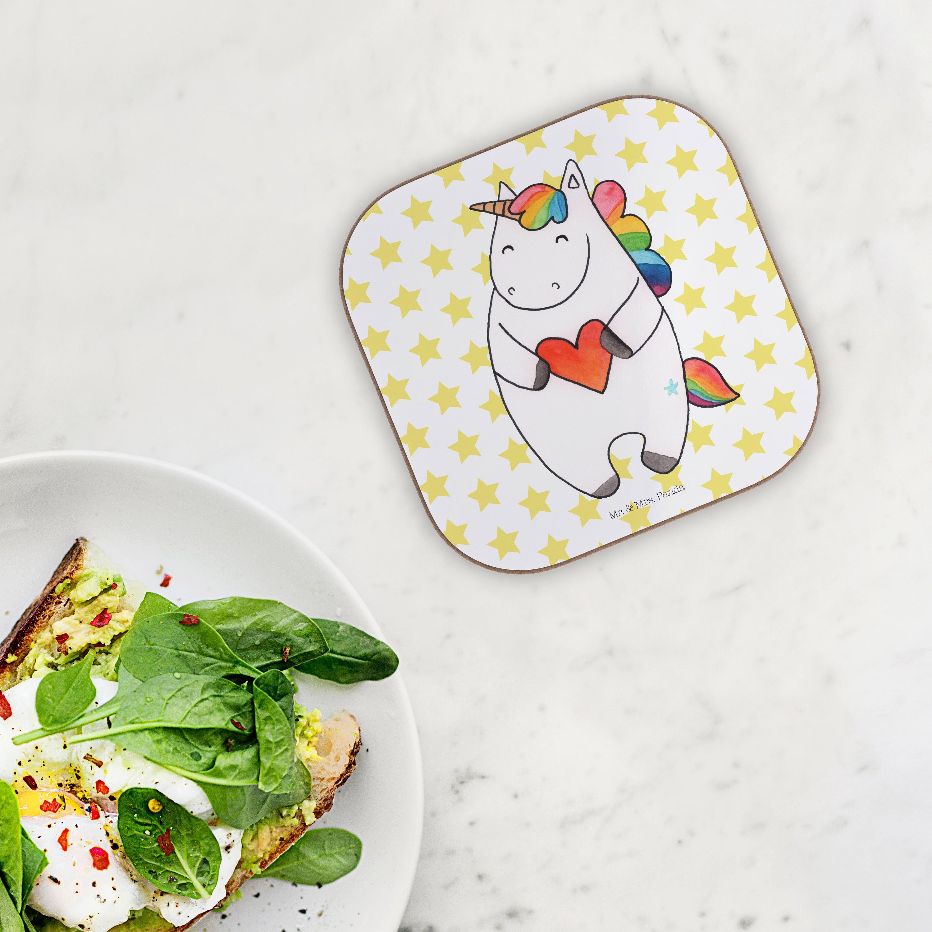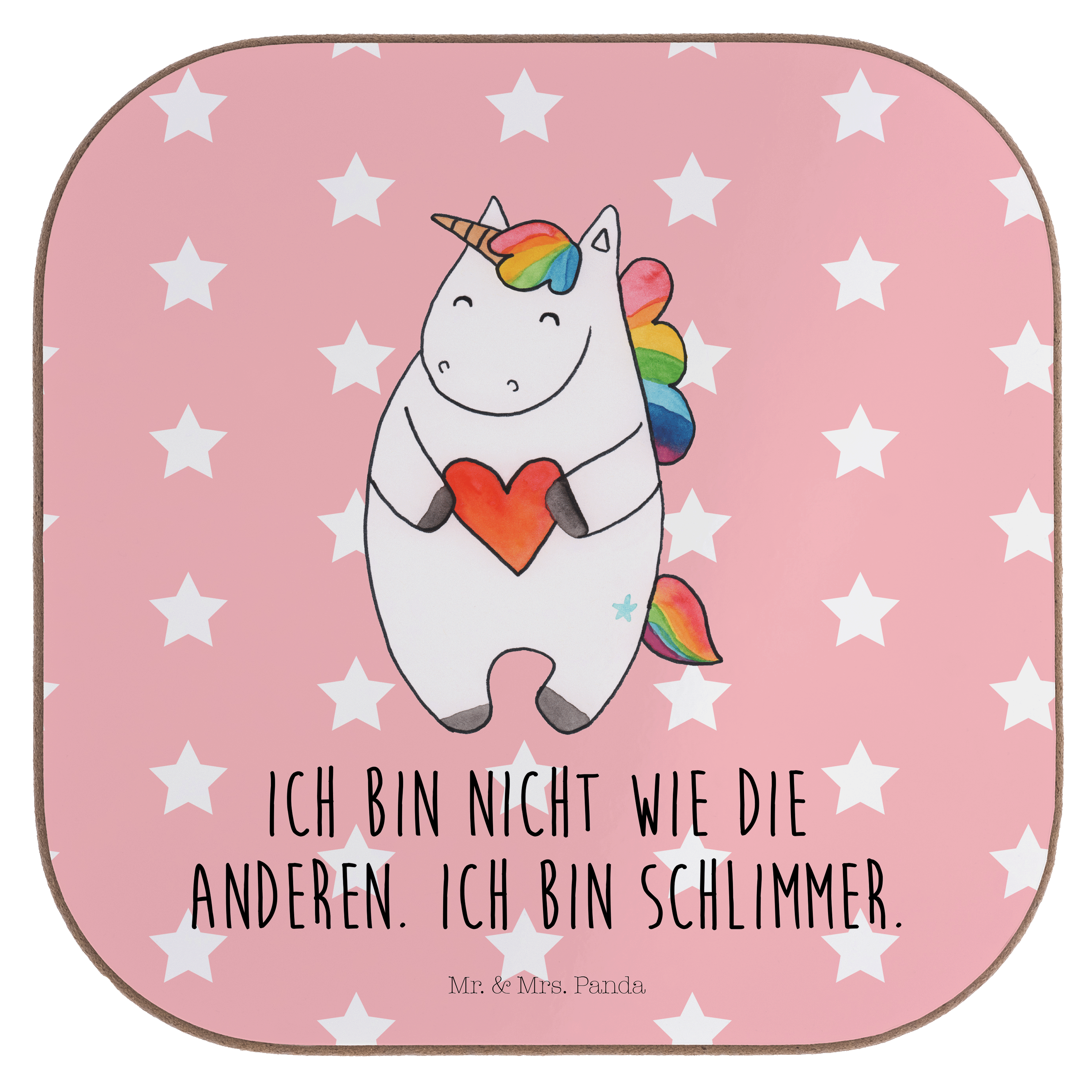 Quadratische Untersetzer Einhorn Herz - mit Spruch - Weiß