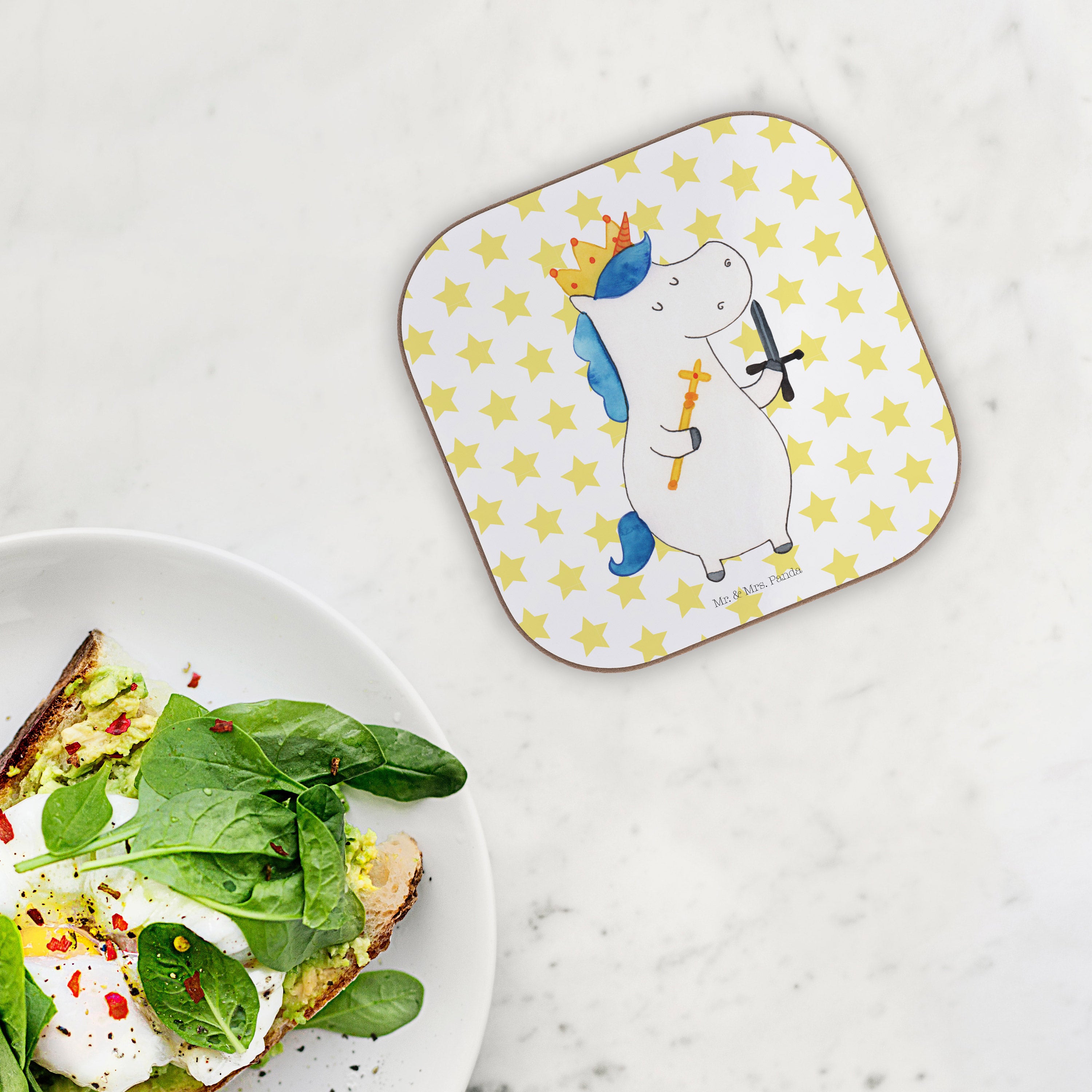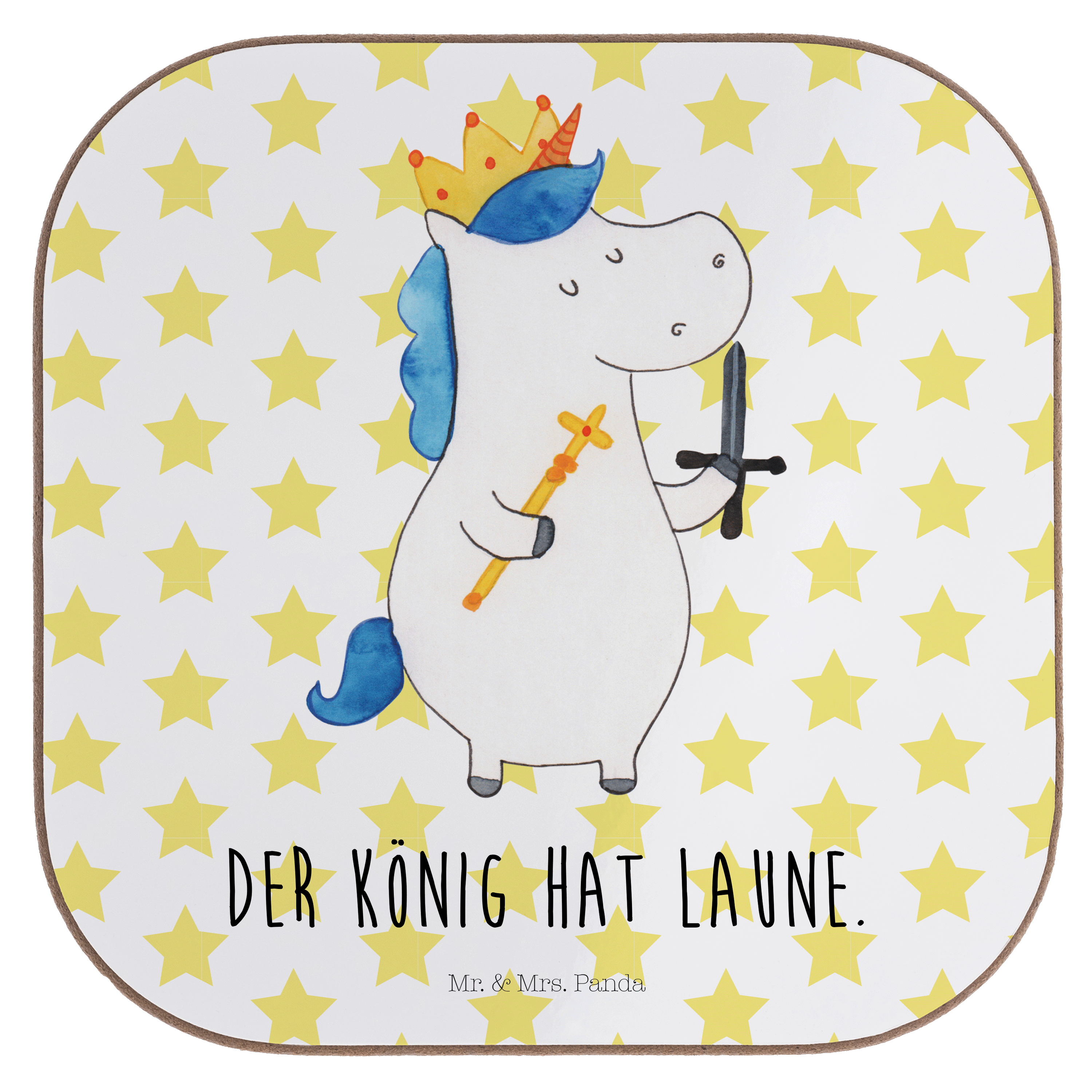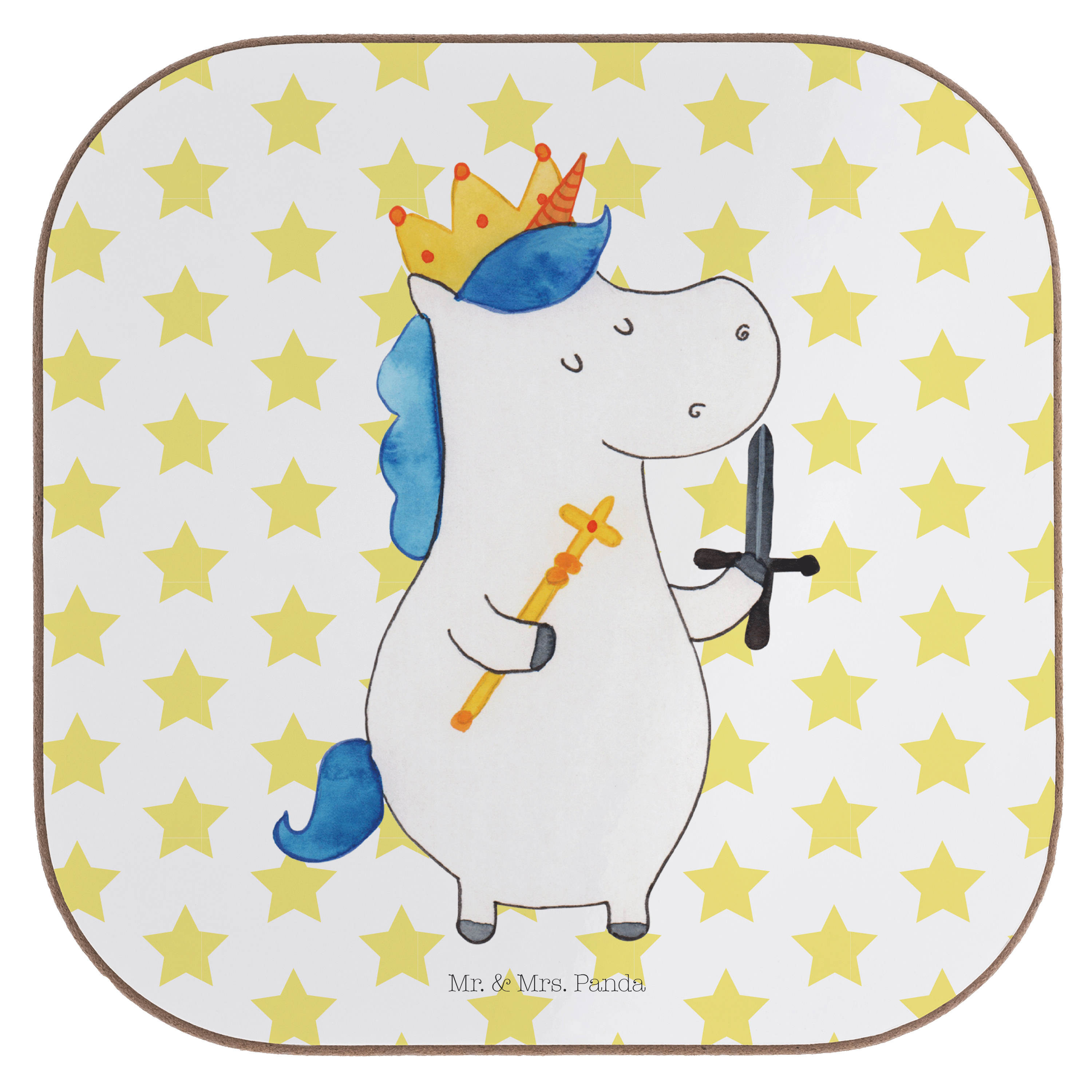 Quadratische Untersetzer Einhorn König mit Schwert - mit Spruch - Weiß