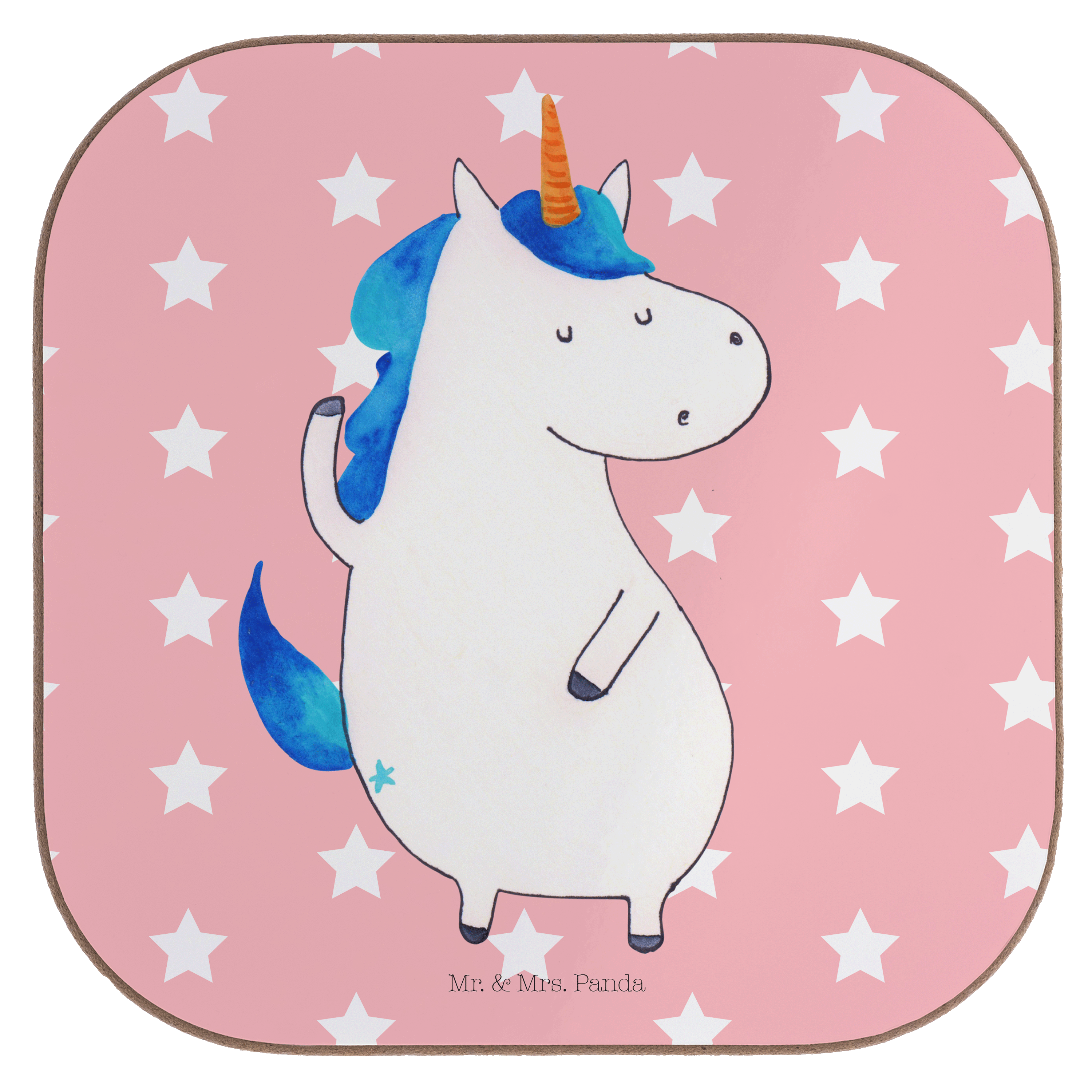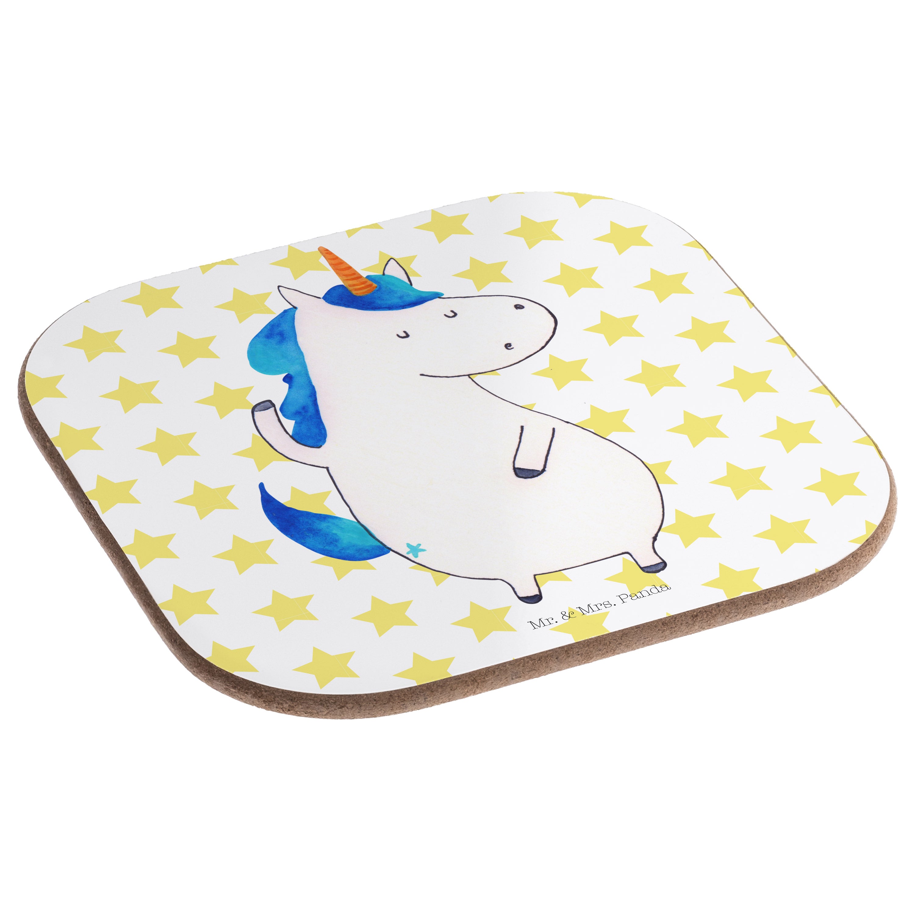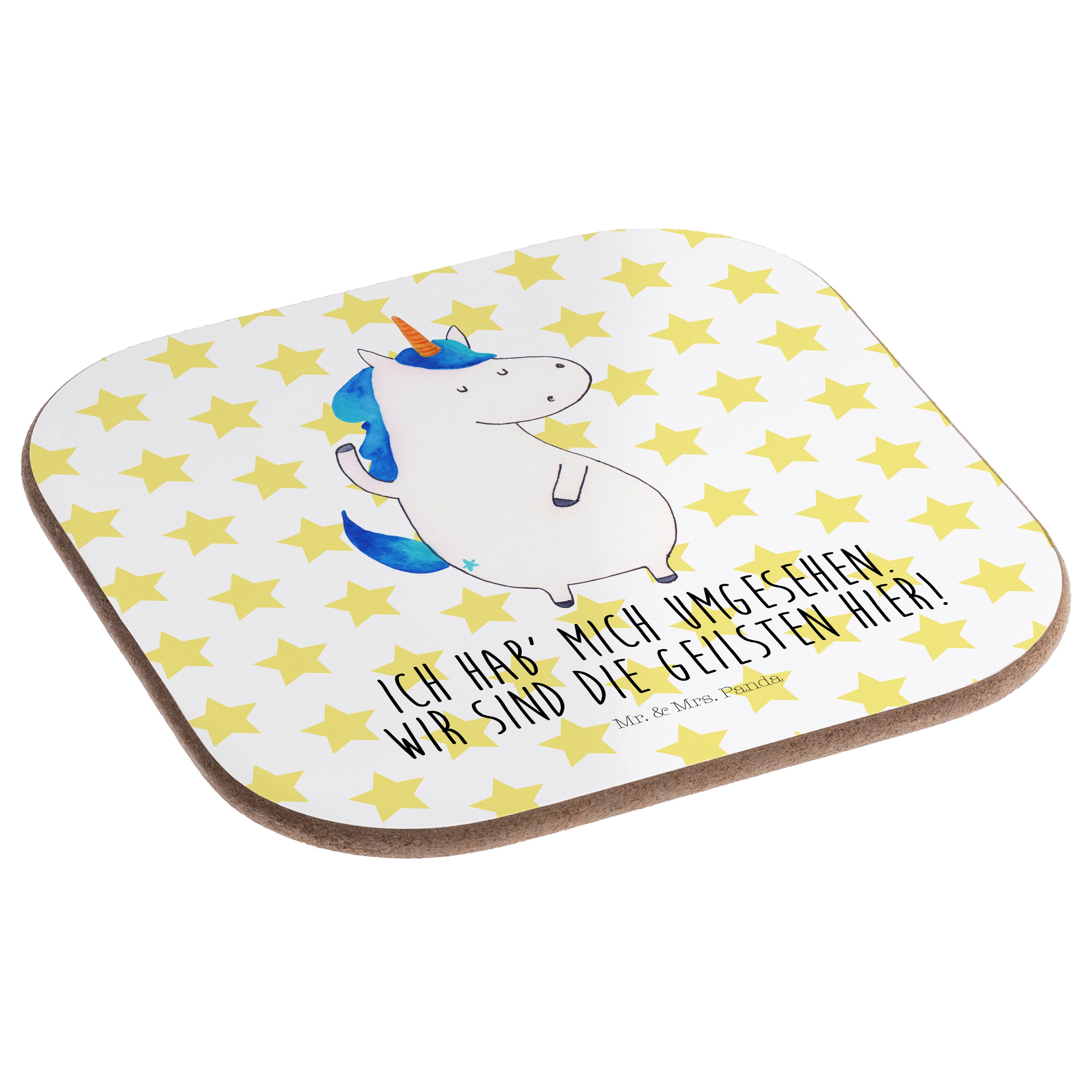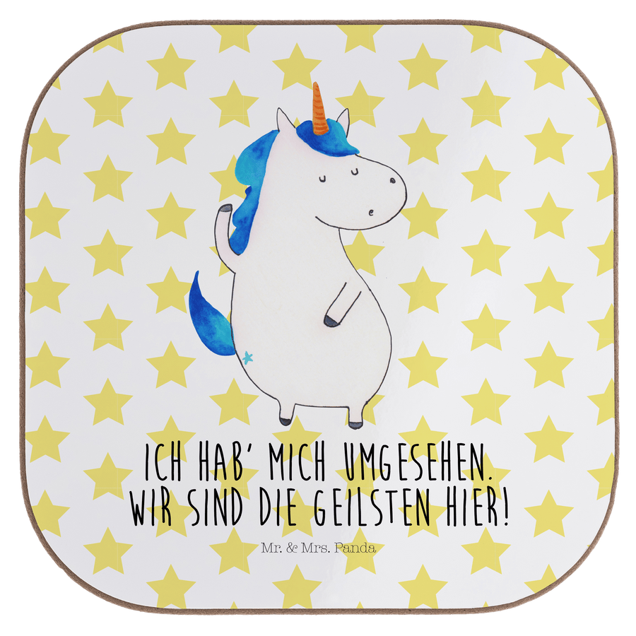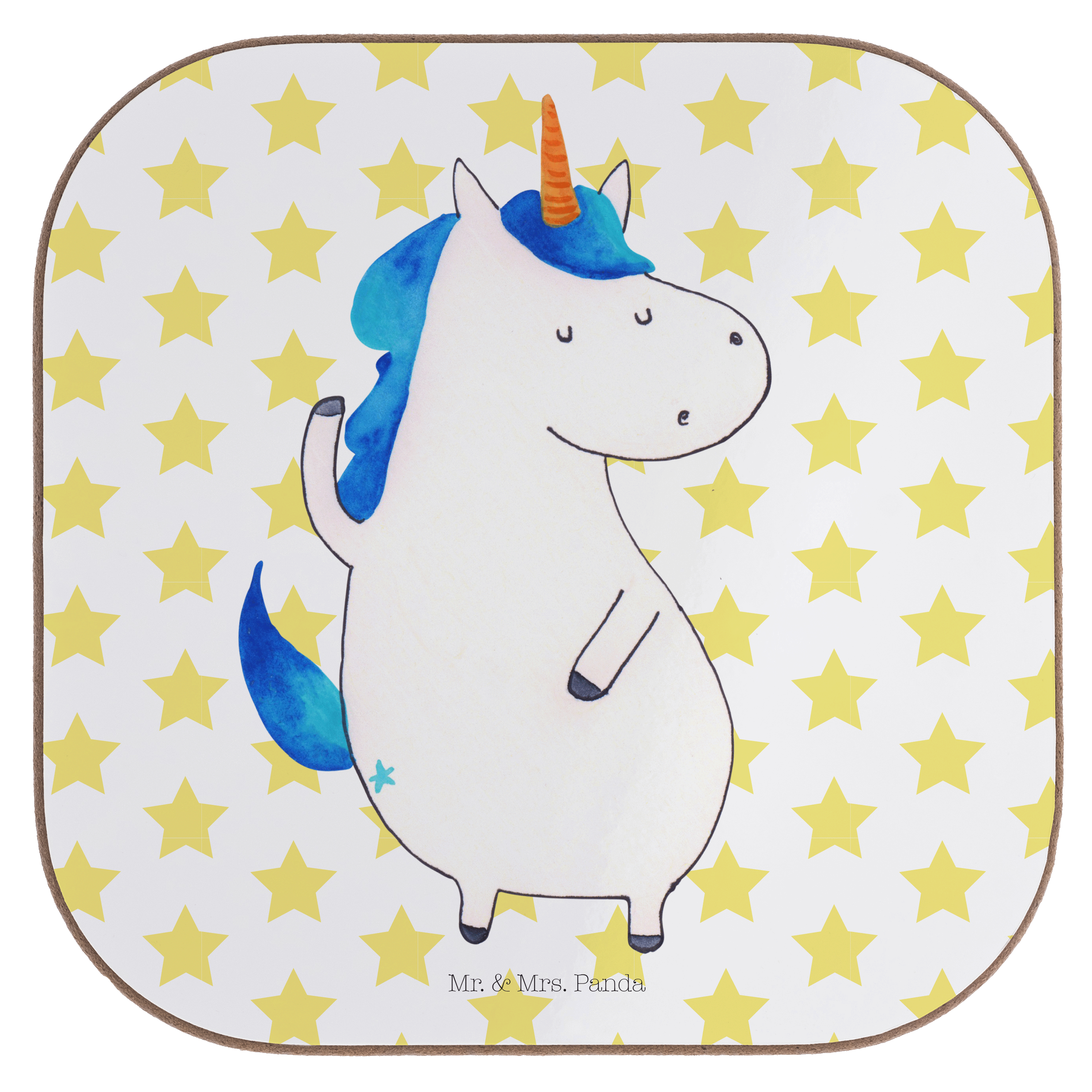 Quadratische Untersetzer Einhorn Mann - mit Spruch - Weiß