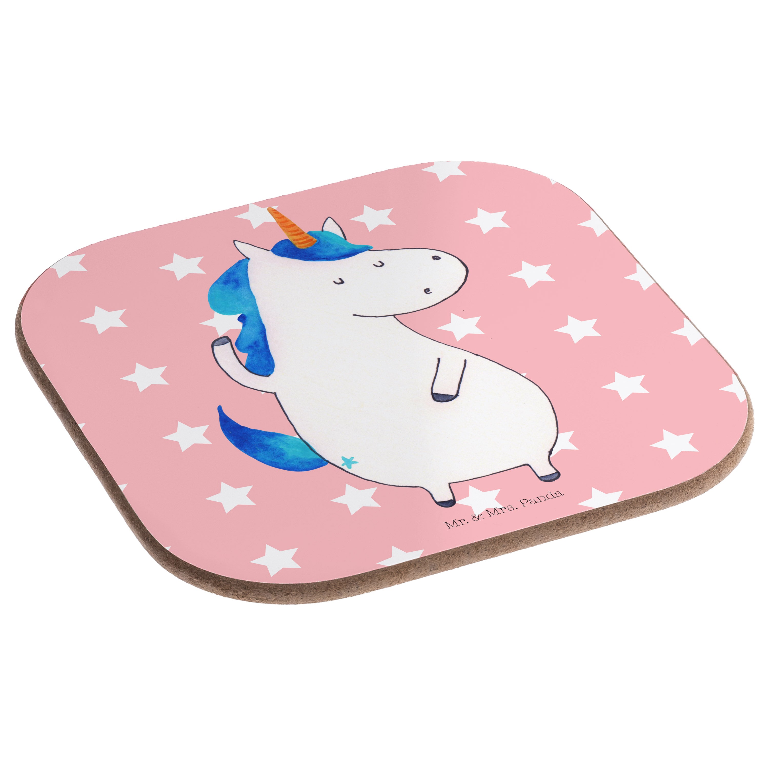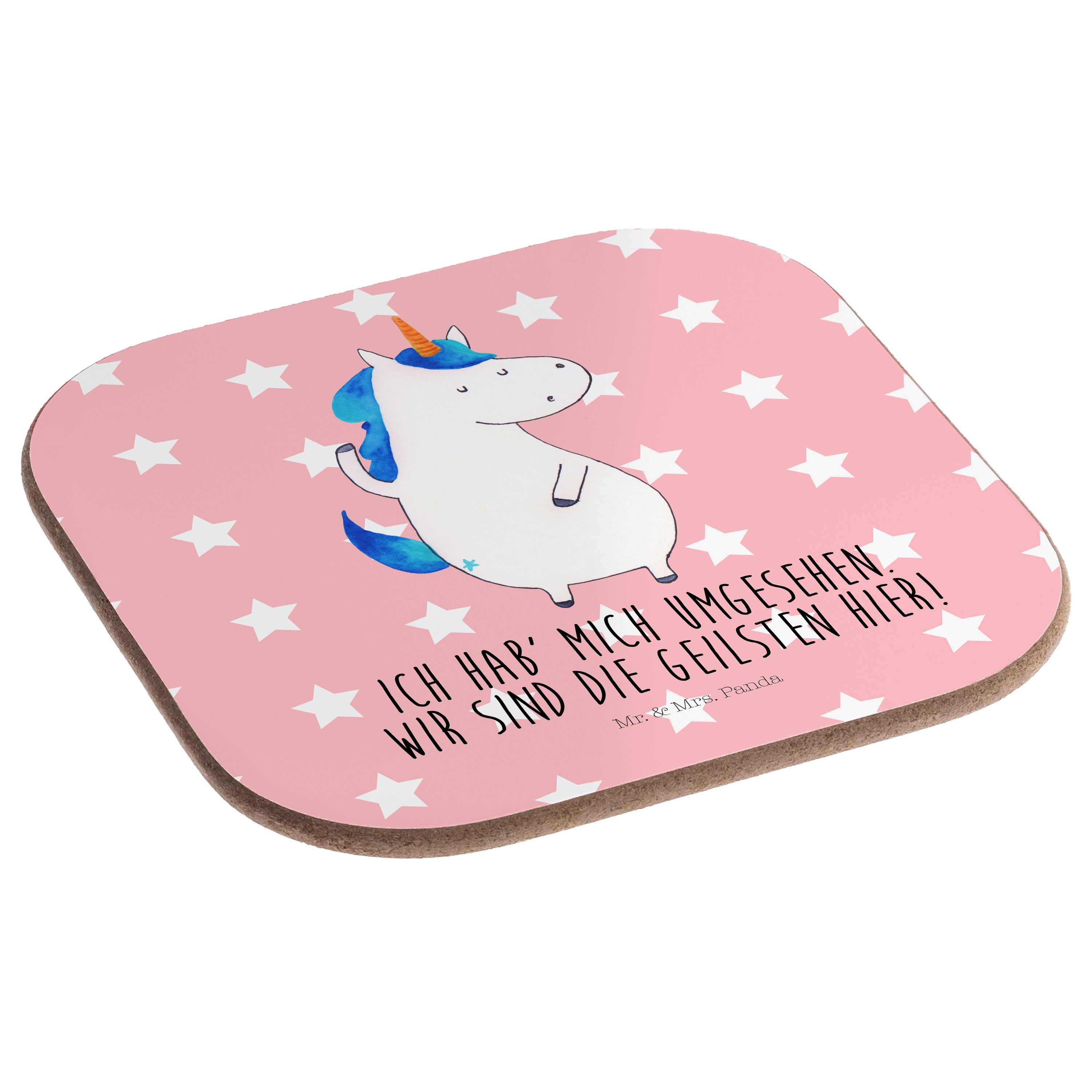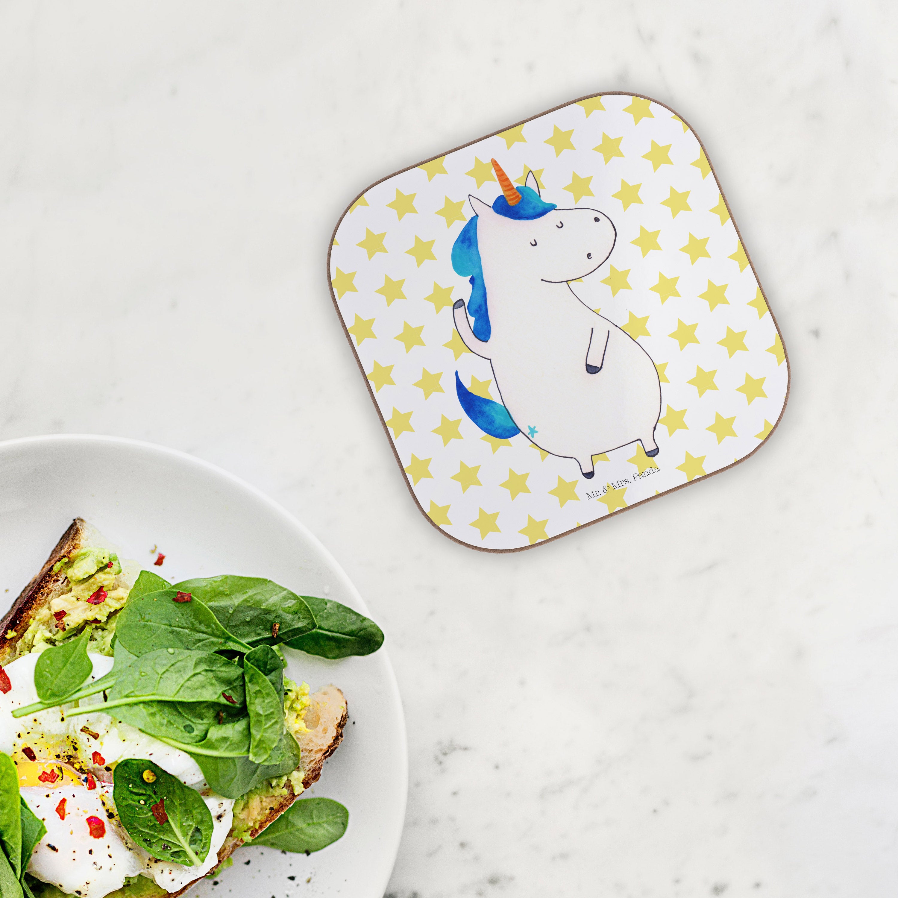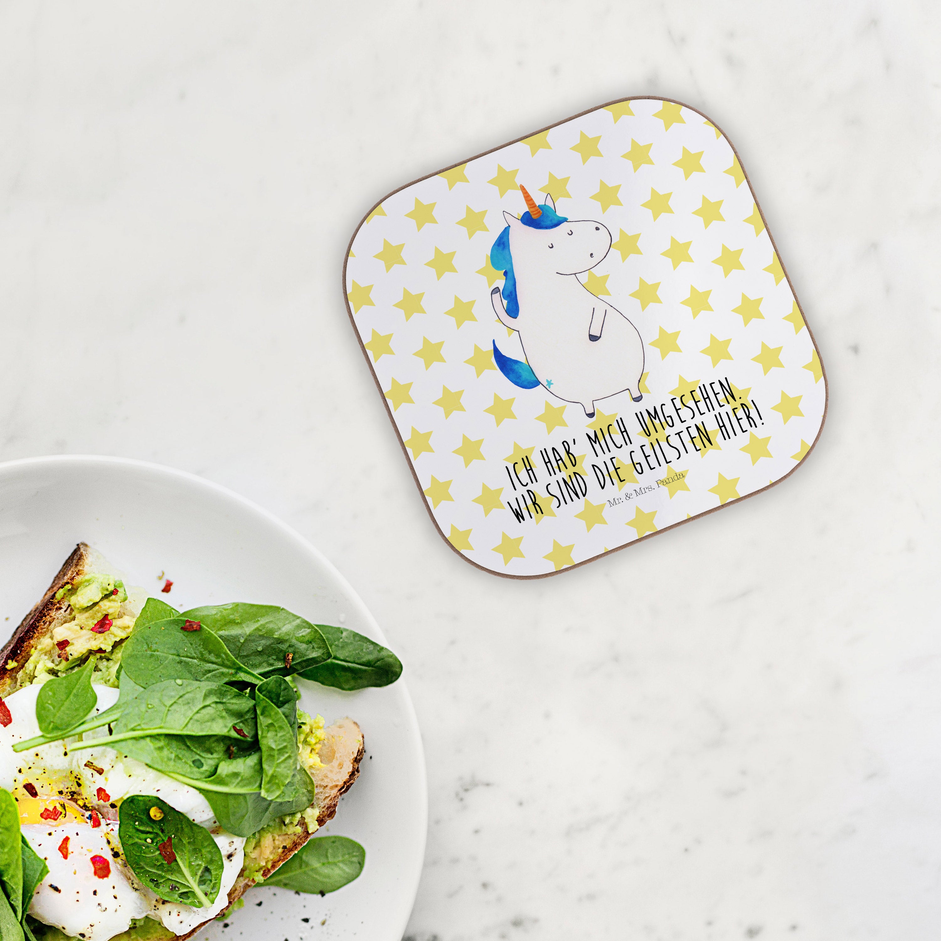 Quadratische Untersetzer Einhorn Mann - mit Spruch - Weiß